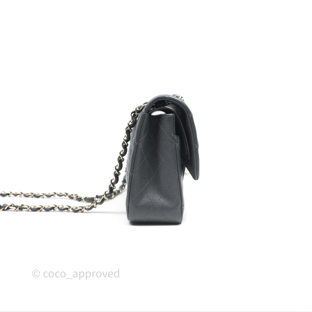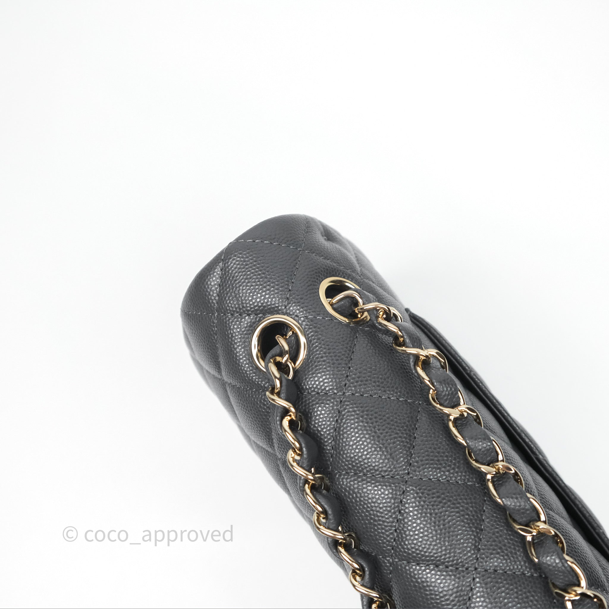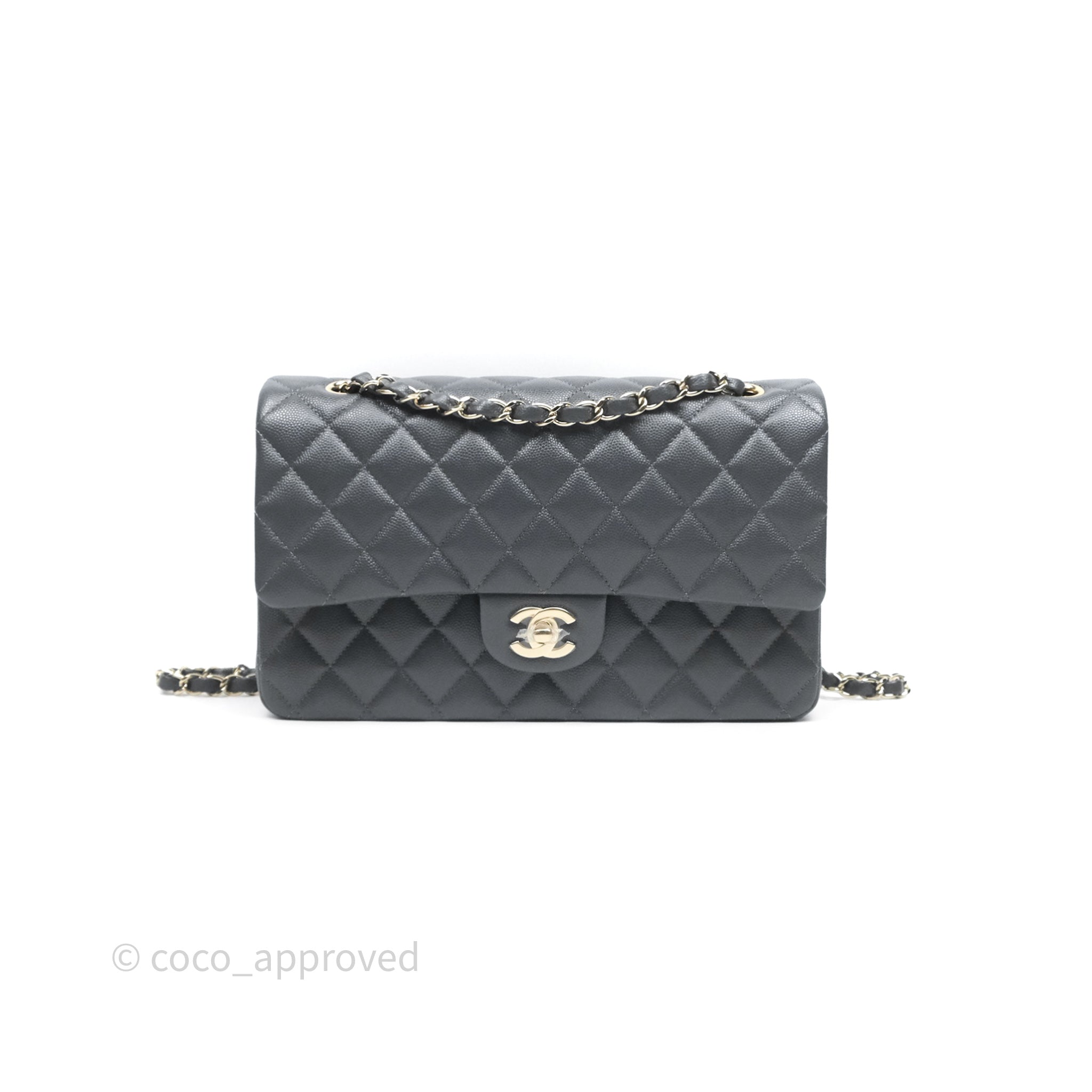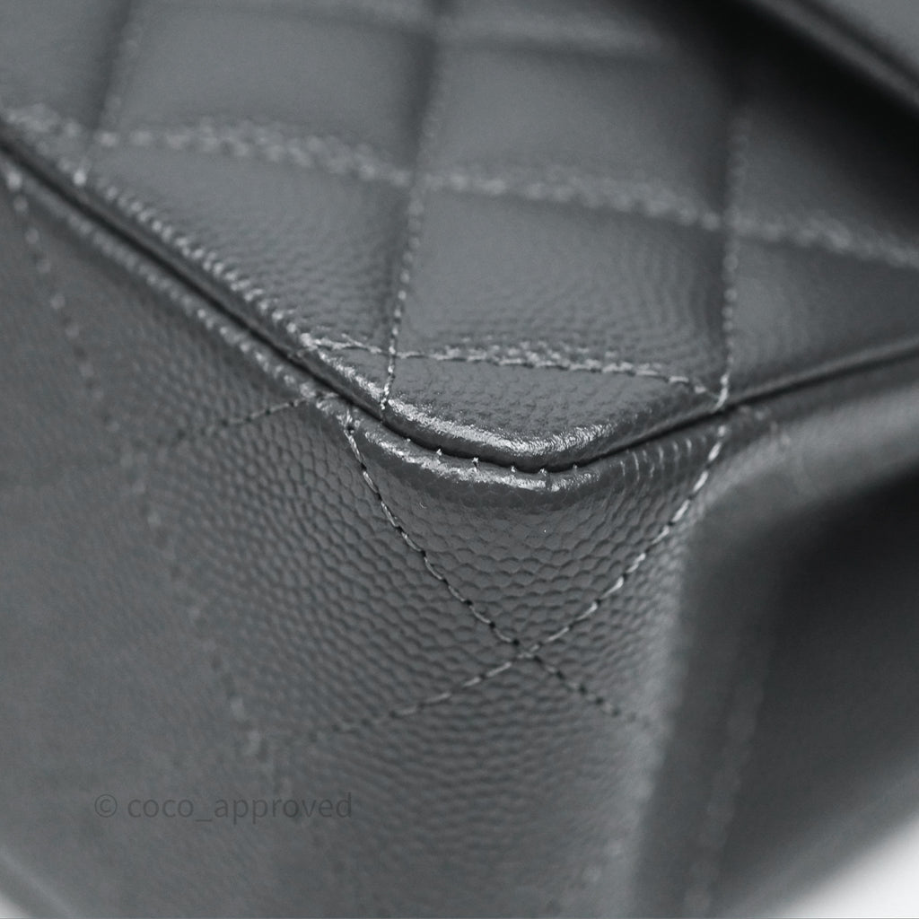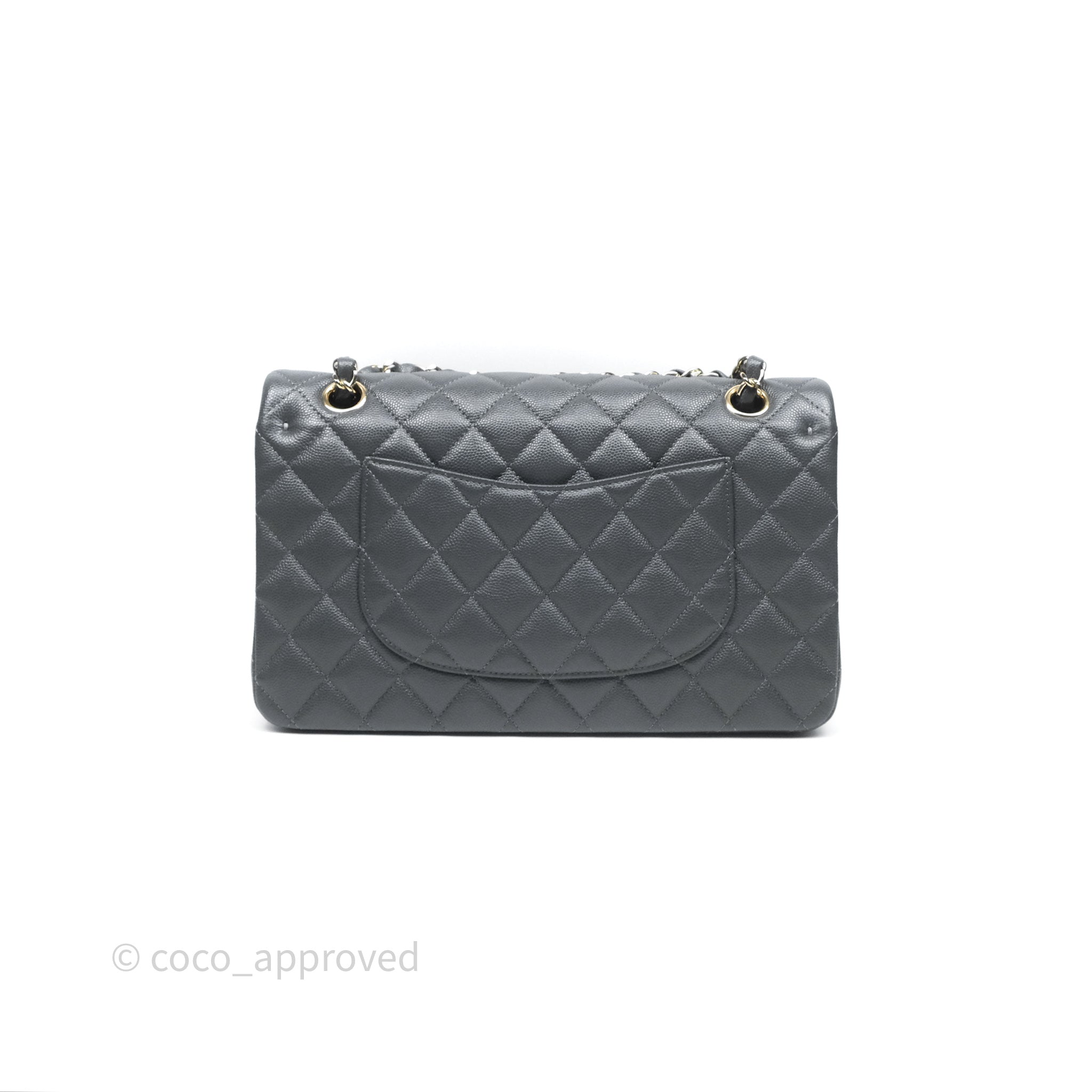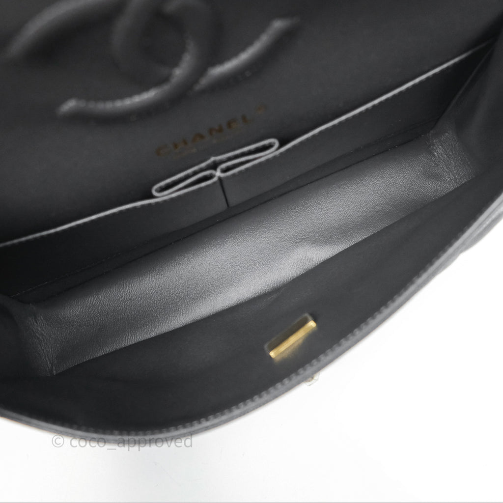 Chanel Classic M/L Medium Flap Quilted Dark Grey Caviar Gold Hardware