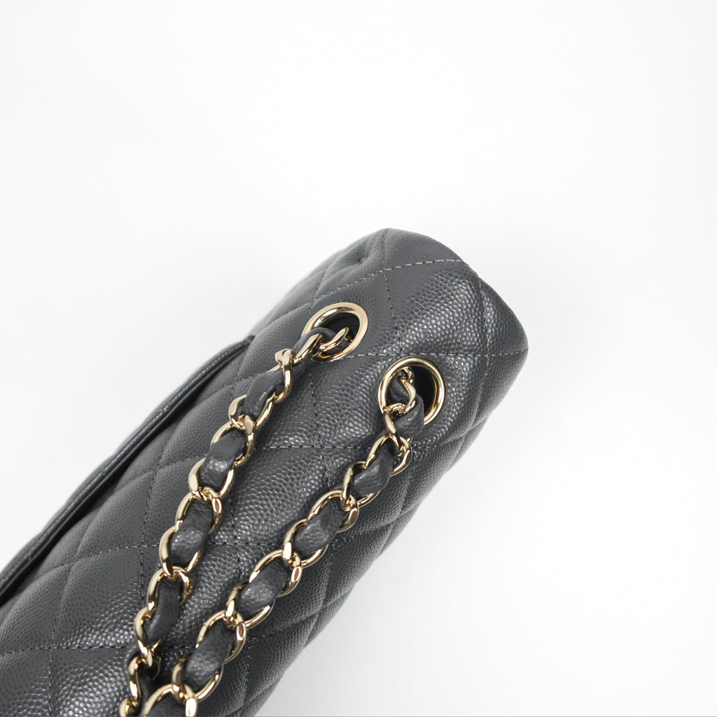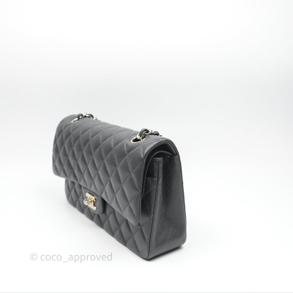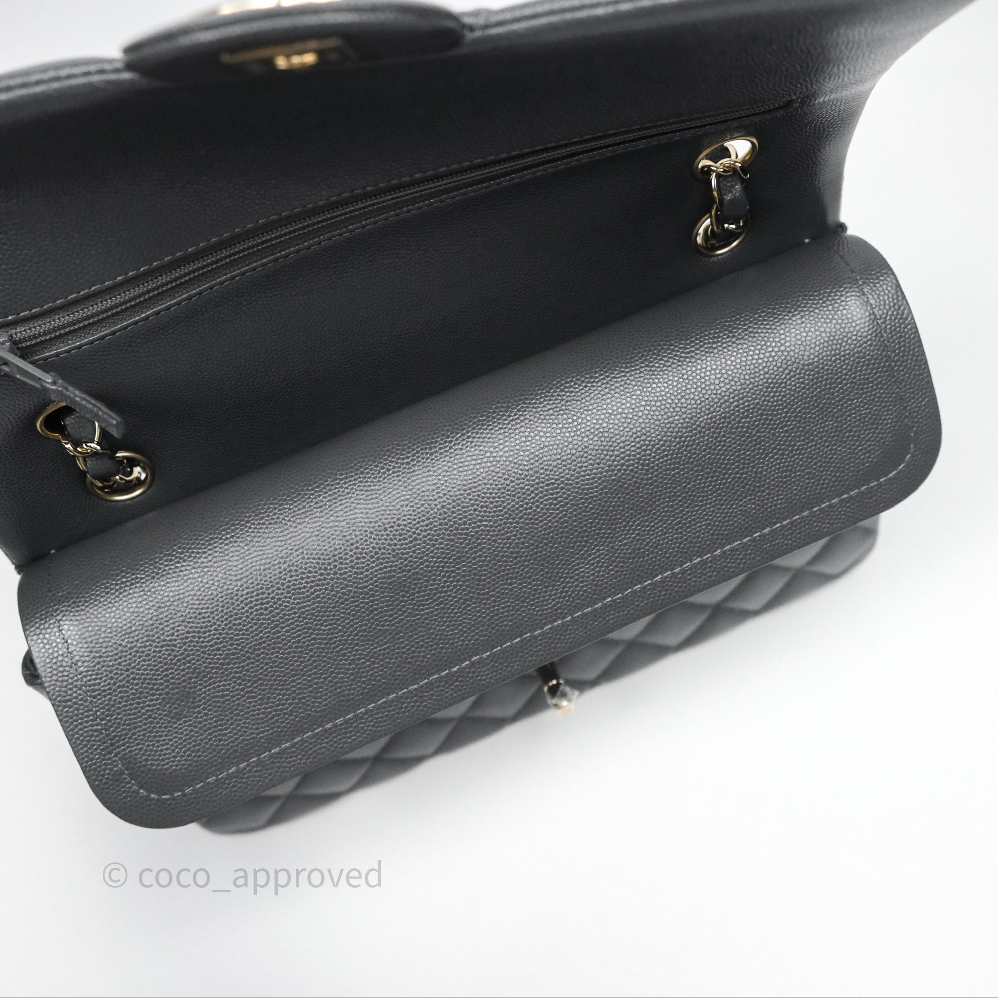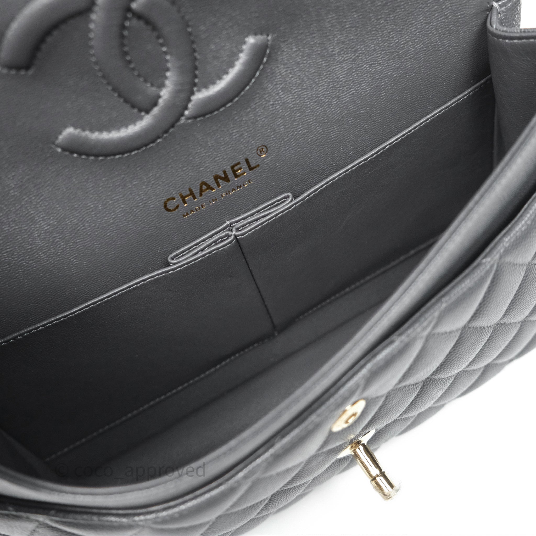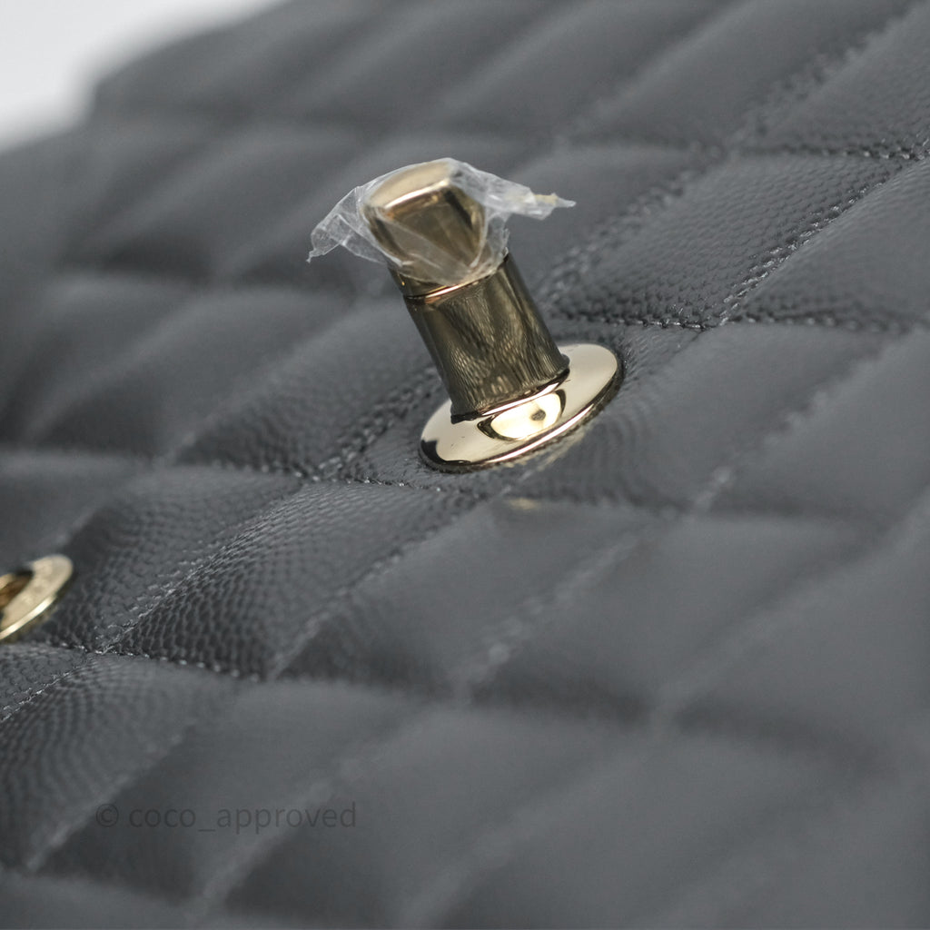 Chanel Classic M/L Medium Flap Quilted Dark Grey Caviar Gold Hardware