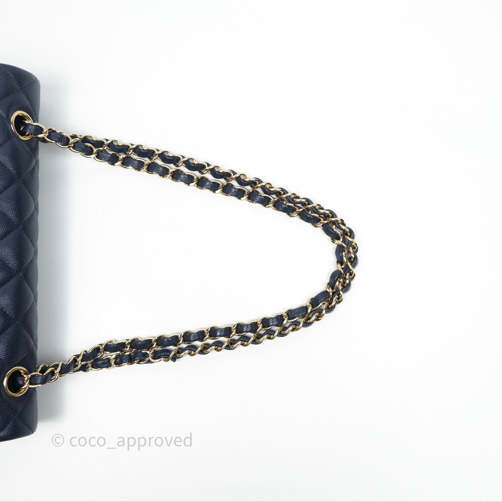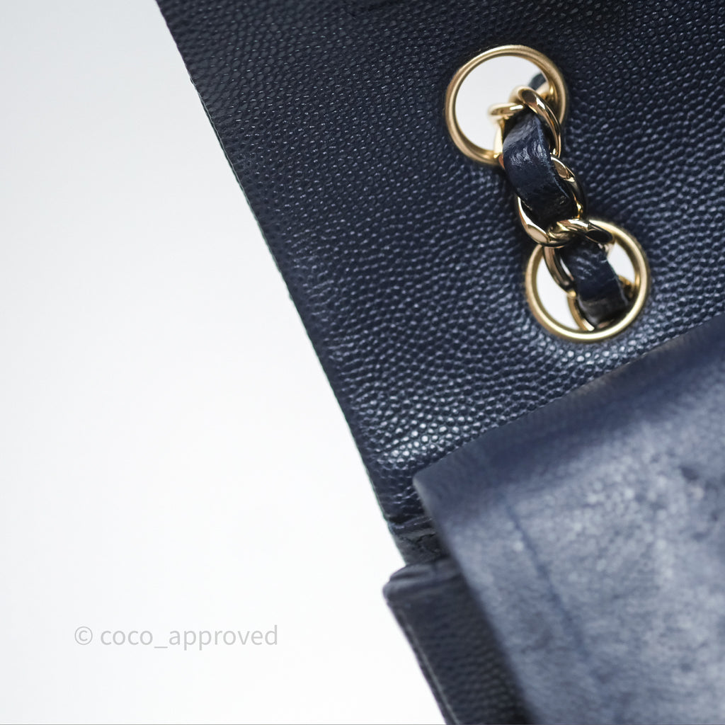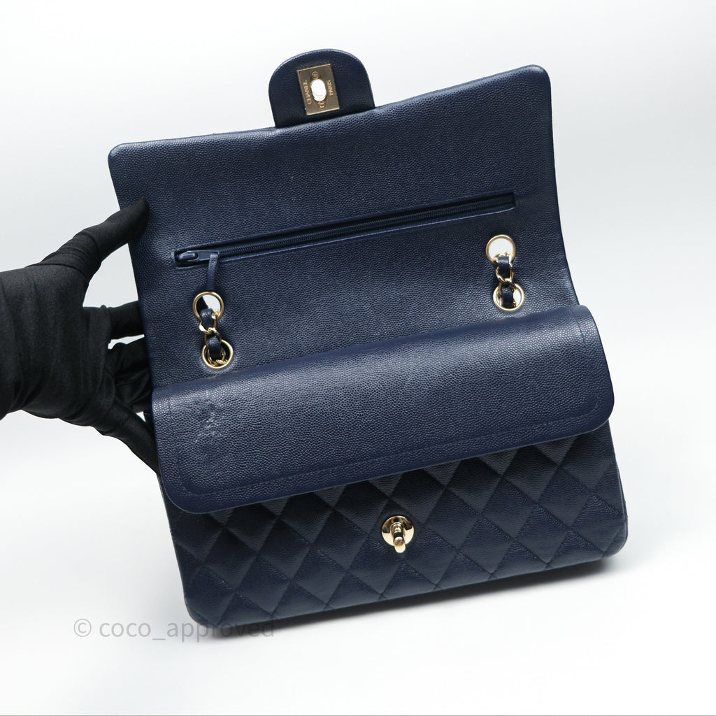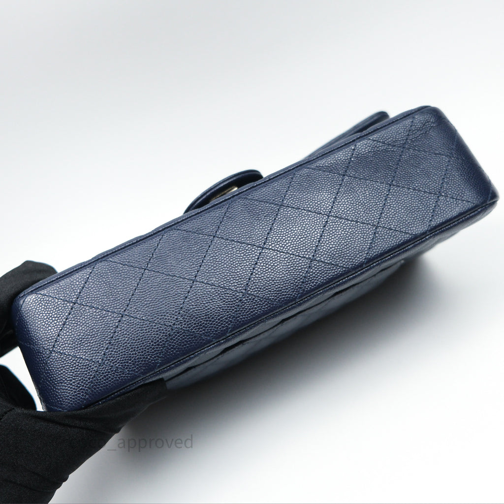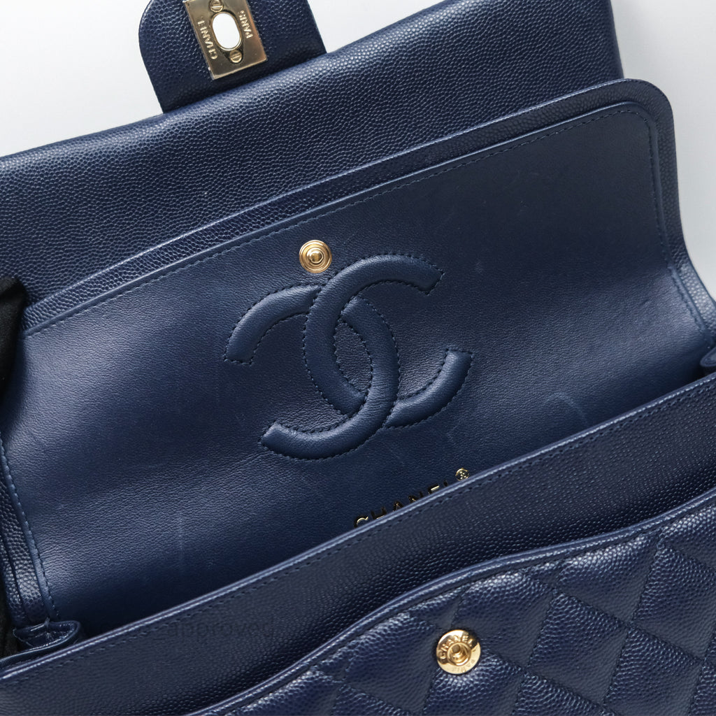 Chanel Classic M/L Medium Flap Quilted Navy Caviar Gold Hardware 21S