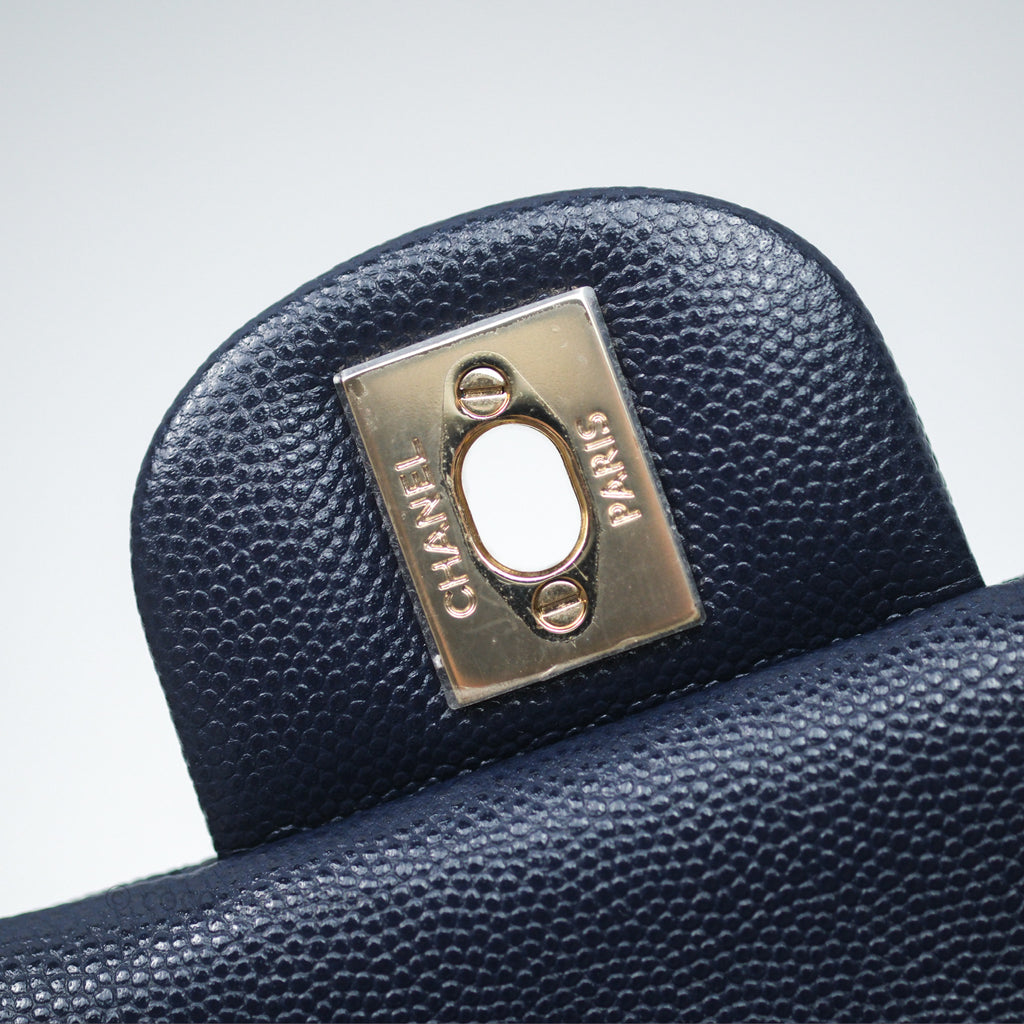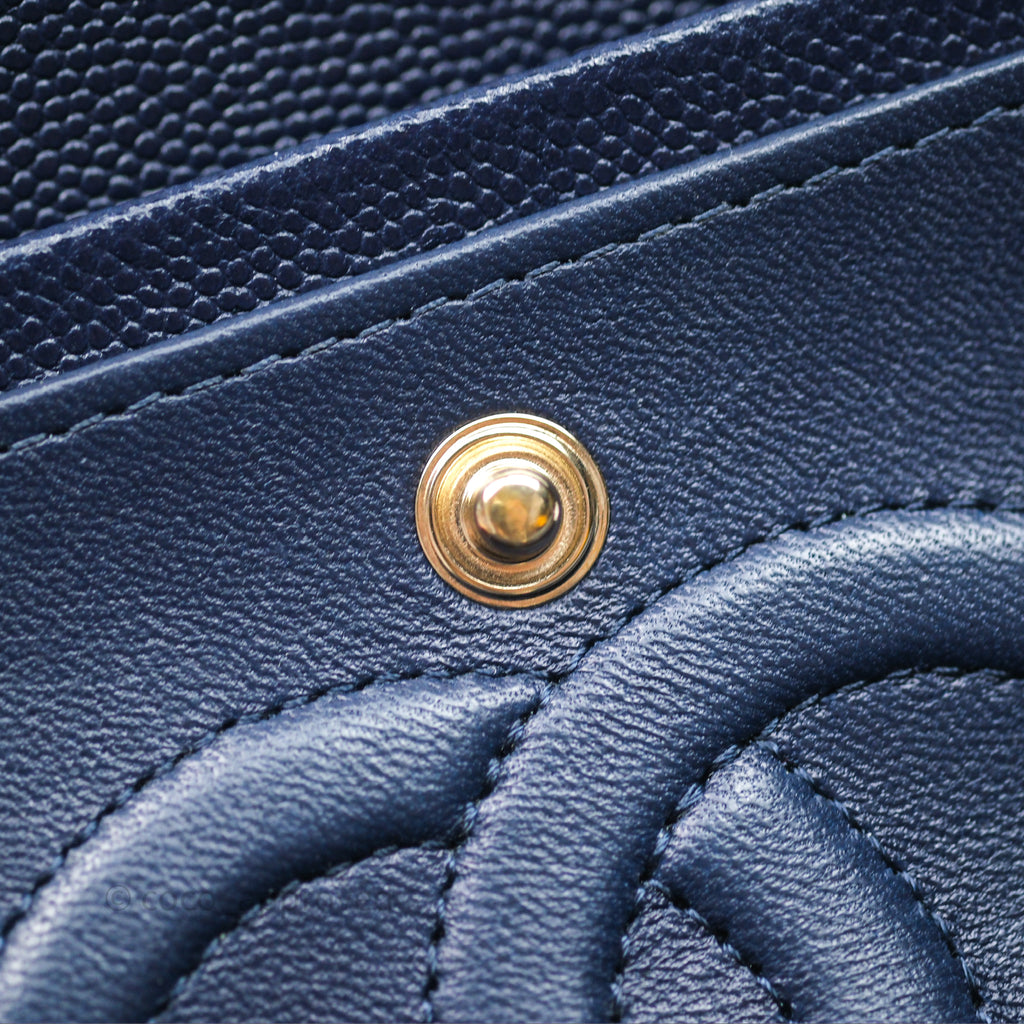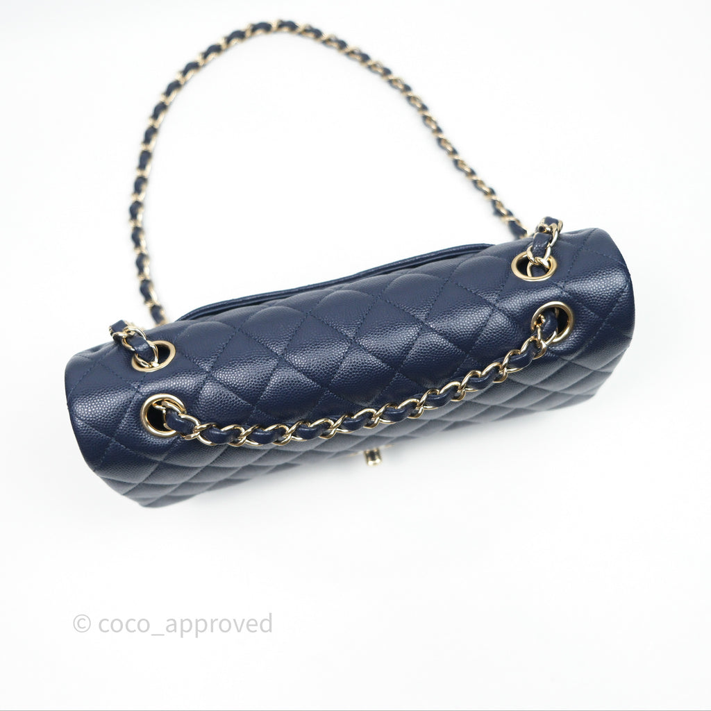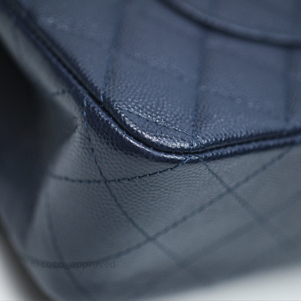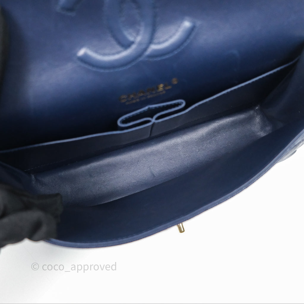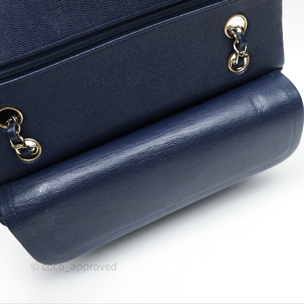 Chanel Classic M/L Medium Flap Quilted Navy Caviar Gold Hardware 21S