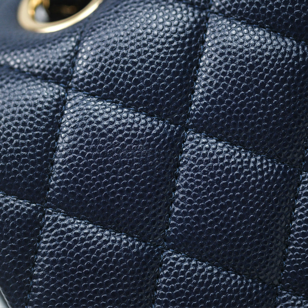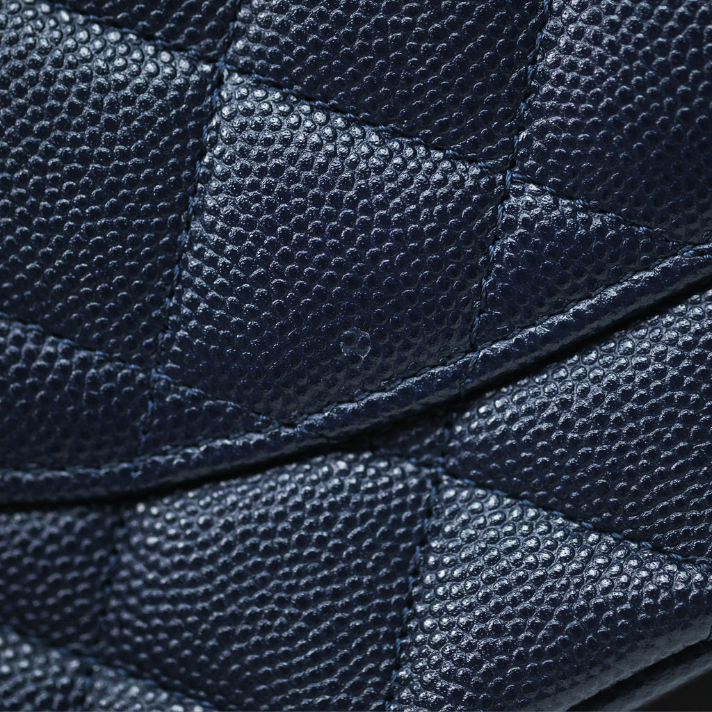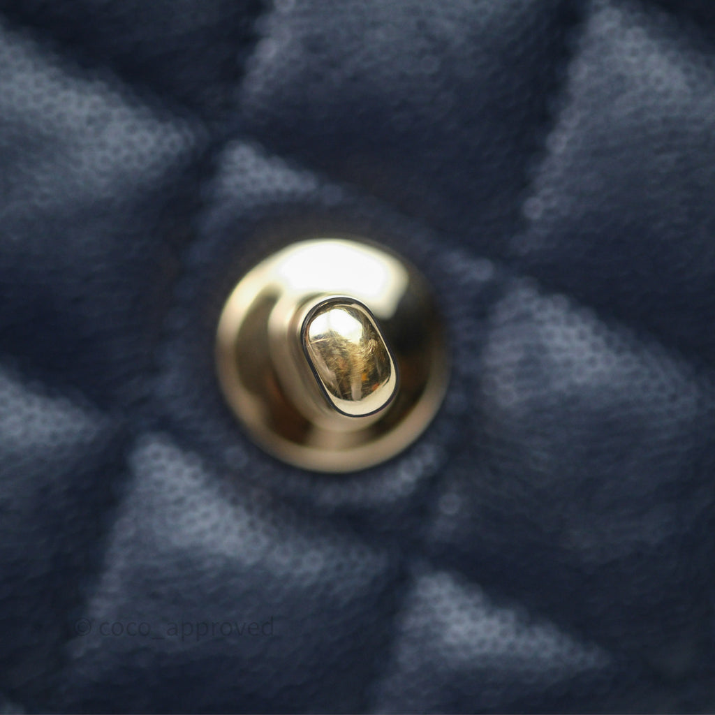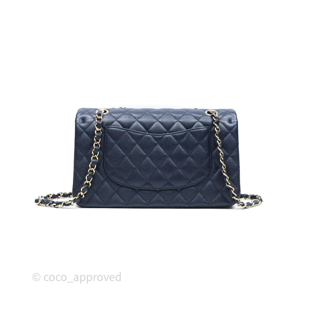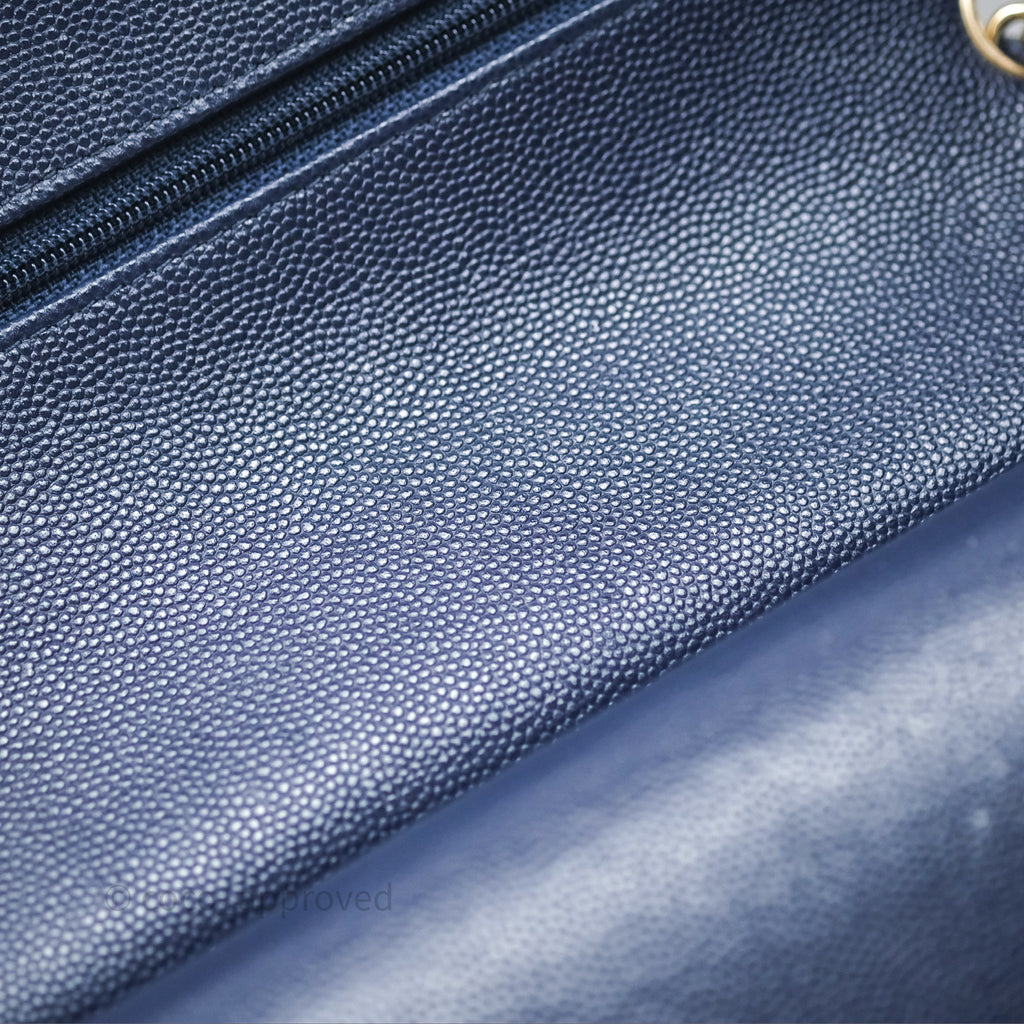 Chanel Classic M/L Medium Flap Quilted Navy Caviar Gold Hardware 21S