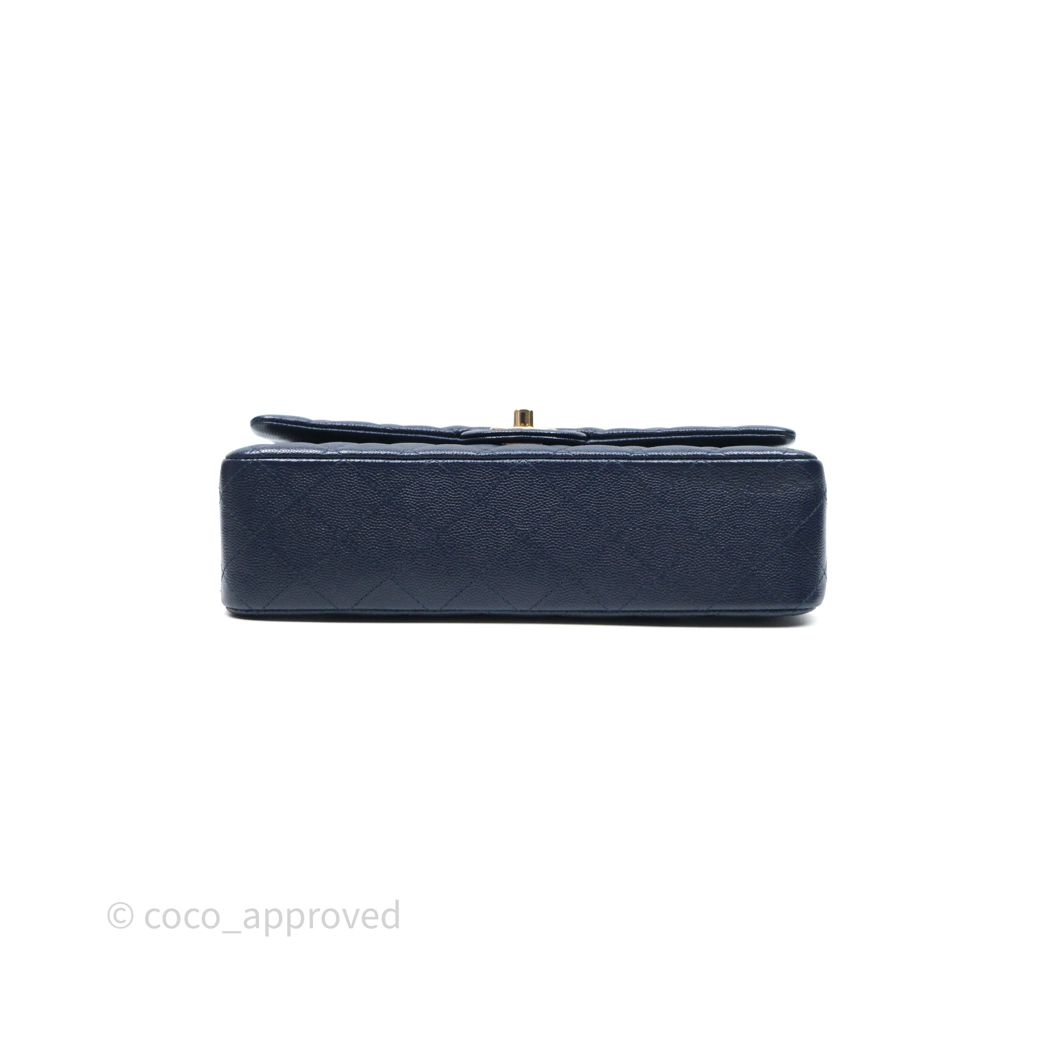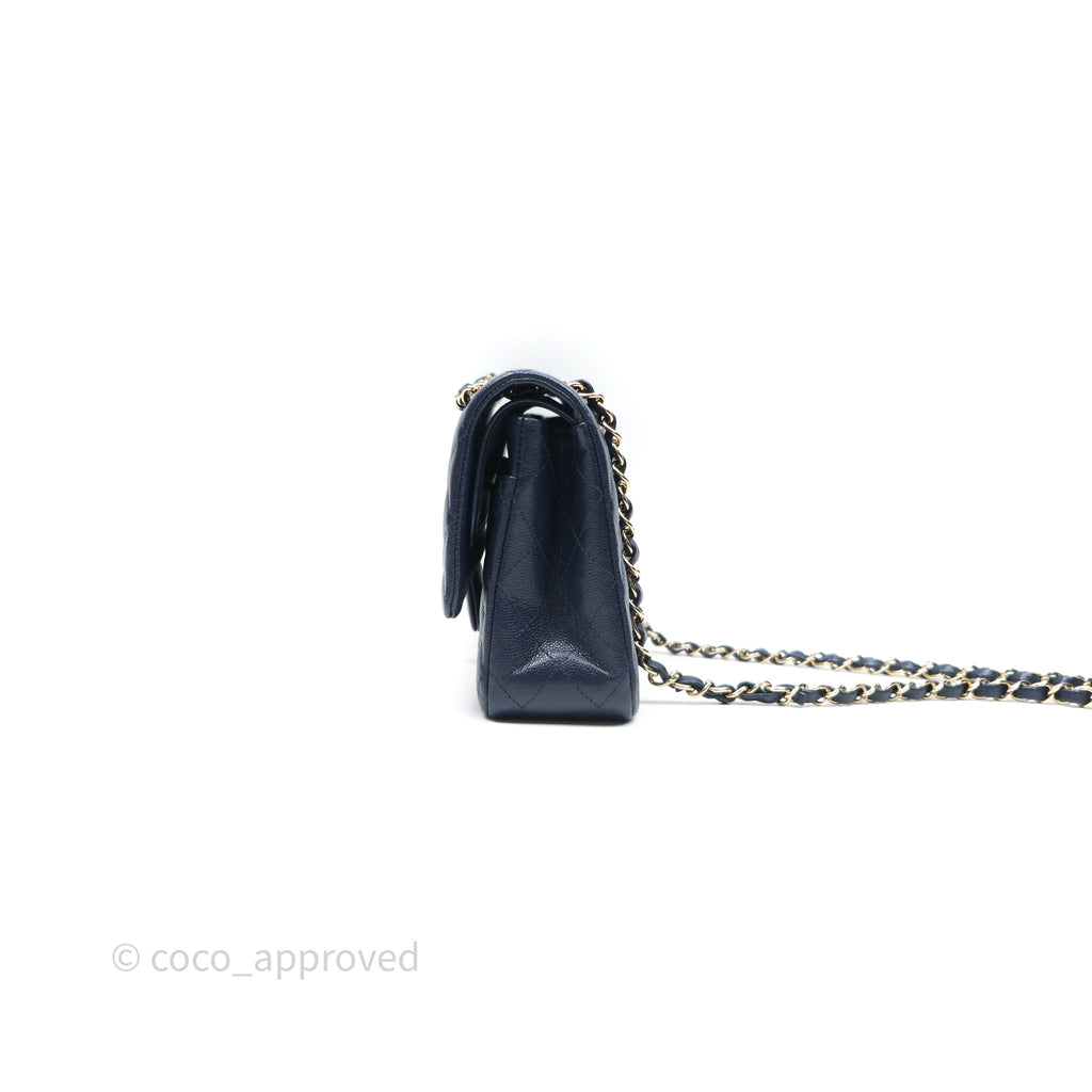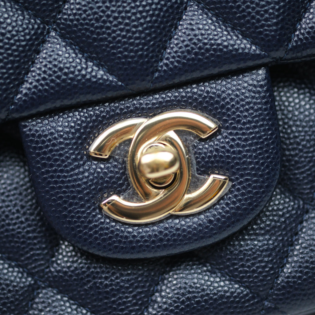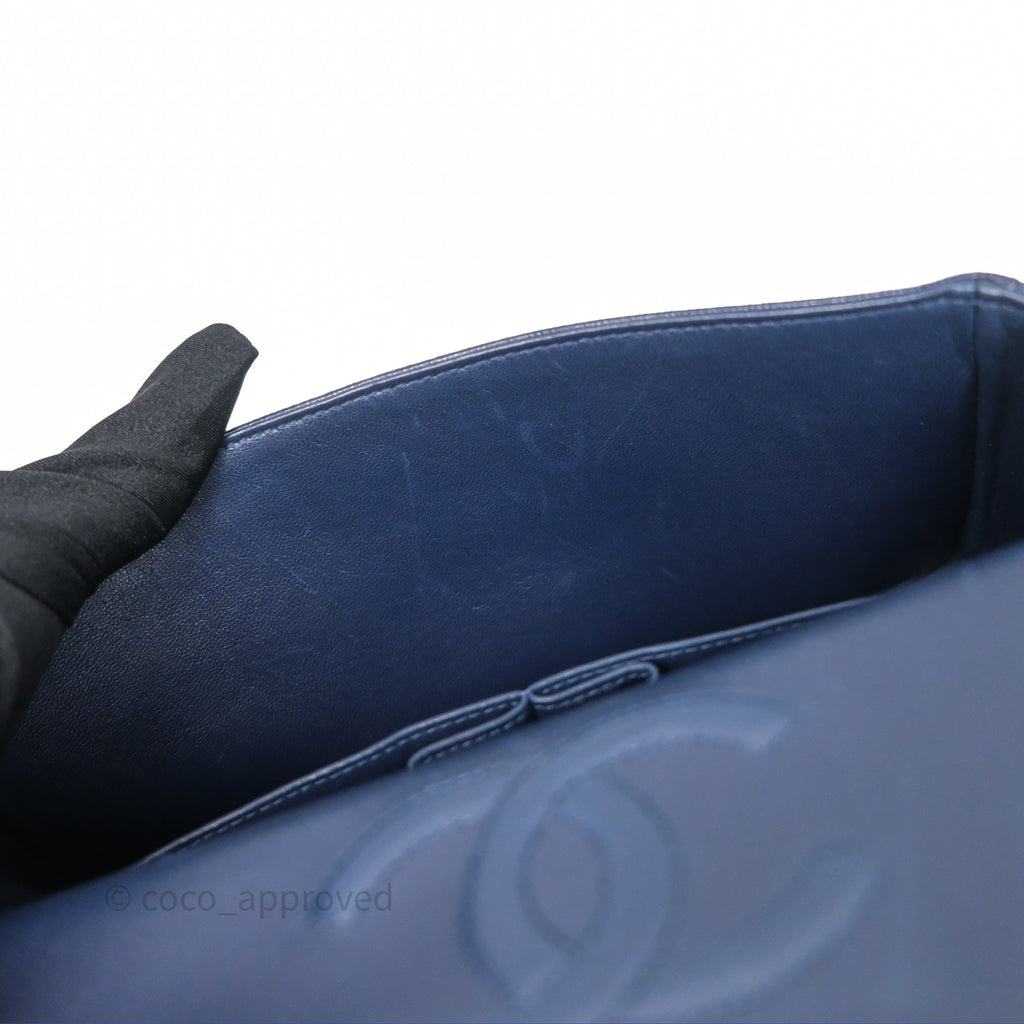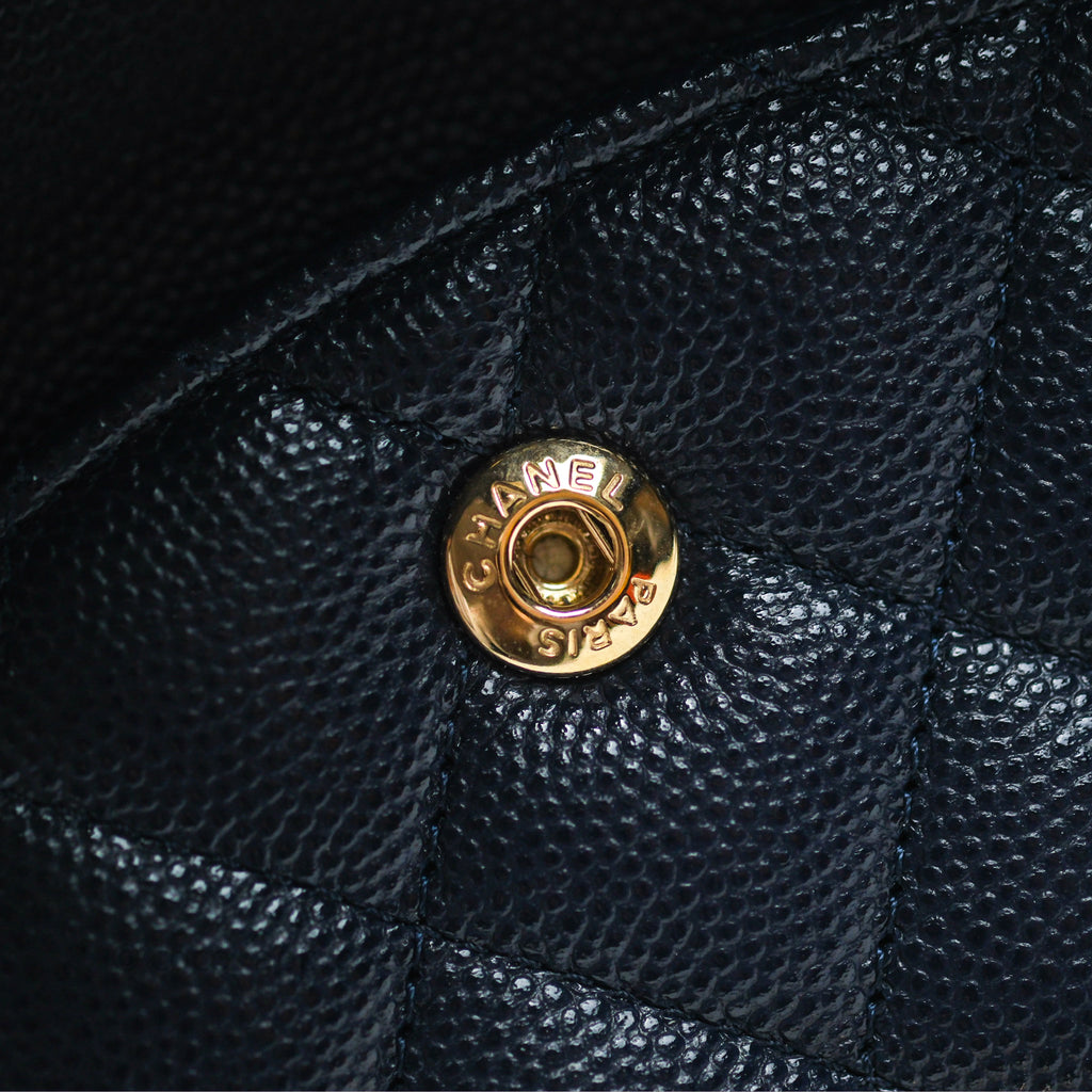 Chanel Classic M/L Medium Flap Quilted Navy Caviar Gold Hardware 21S