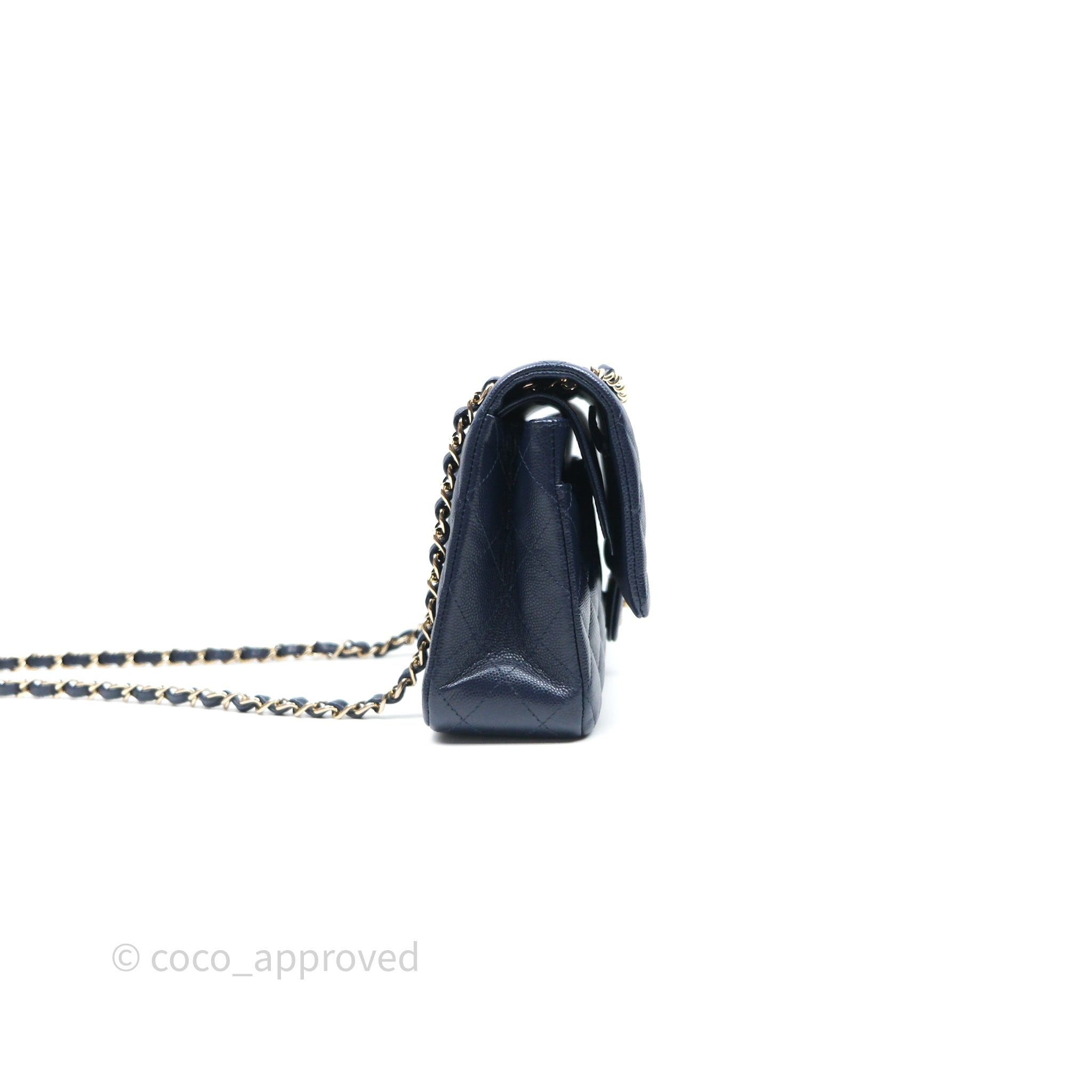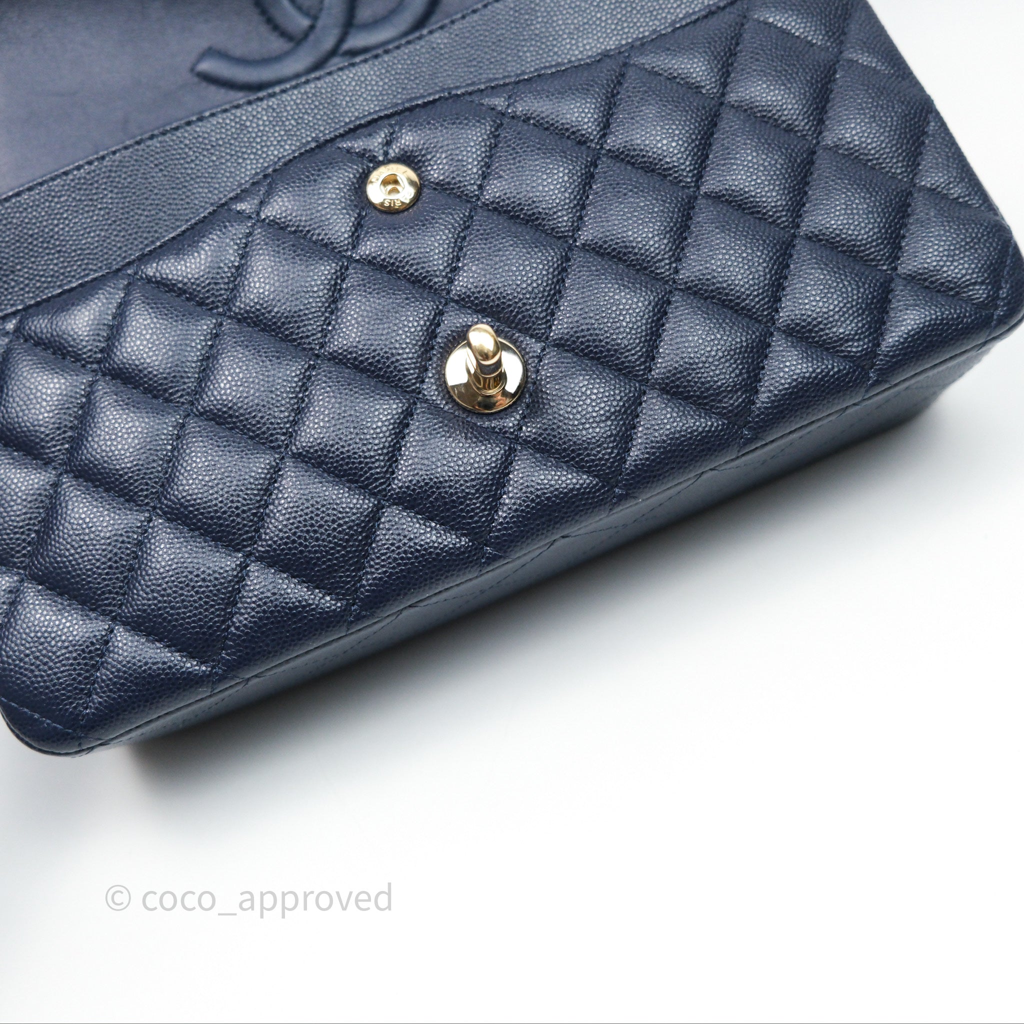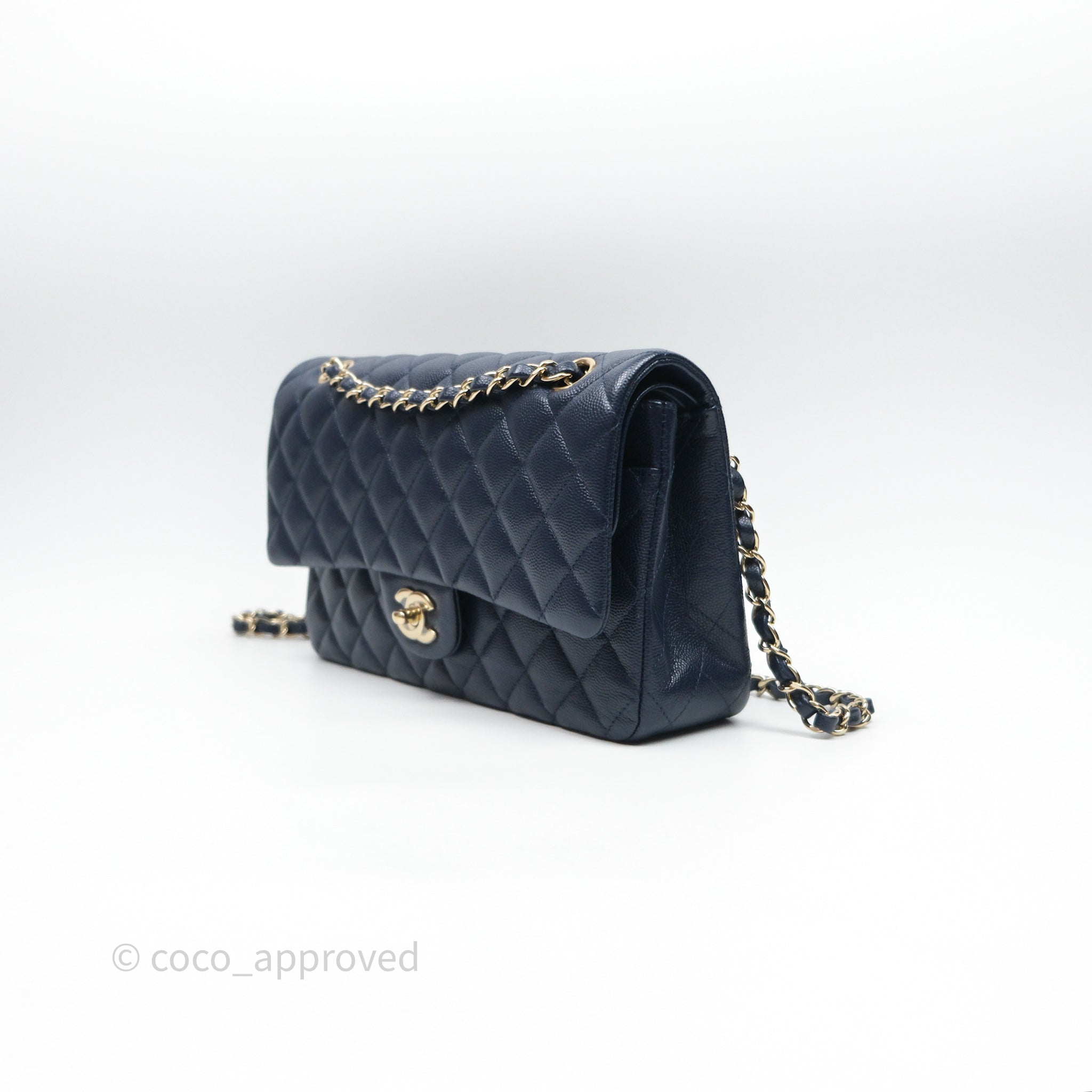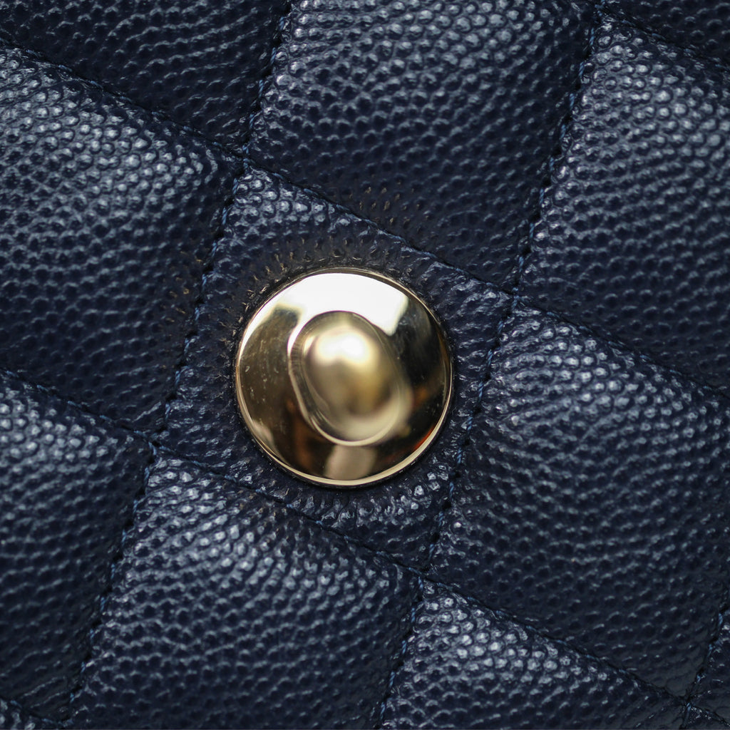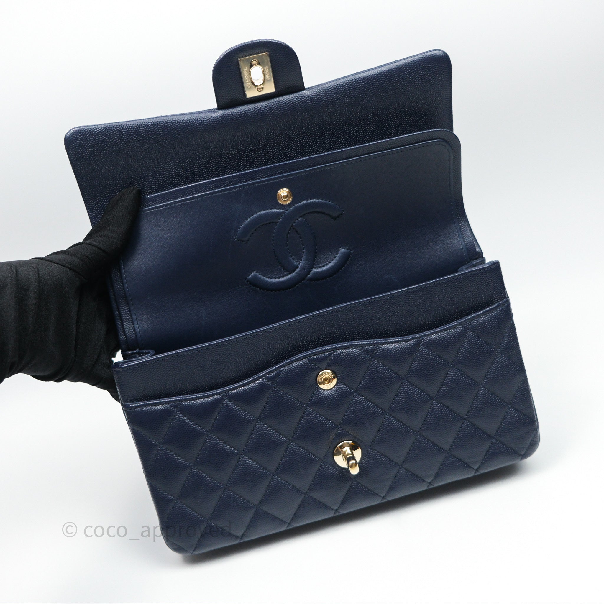 Chanel Classic M/L Medium Flap Quilted Navy Caviar Gold Hardware 21S