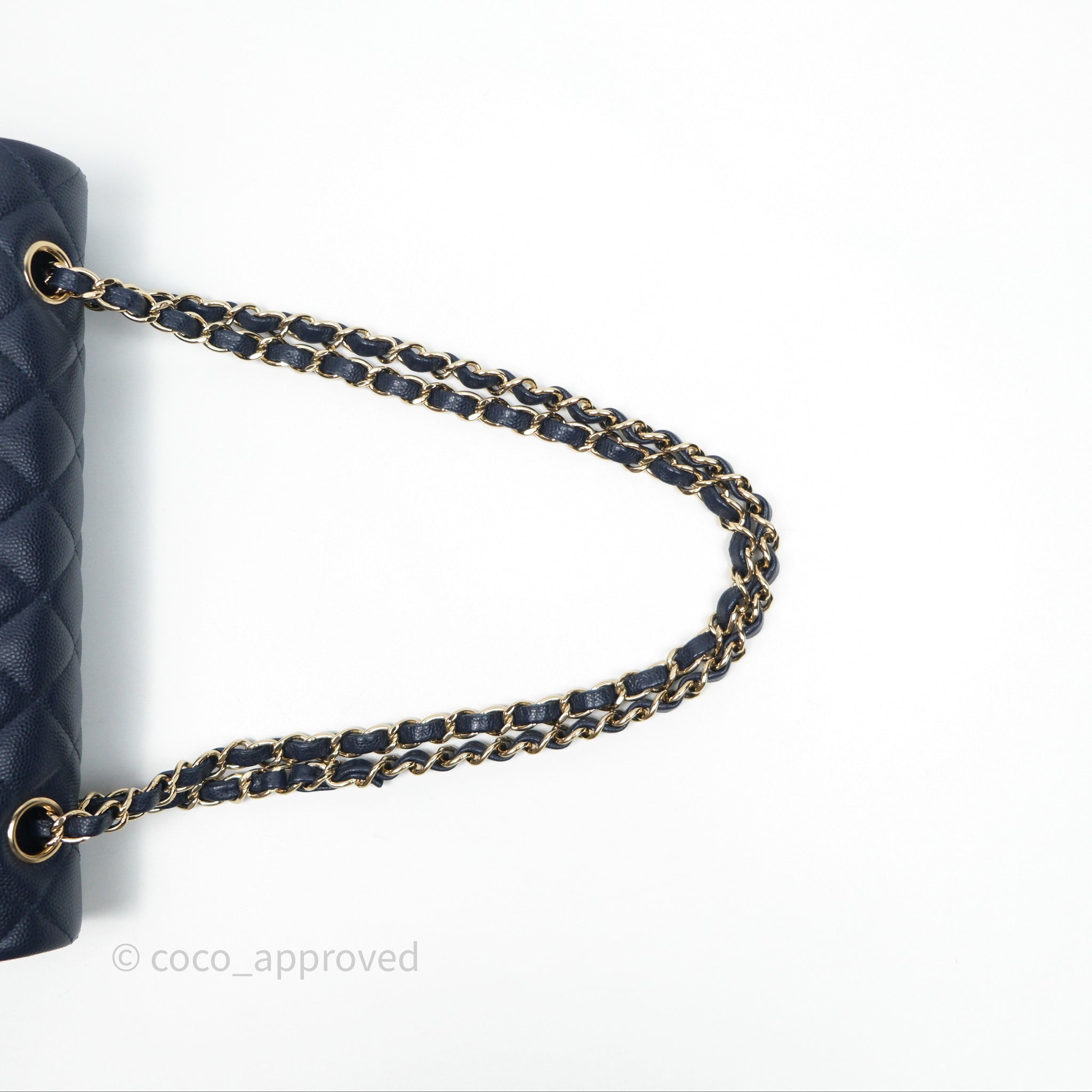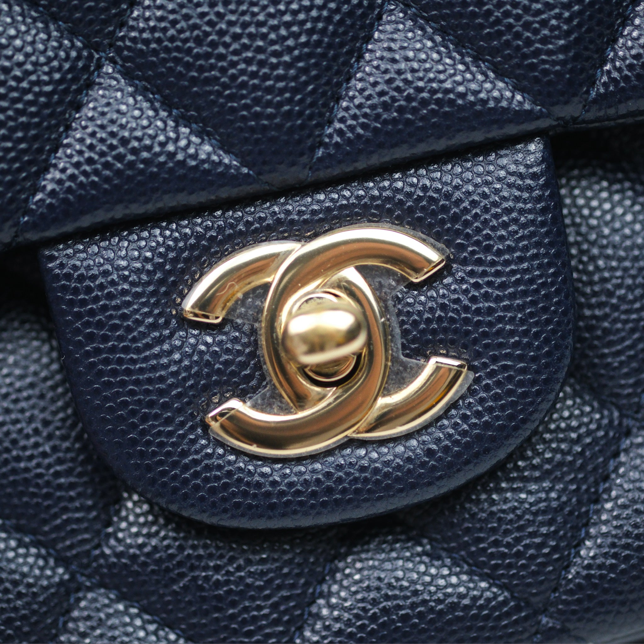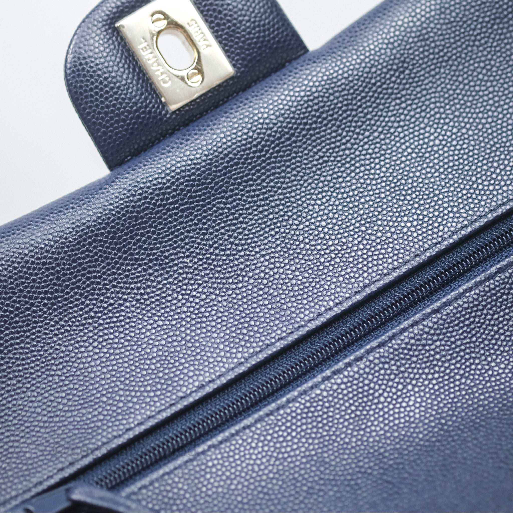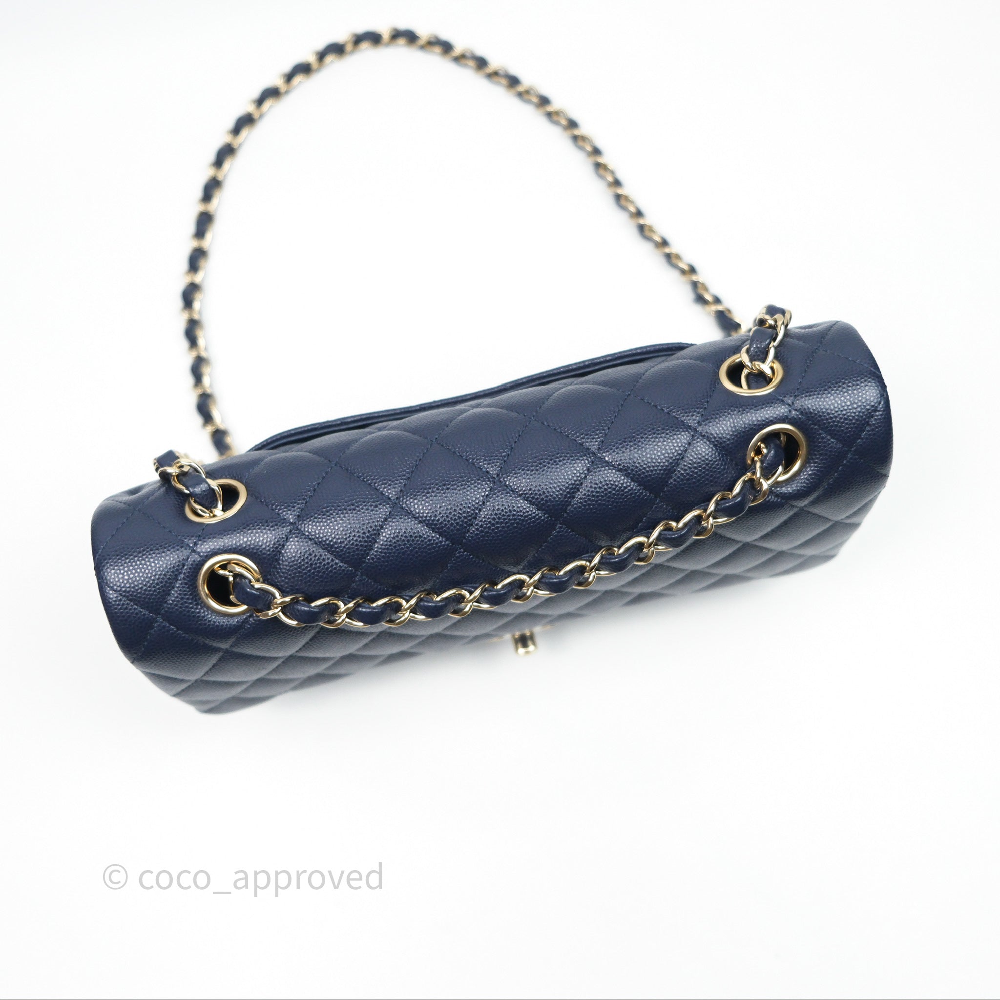 Chanel Classic M/L Medium Flap Quilted Navy Caviar Gold Hardware 21S