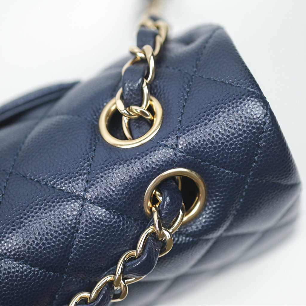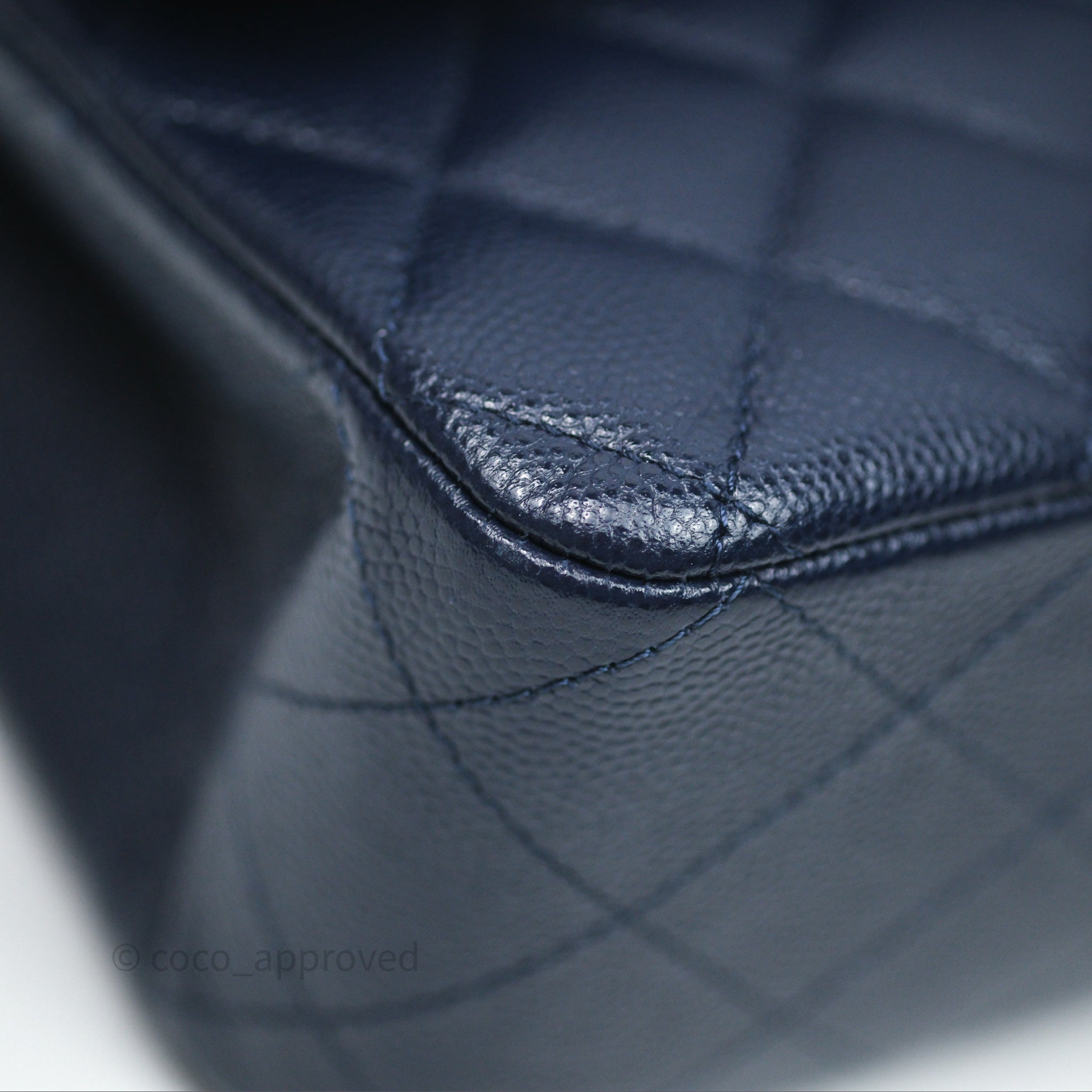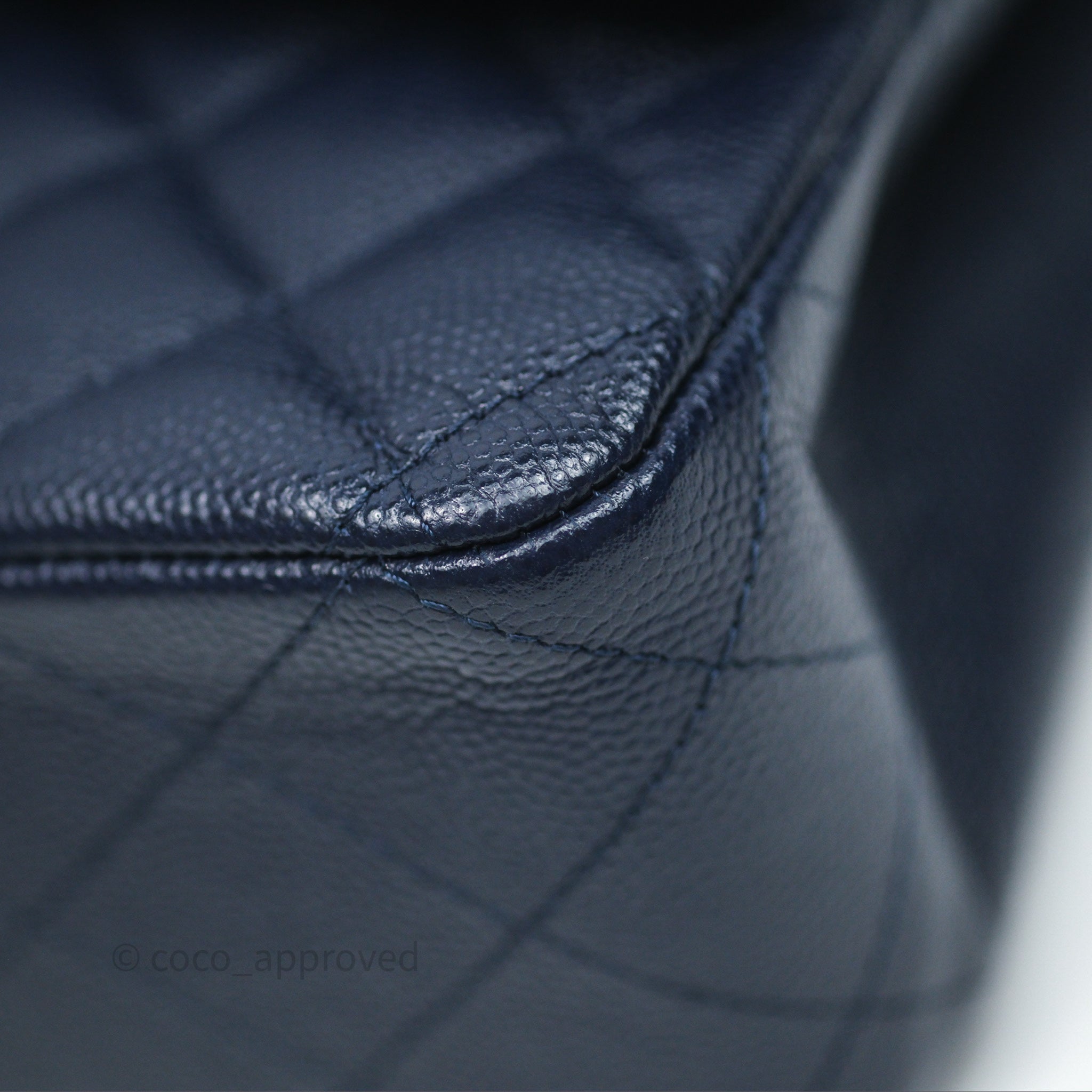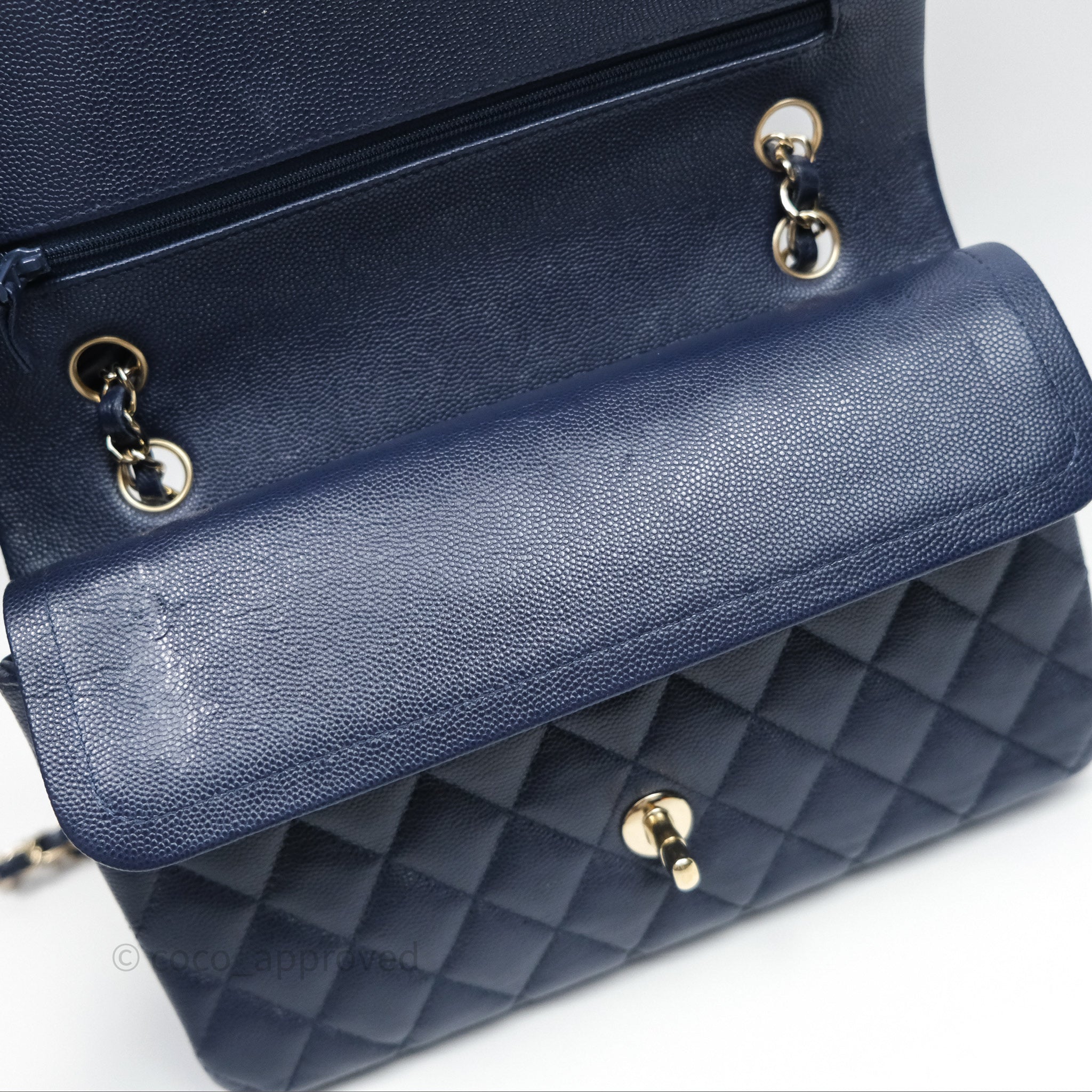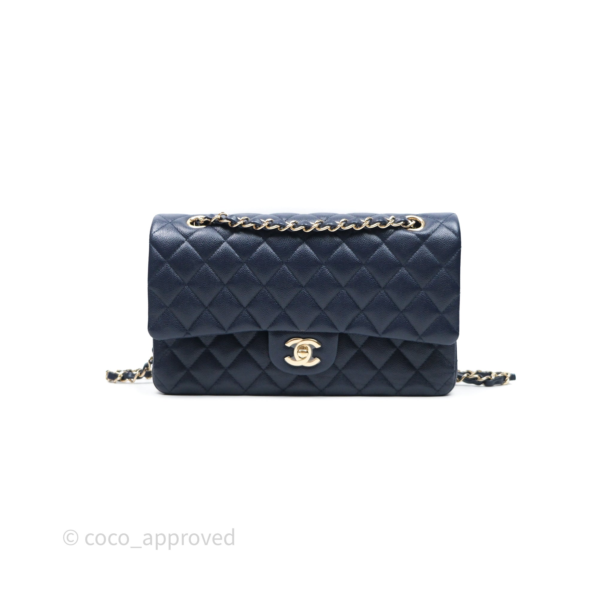 Chanel Classic M/L Medium Flap Quilted Navy Caviar Gold Hardware 21S