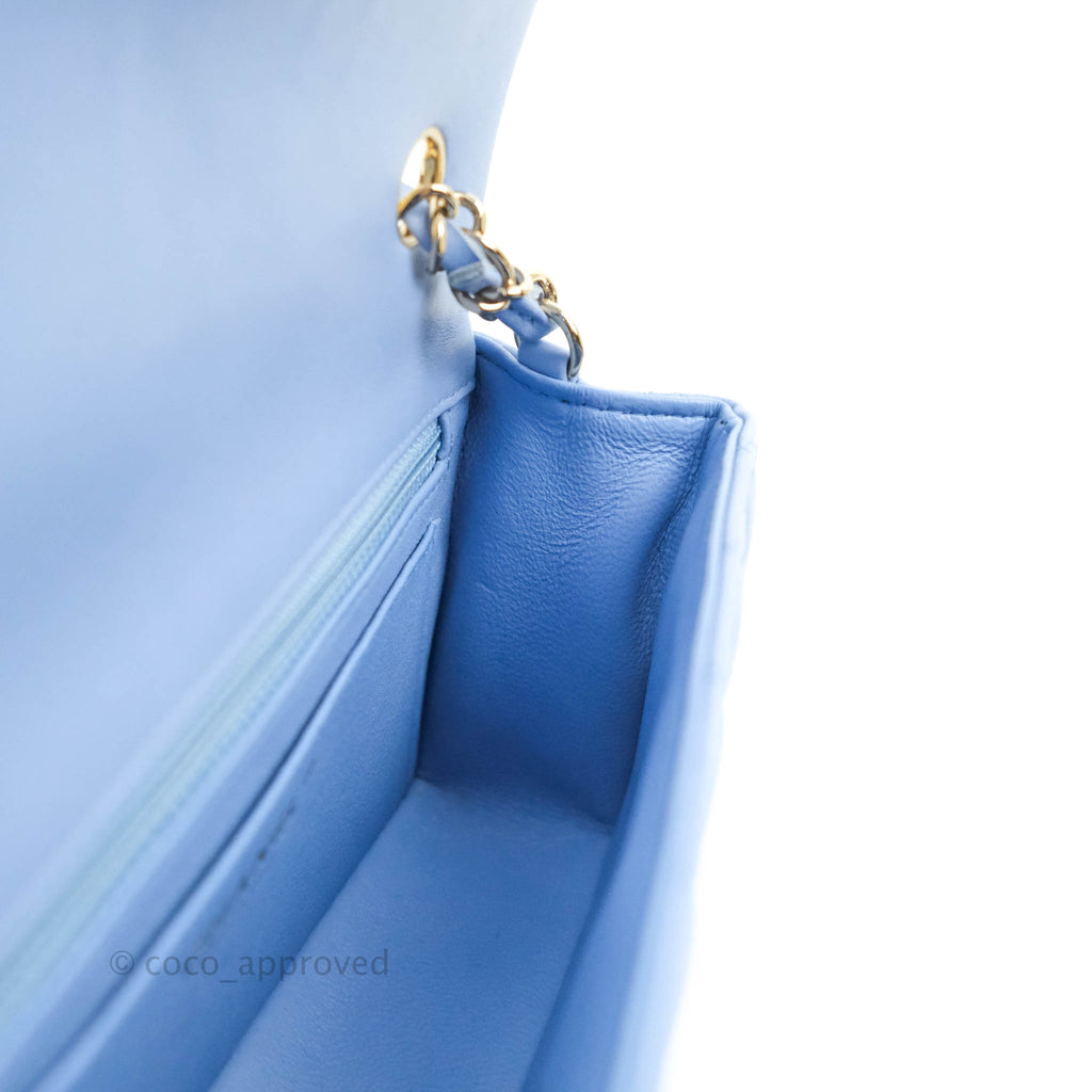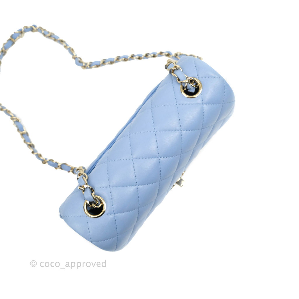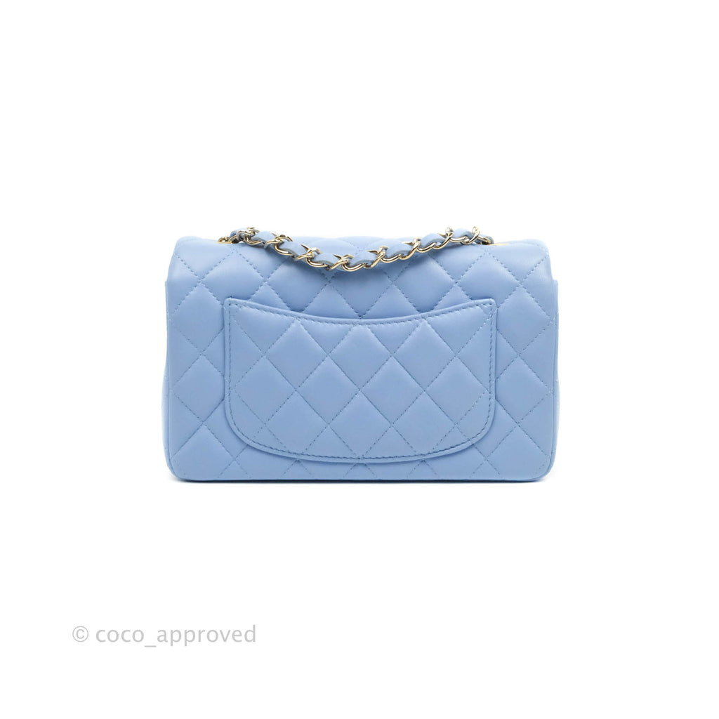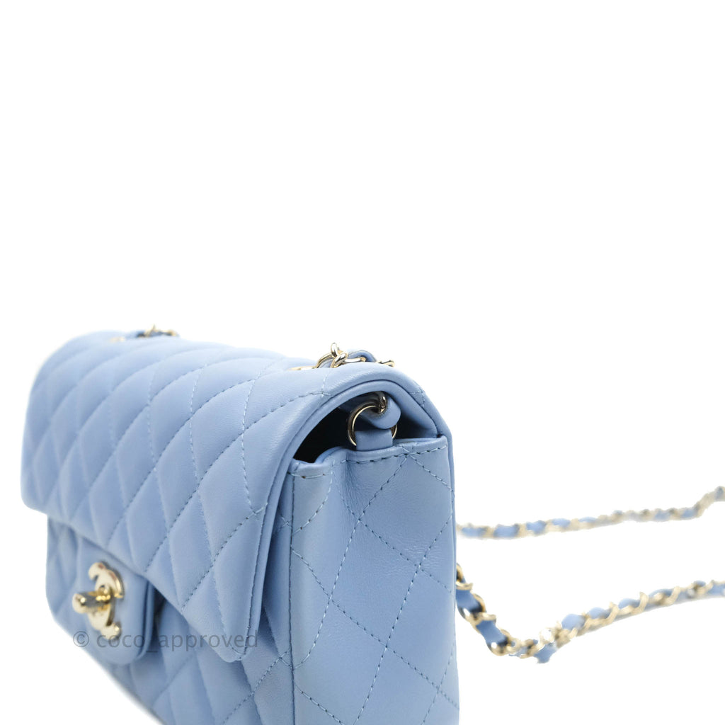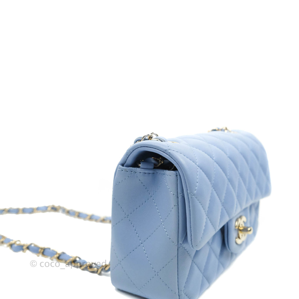 Chanel Classic Mini Rectangular Flap Blue Sky Lambskin Gold Hardware 21C
