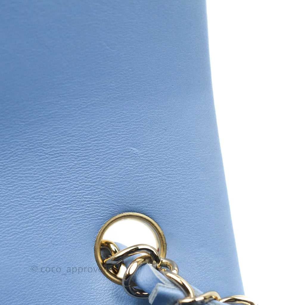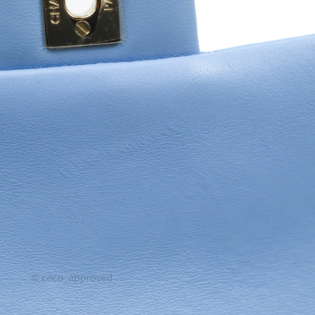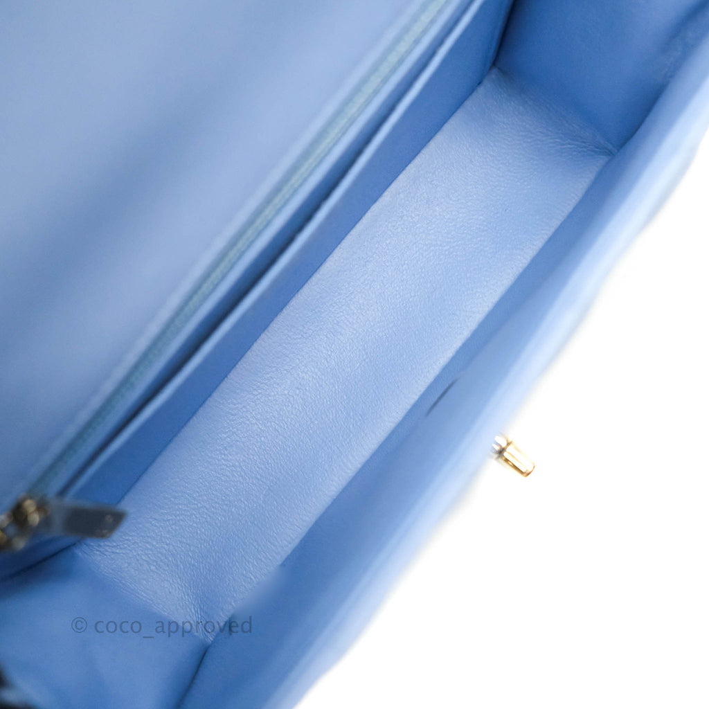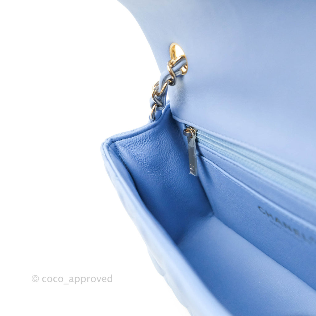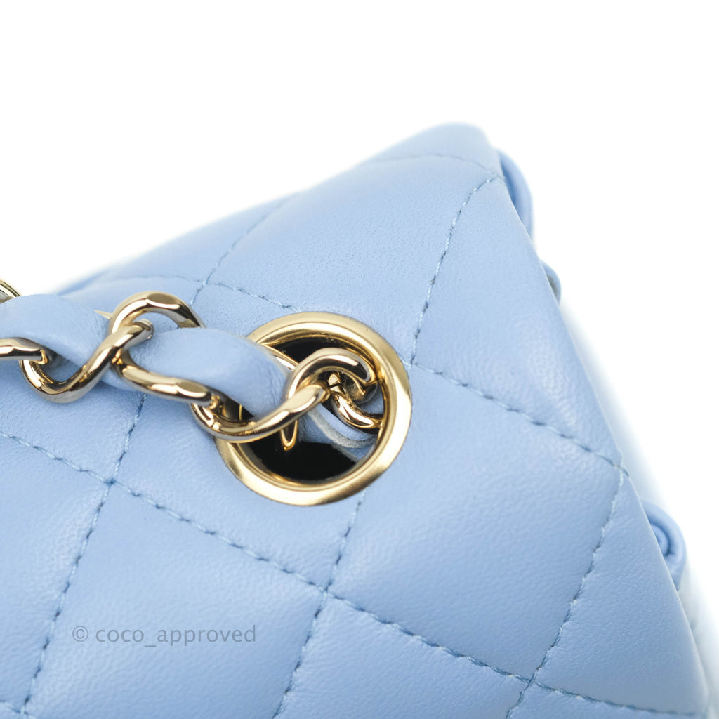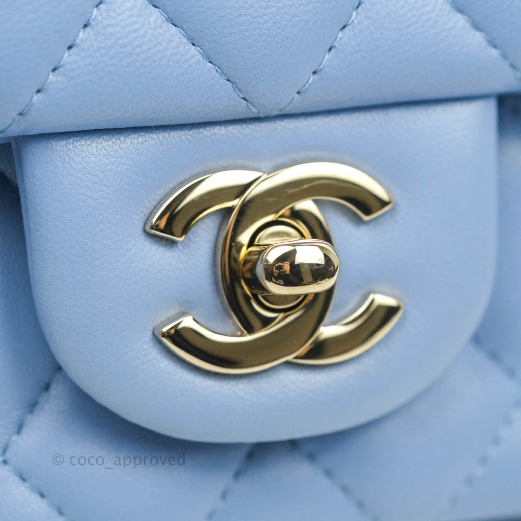 Chanel Classic Mini Rectangular Flap Blue Sky Lambskin Gold Hardware 21C