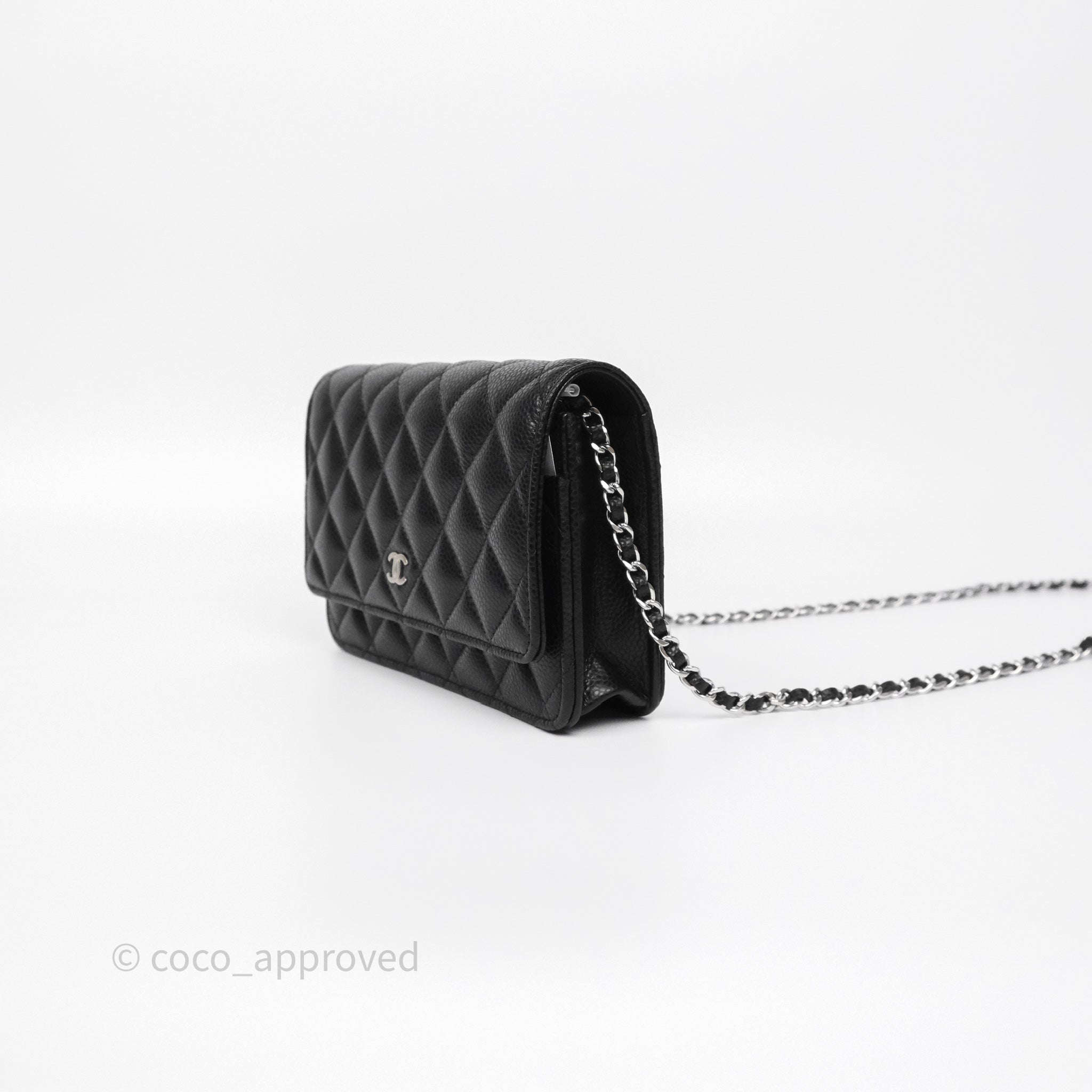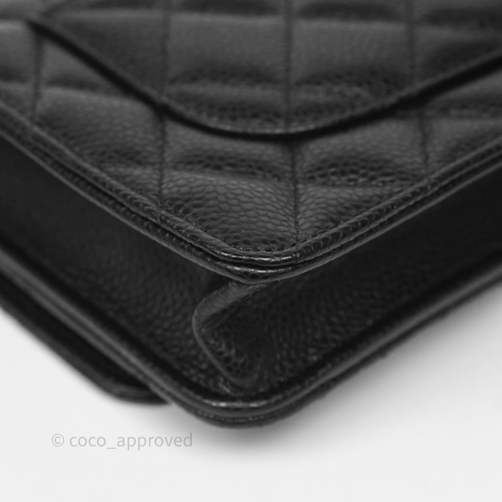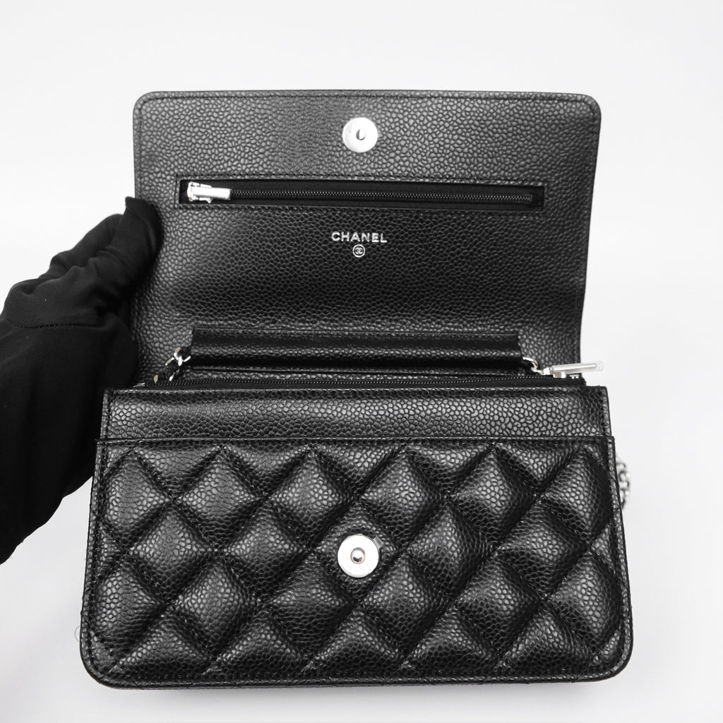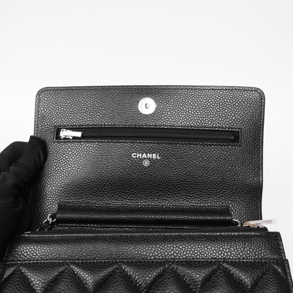 Chanel Classic Wallet On Chain WOC Quilted Black Caviar Silver Hardware