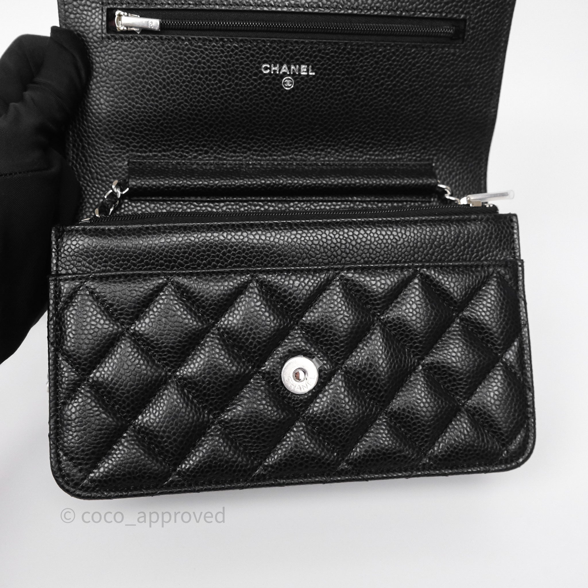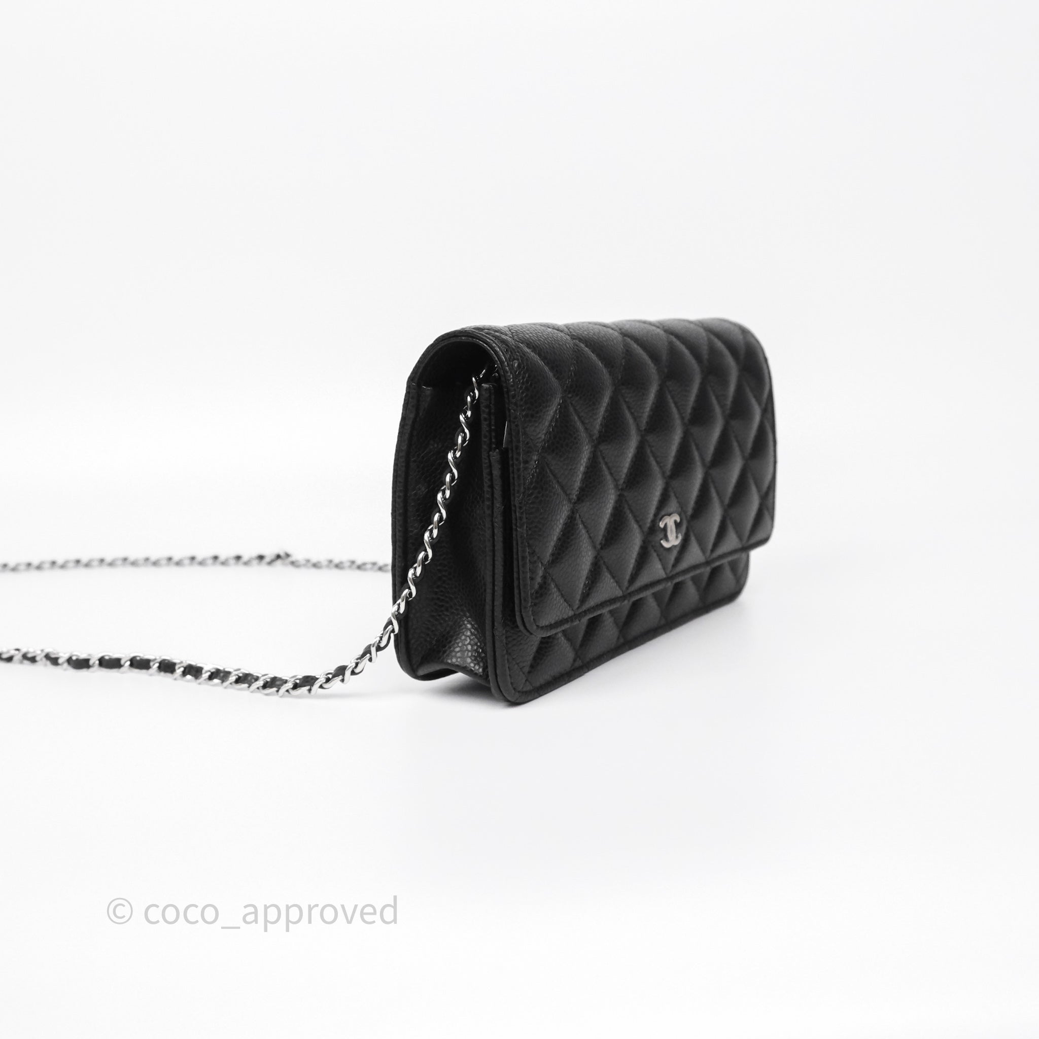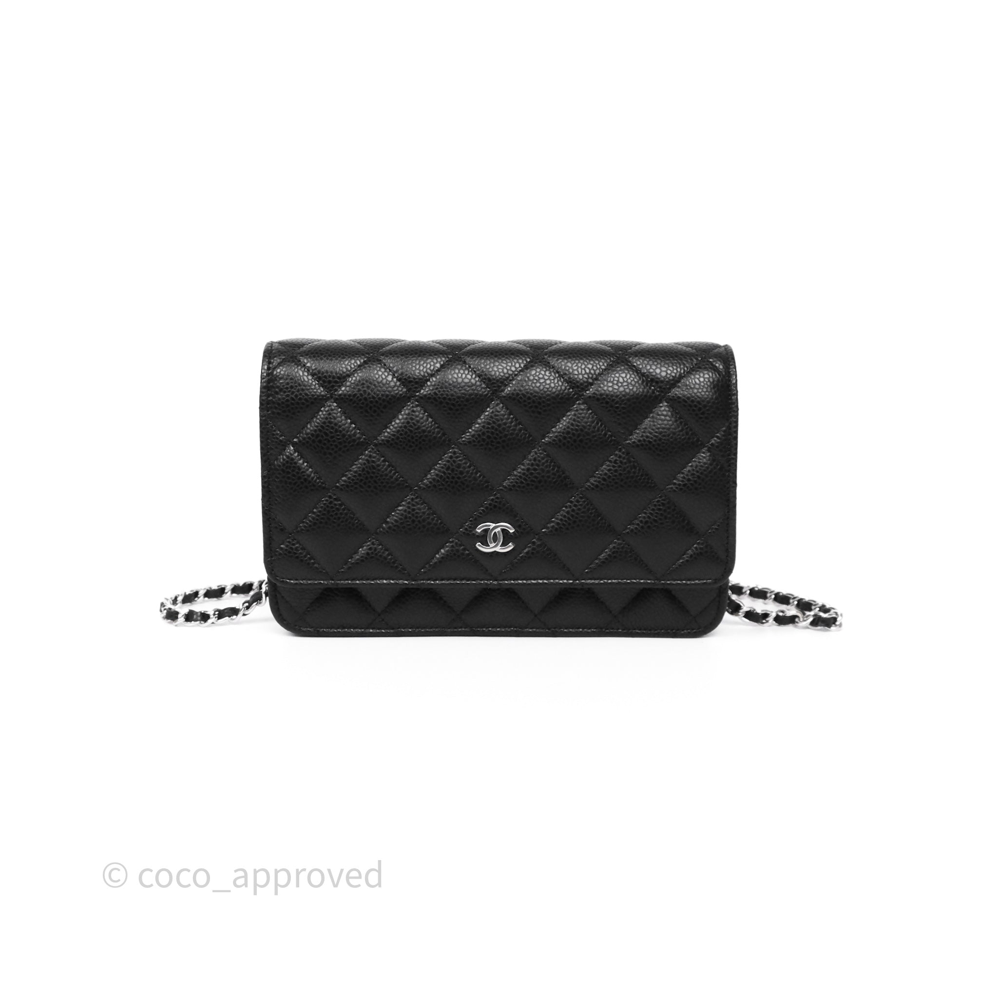 Chanel Classic Wallet On Chain WOC Quilted Black Caviar Silver Hardware