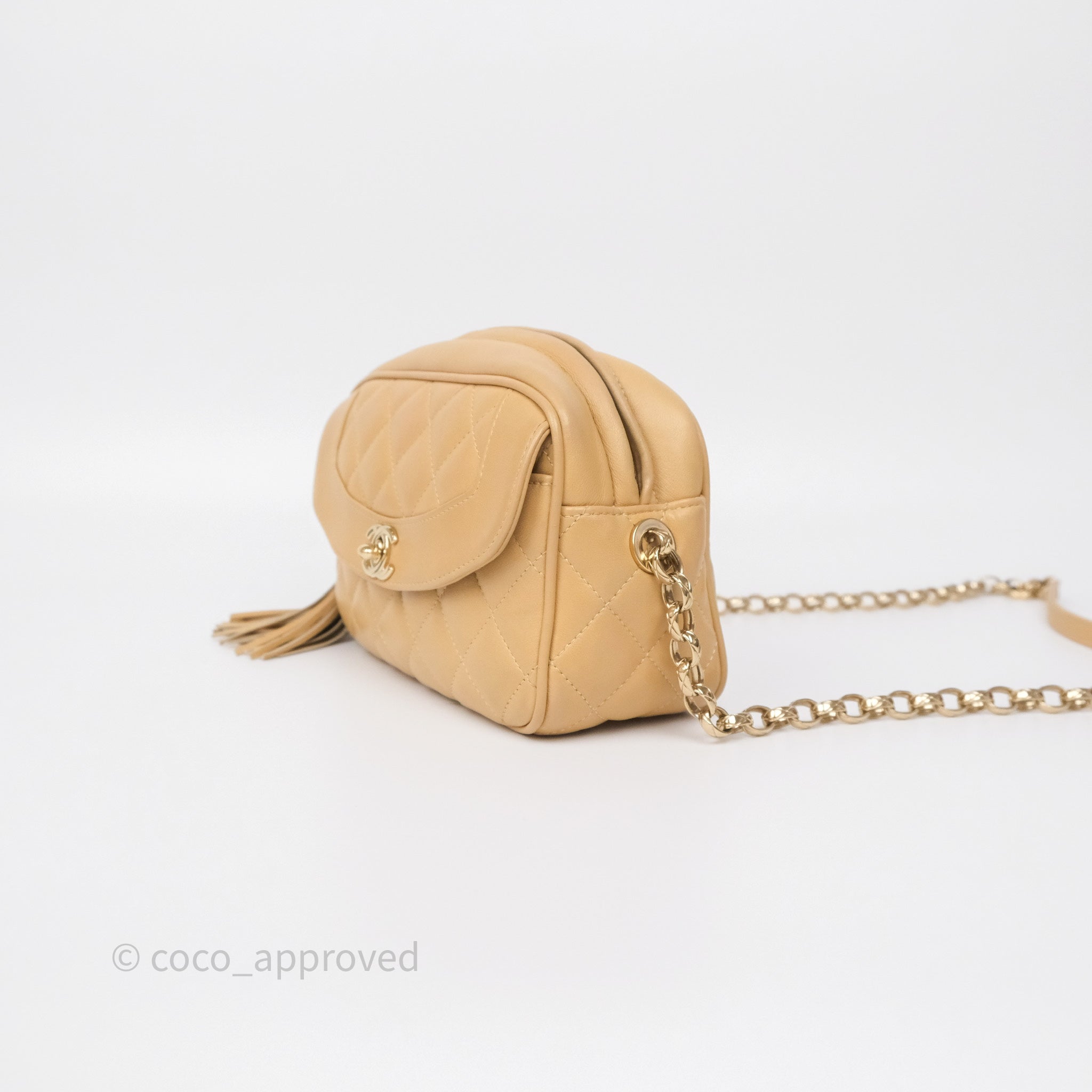 Chanel Coco Vintage Camera Case Beige Calfskin Gold Hardware