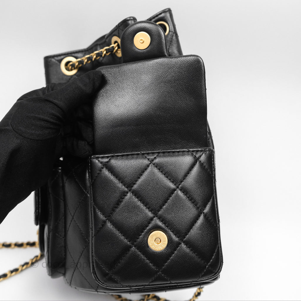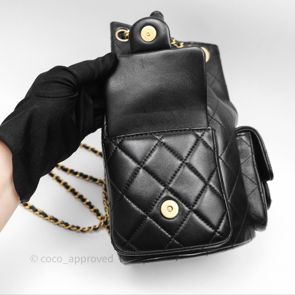 Chanel Double Pocket Black Lambskin Gold Hardware
