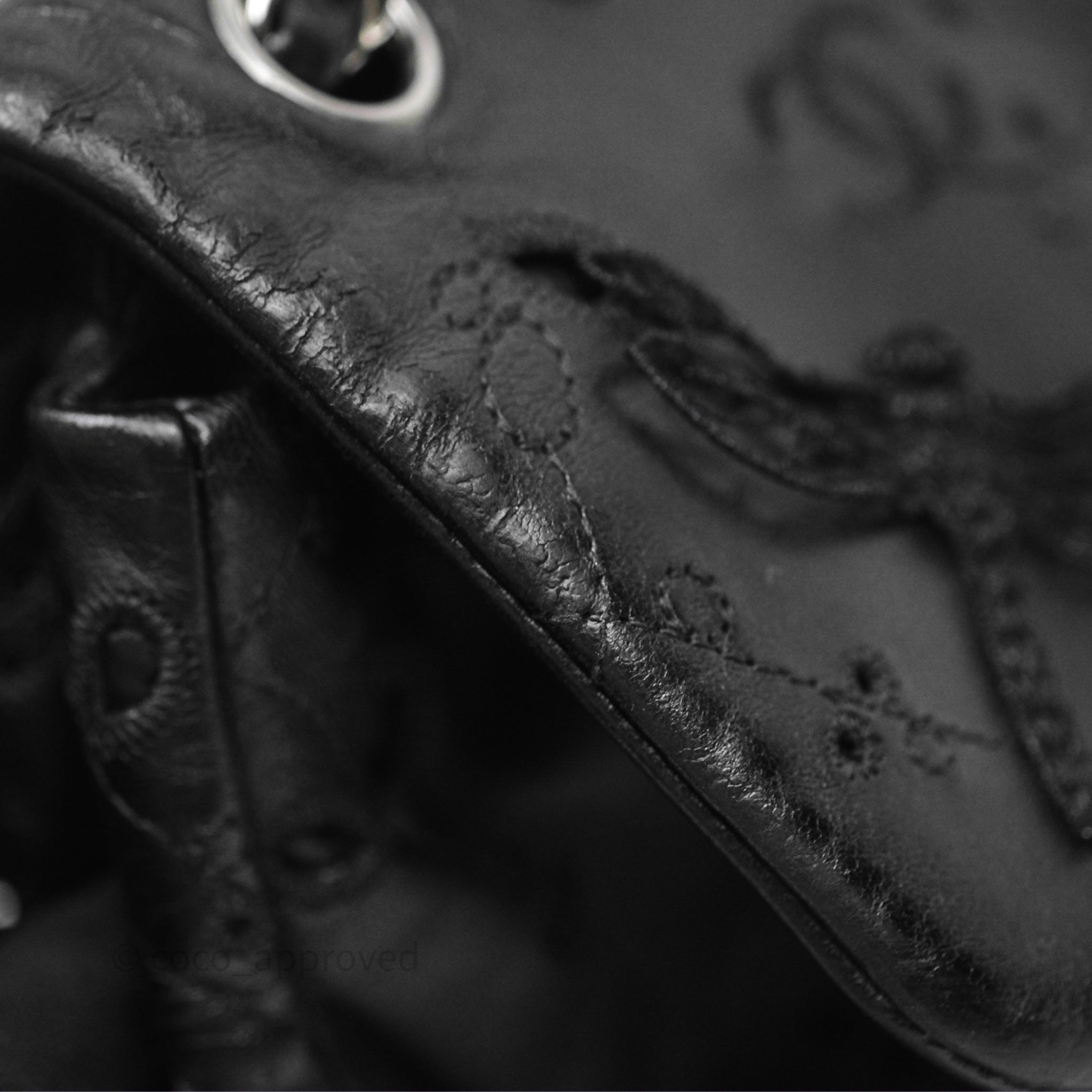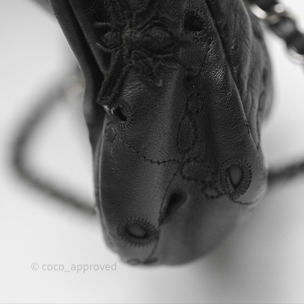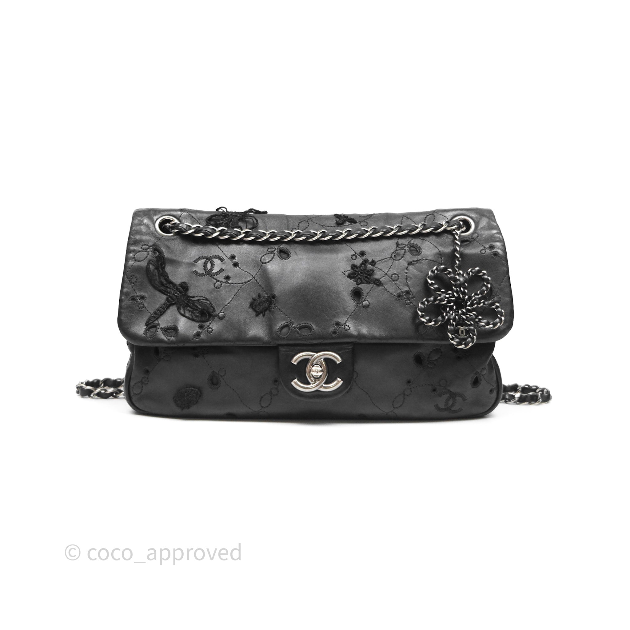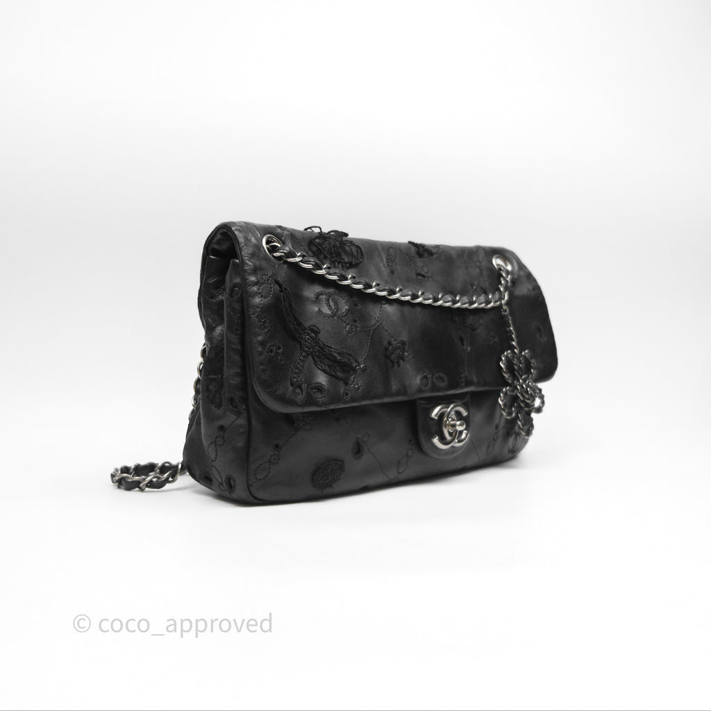Chanel Embroidered Butterfly Flap Black Lambskin Ruthenium Hardware