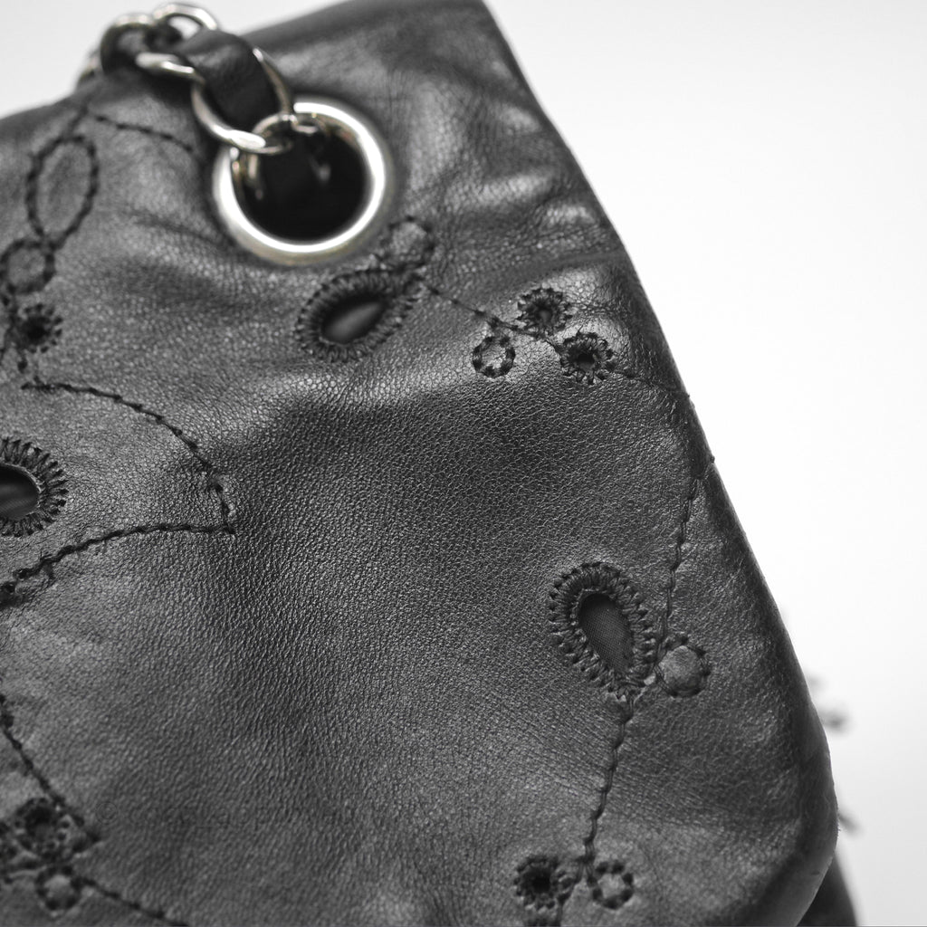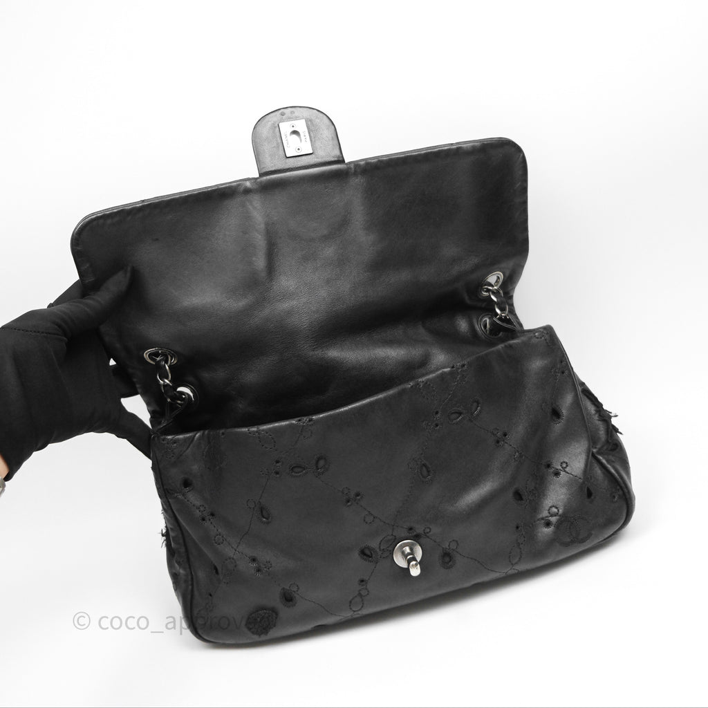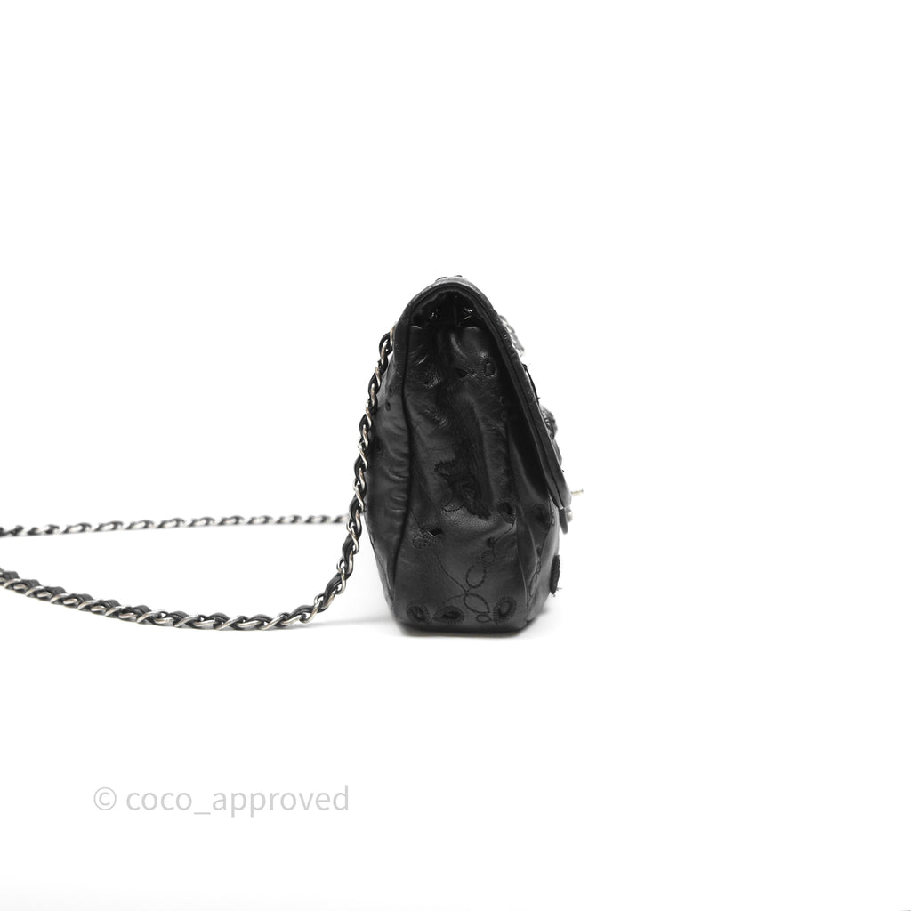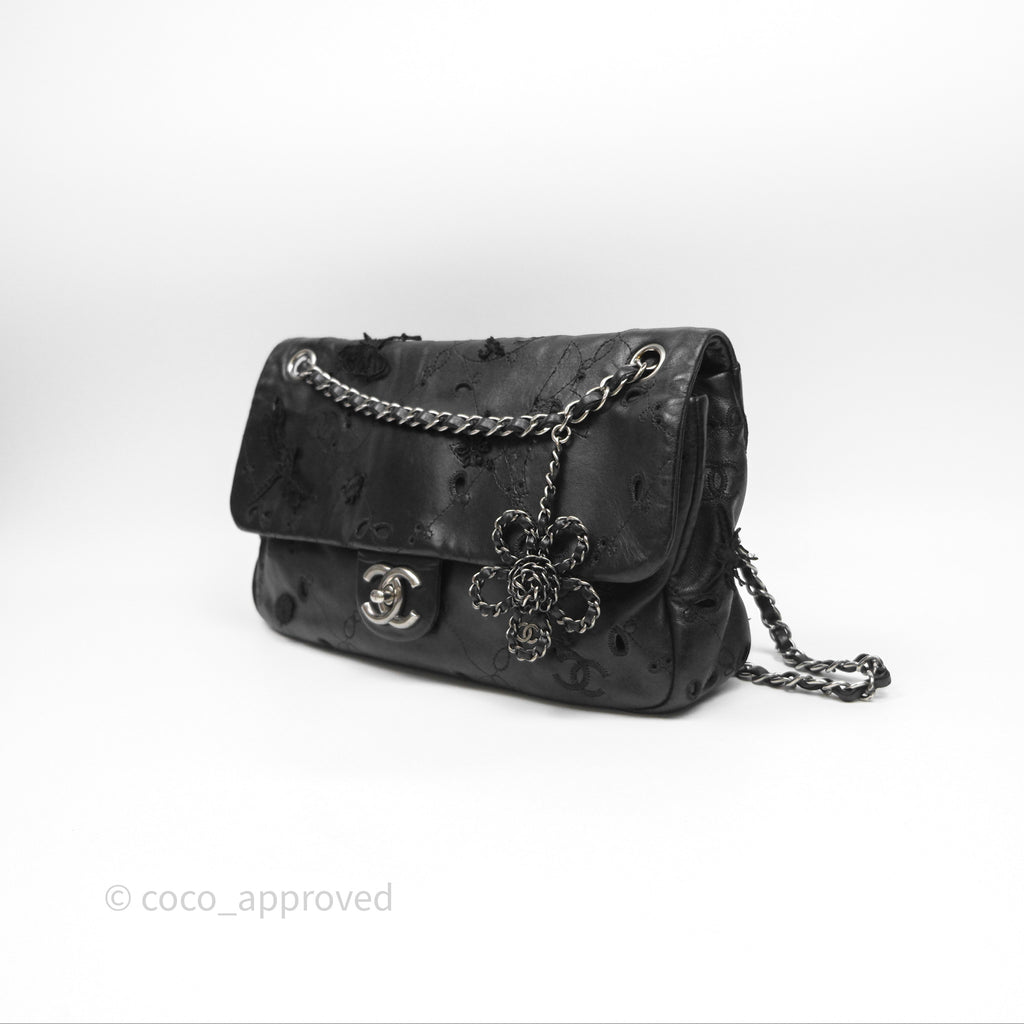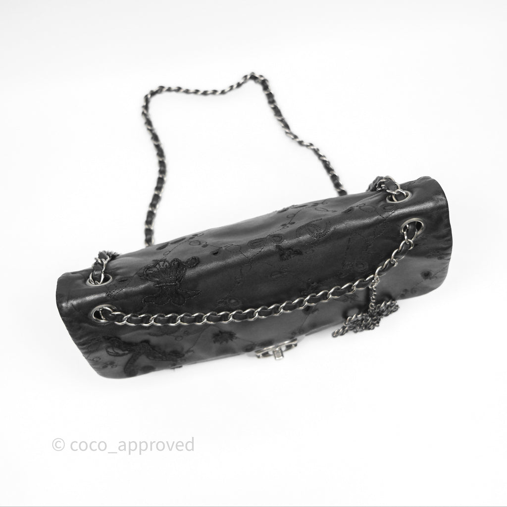 Chanel Embroidered Butterfly Flap Black Lambskin Ruthenium Hardware
