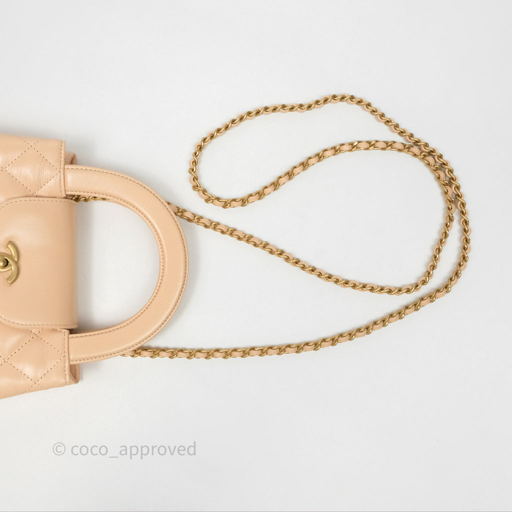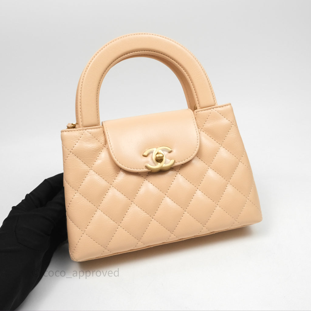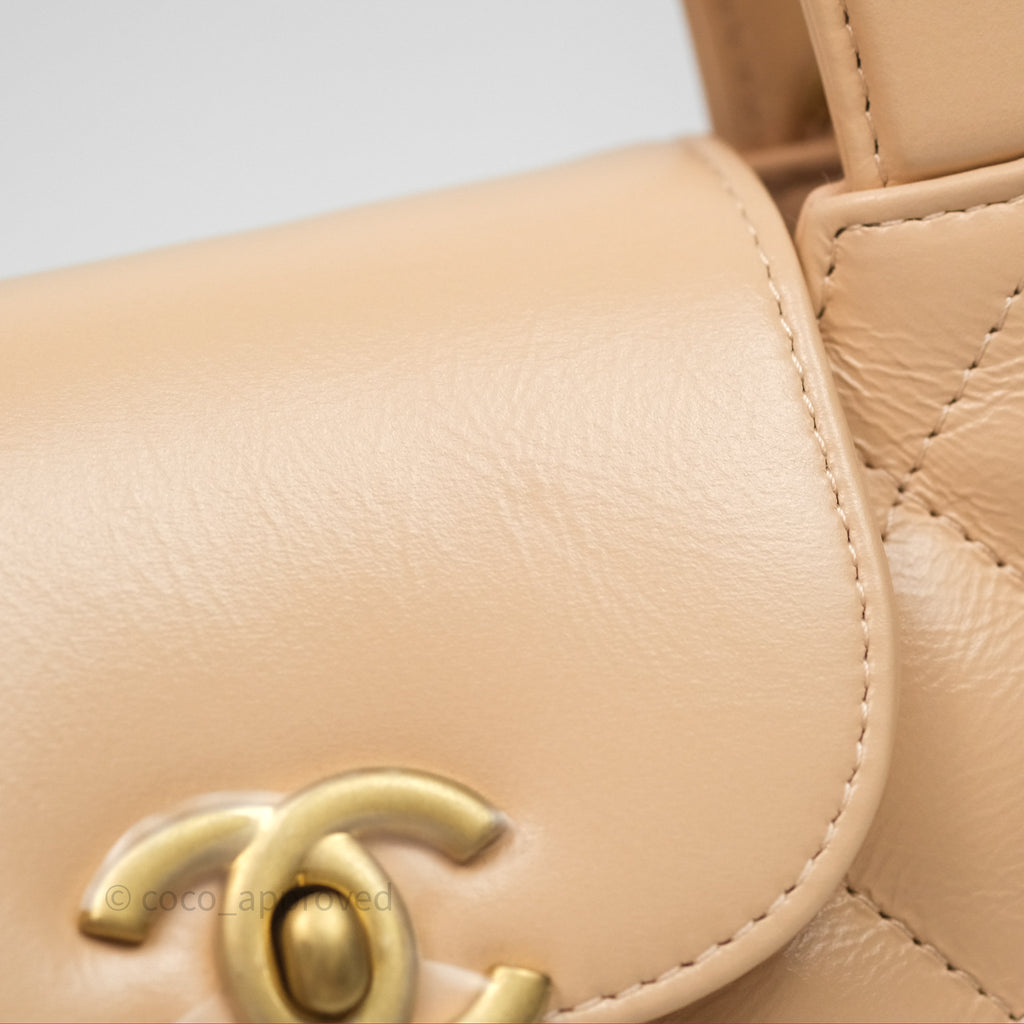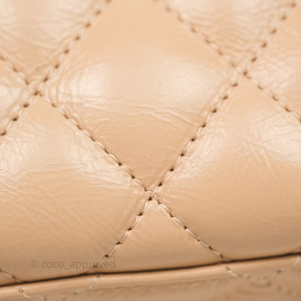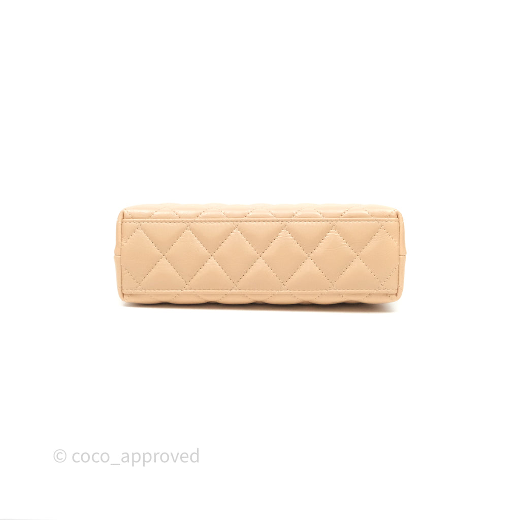 Chanel Kelly Bag Quilted Light Beige Shiny Crumpled Calfskin Aged Gold Hardware