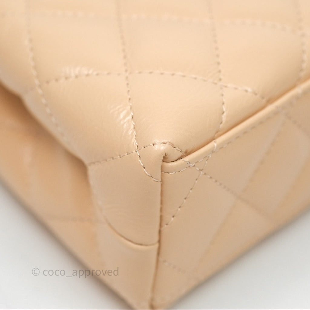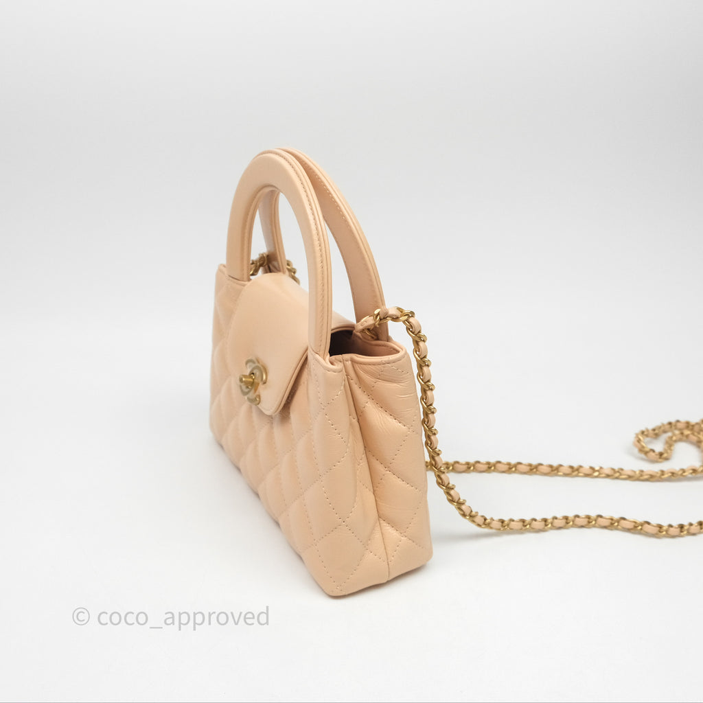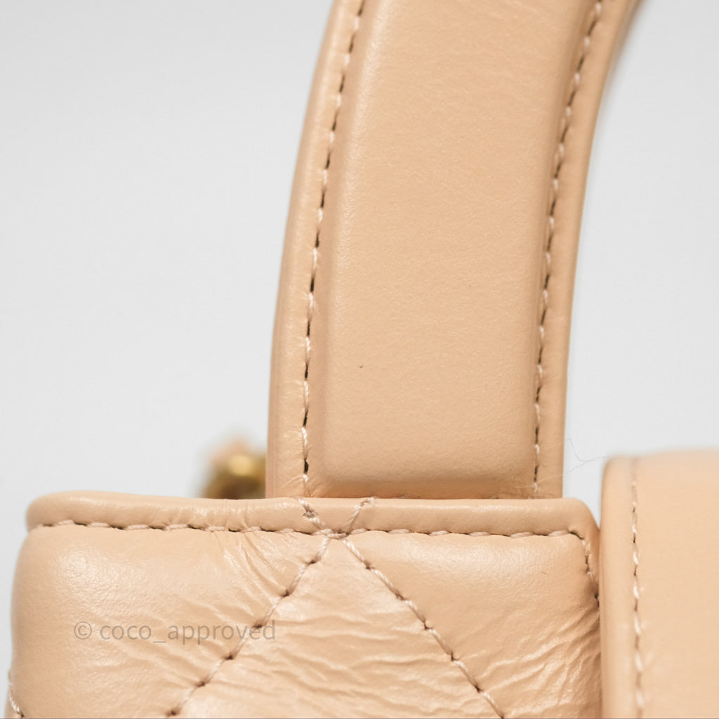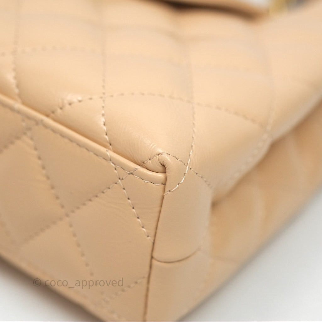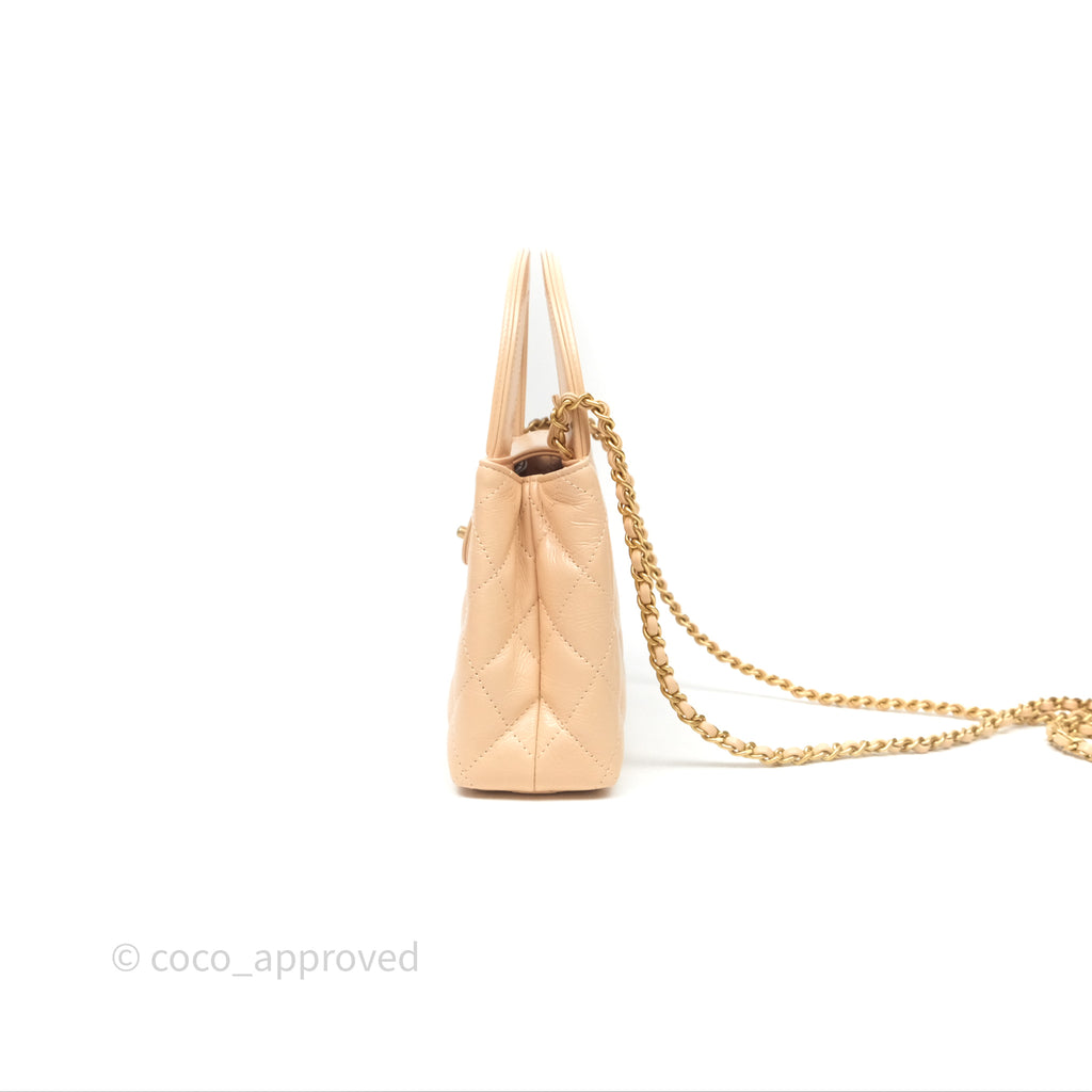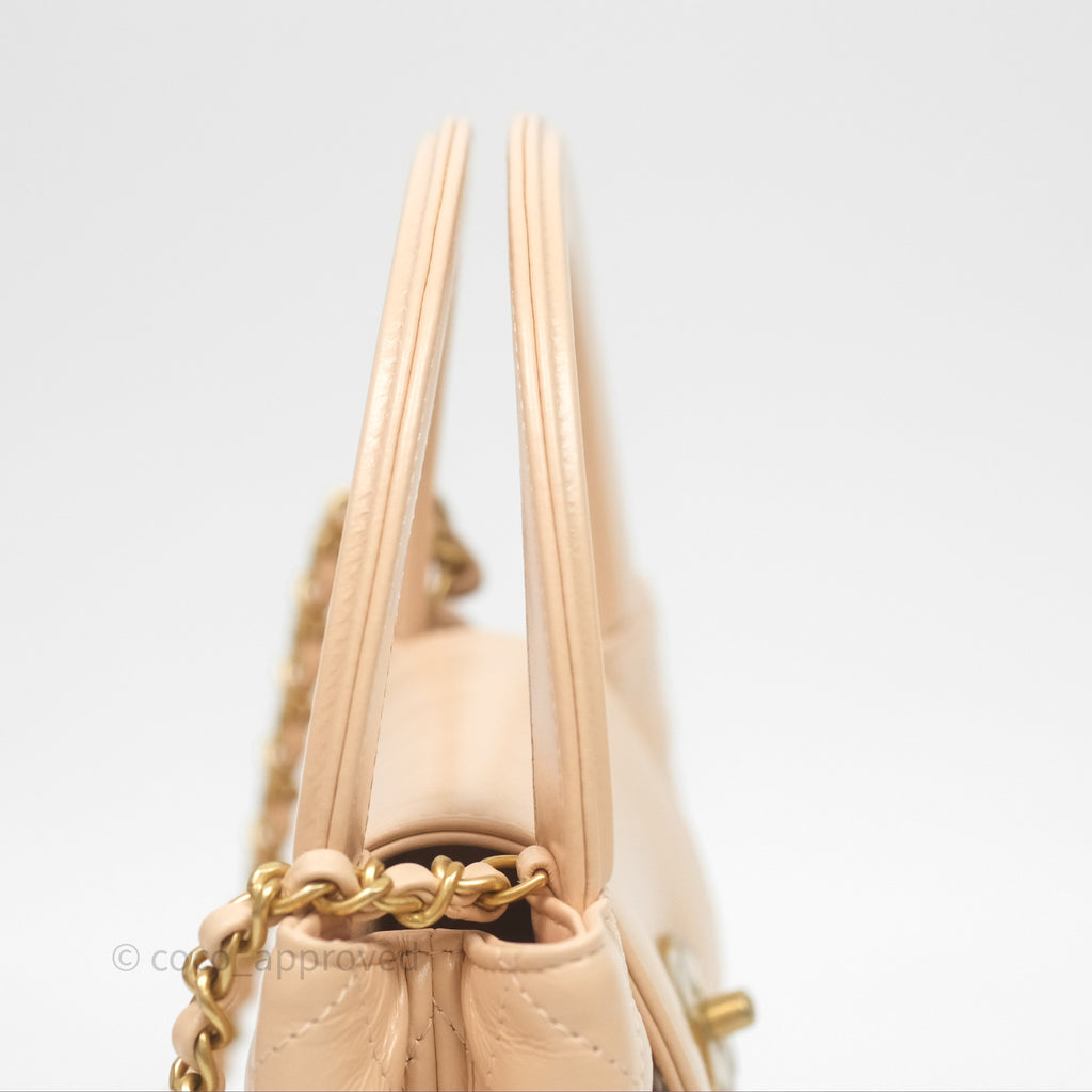 Chanel Kelly Bag Quilted Light Beige Shiny Crumpled Calfskin Aged Gold Hardware