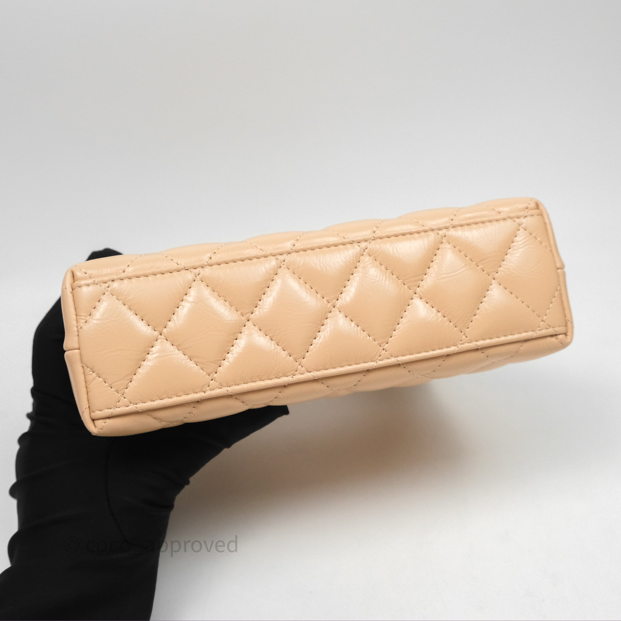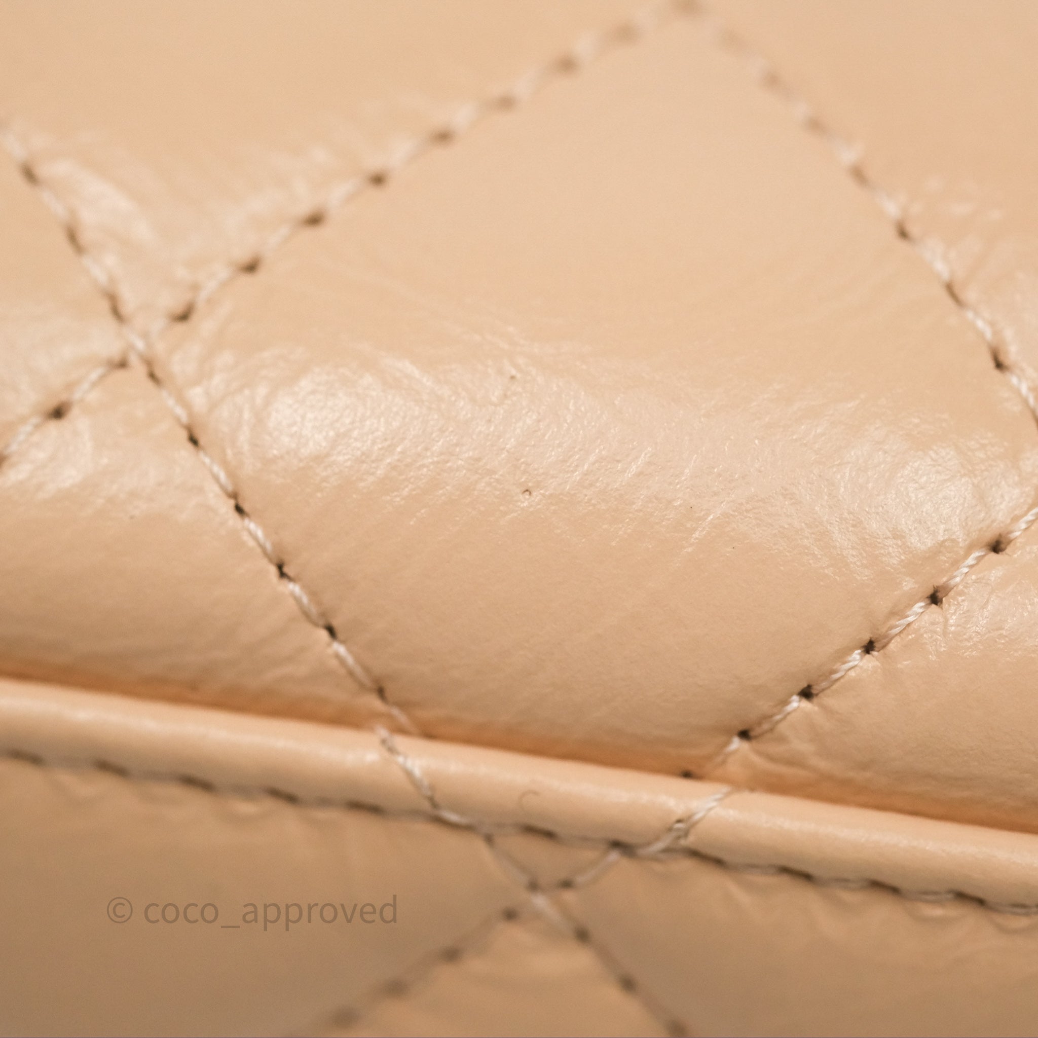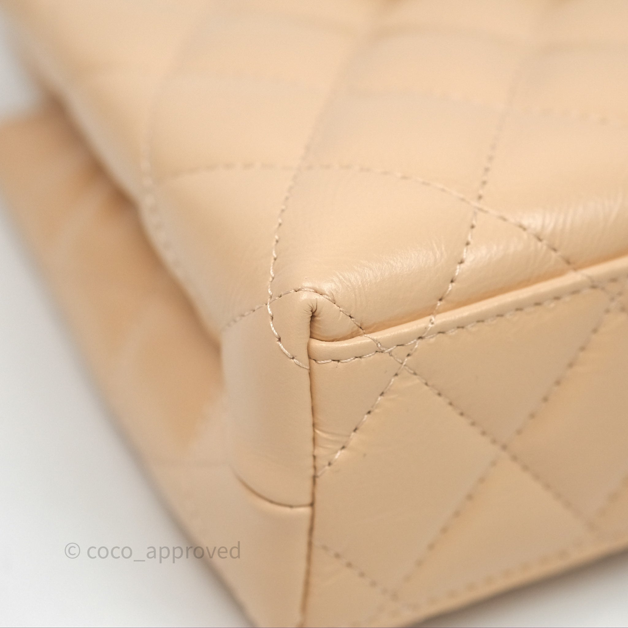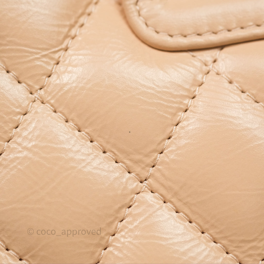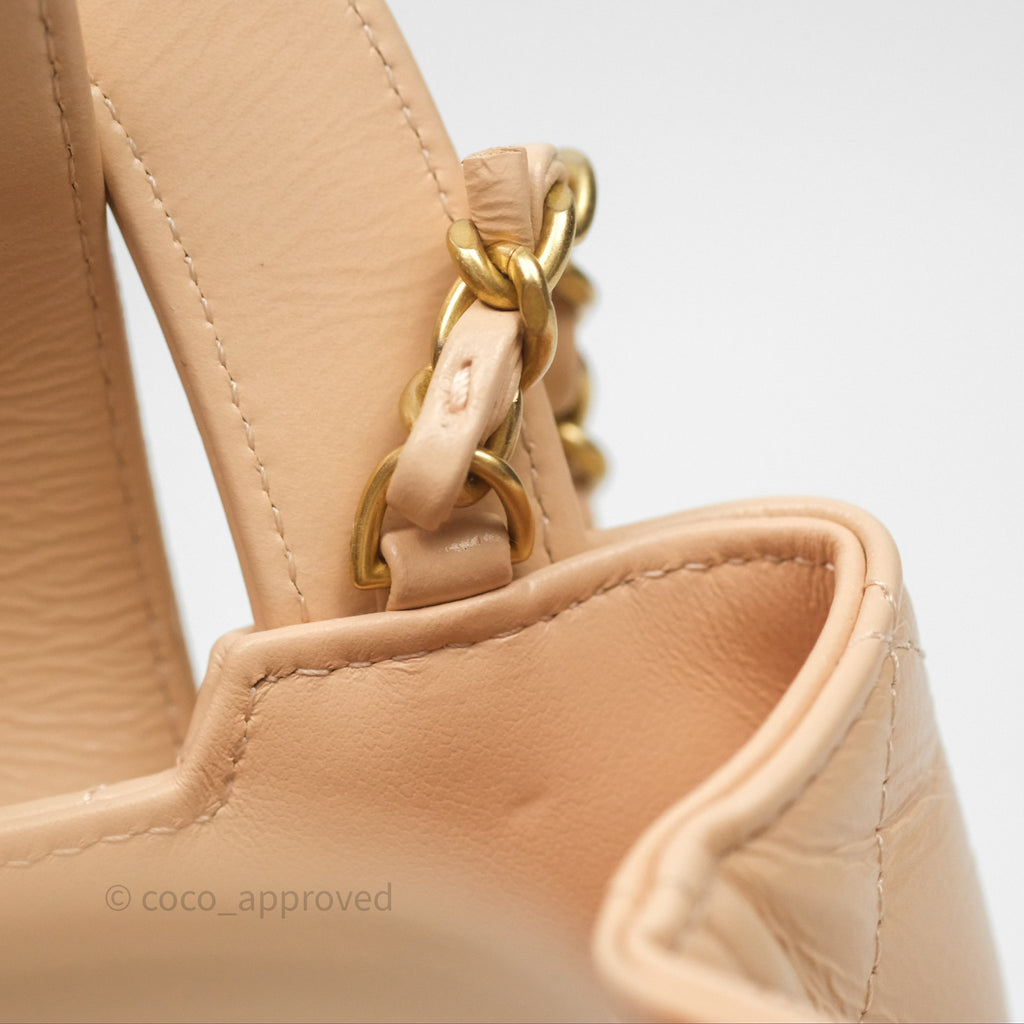 Chanel Kelly Bag Quilted Light Beige Shiny Crumpled Calfskin Aged Gold Hardware