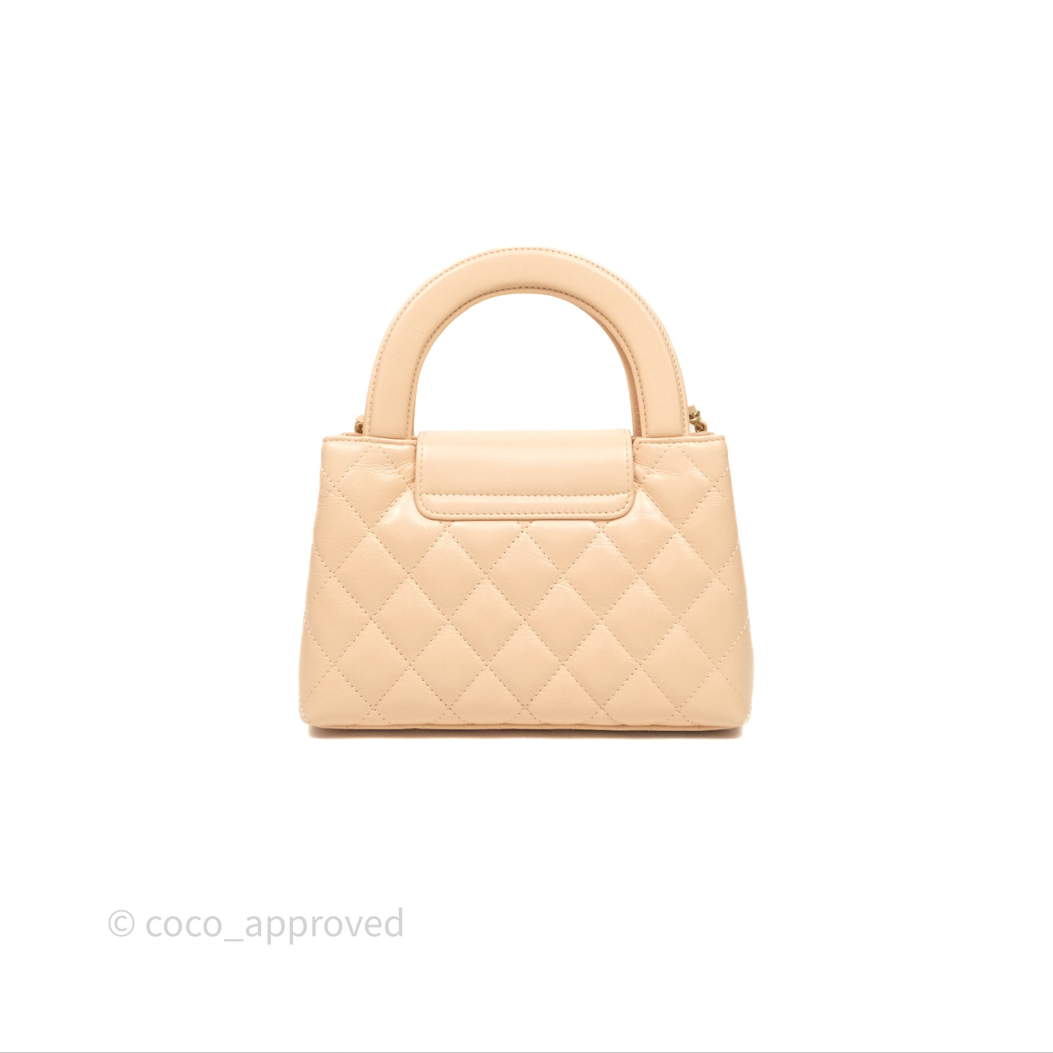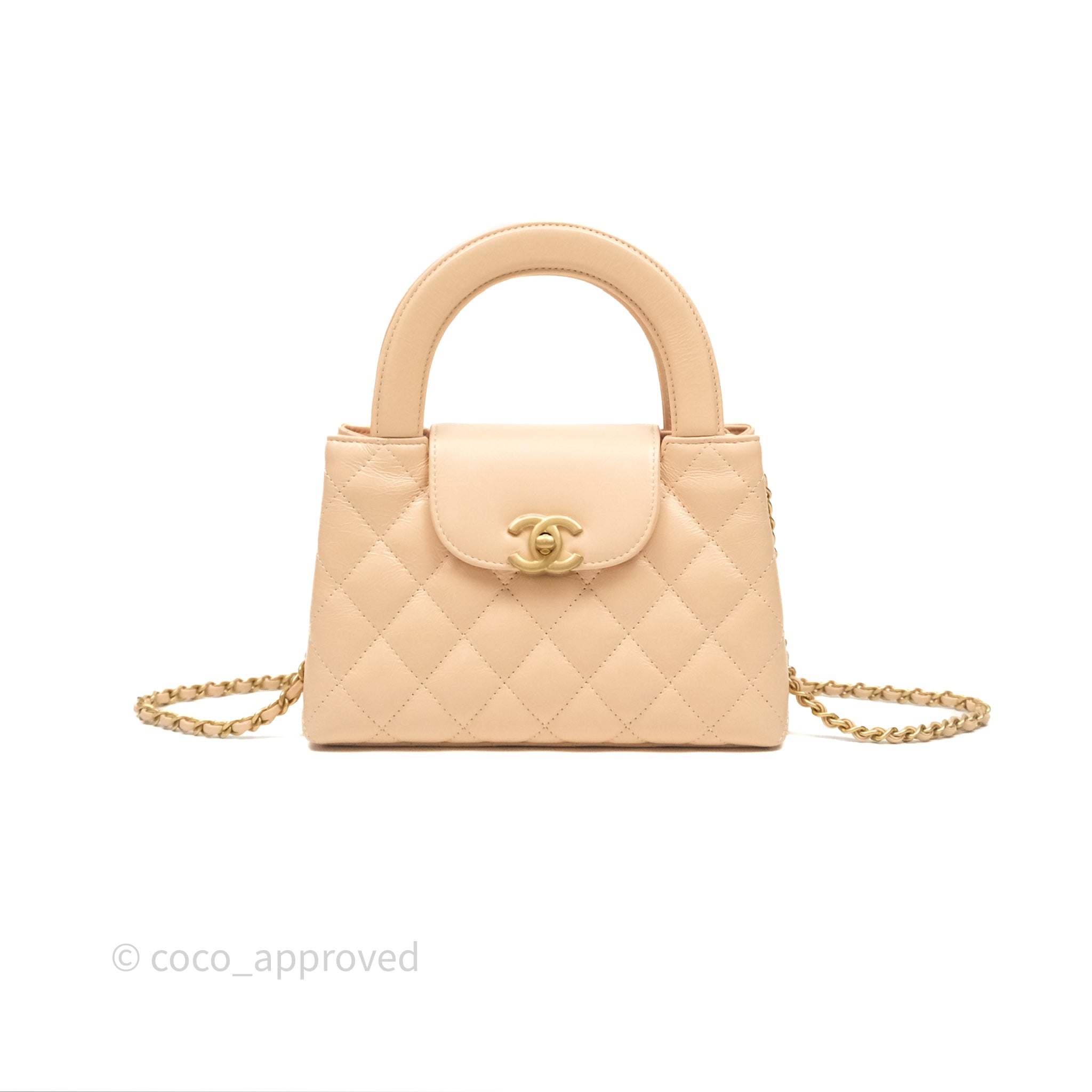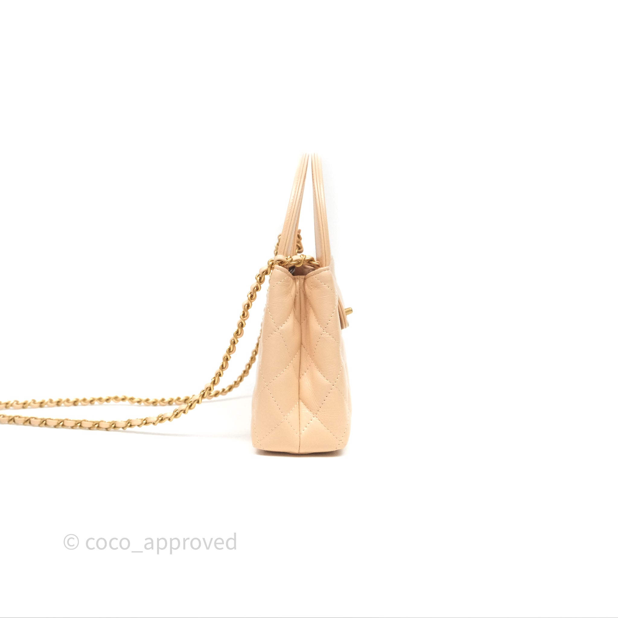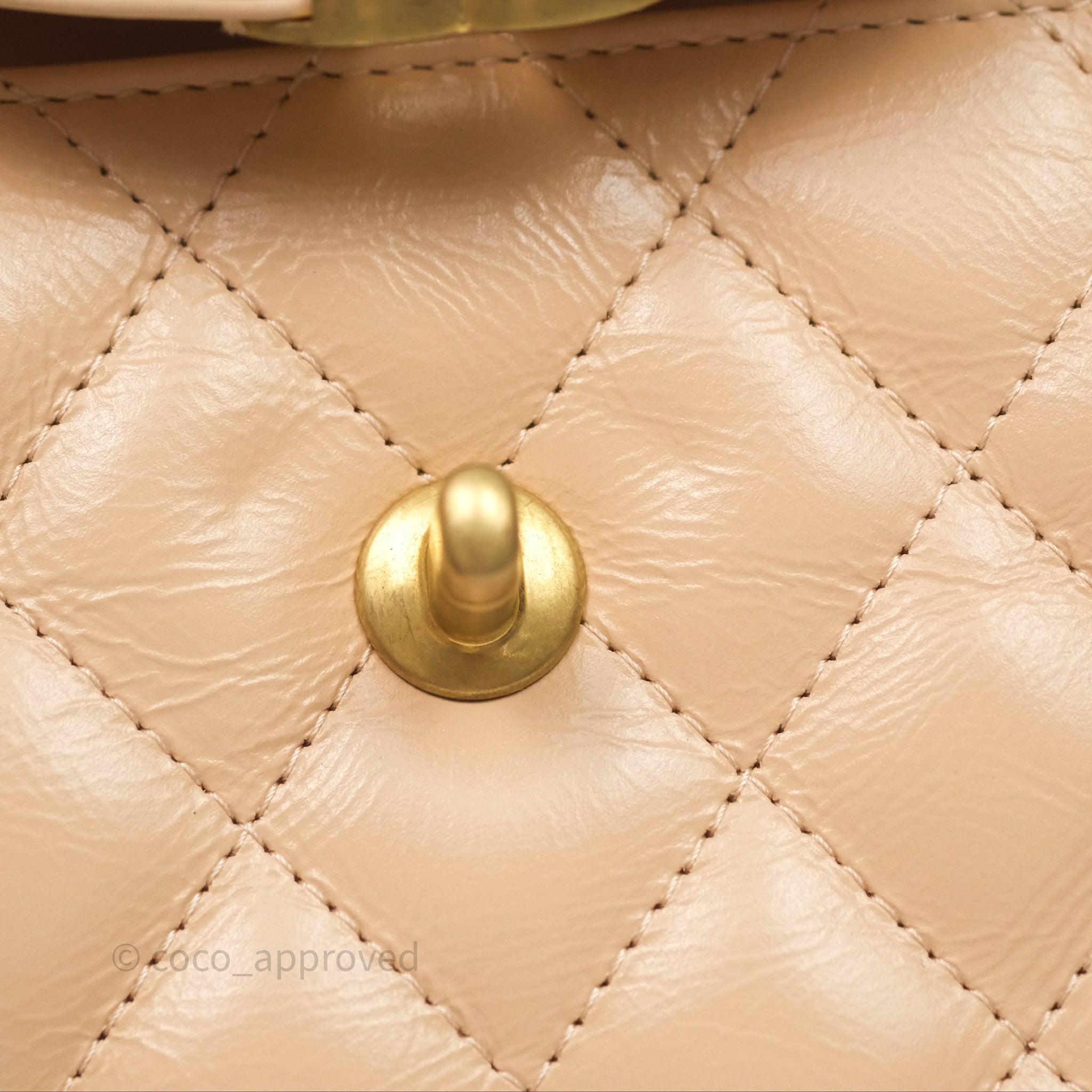 Chanel Kelly Bag Quilted Light Beige Shiny Crumpled Calfskin Aged Gold Hardware