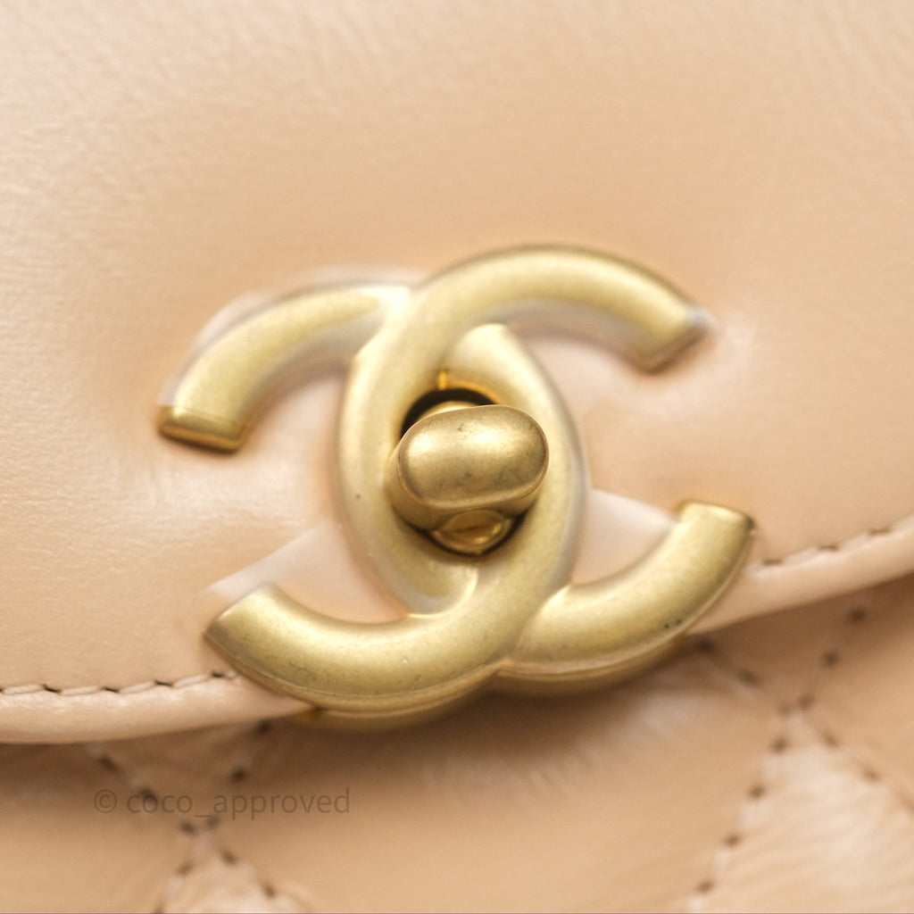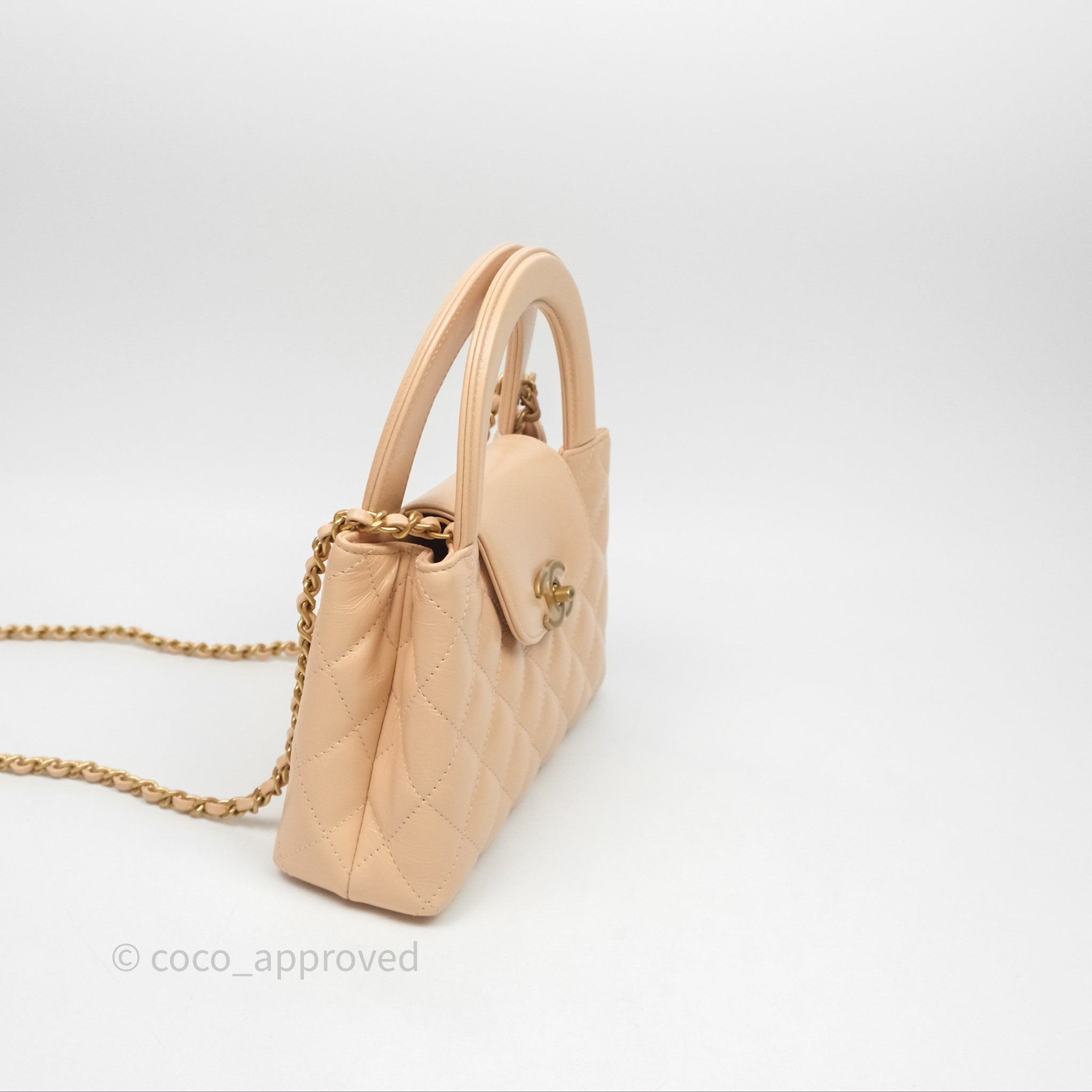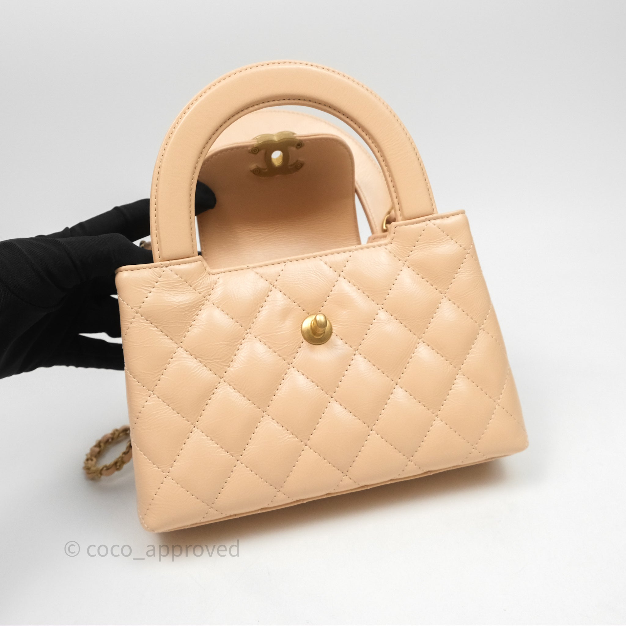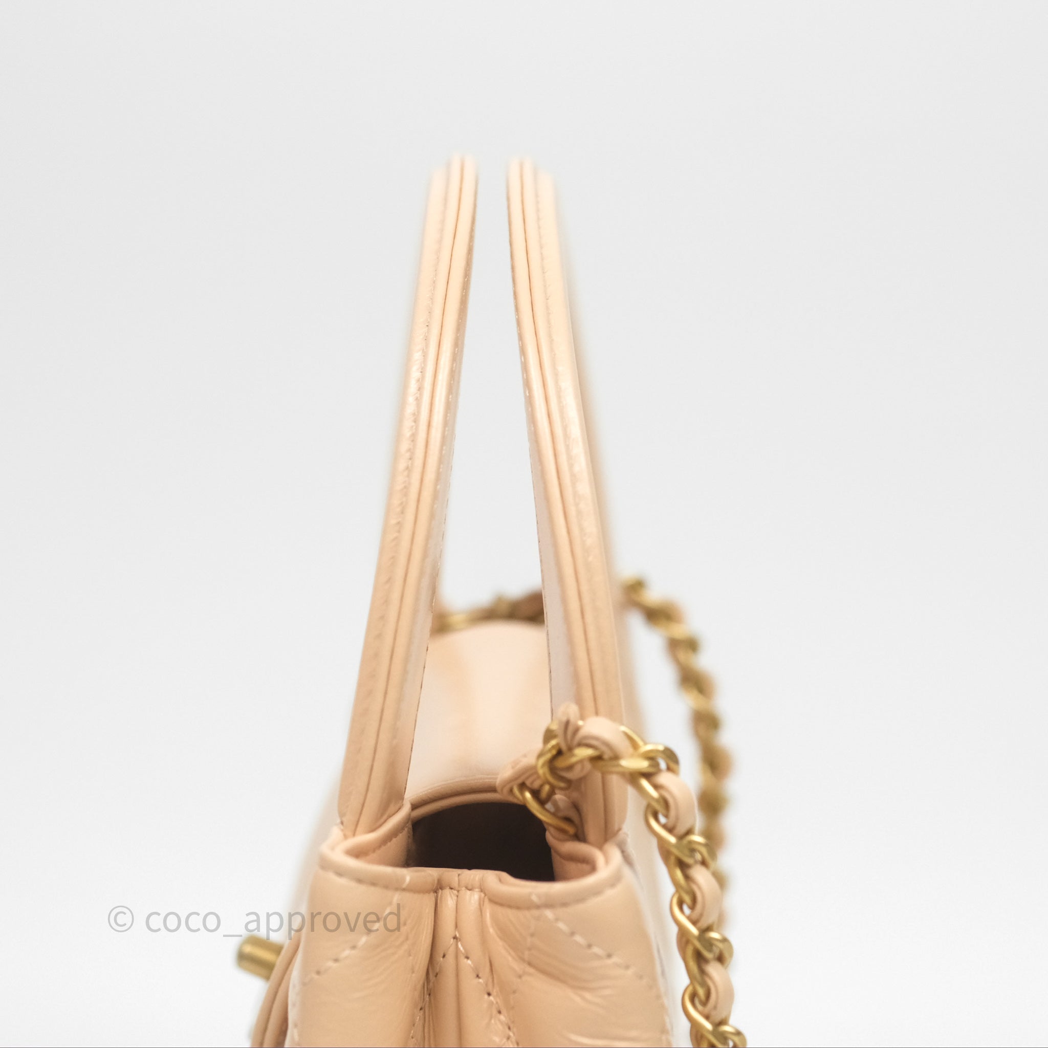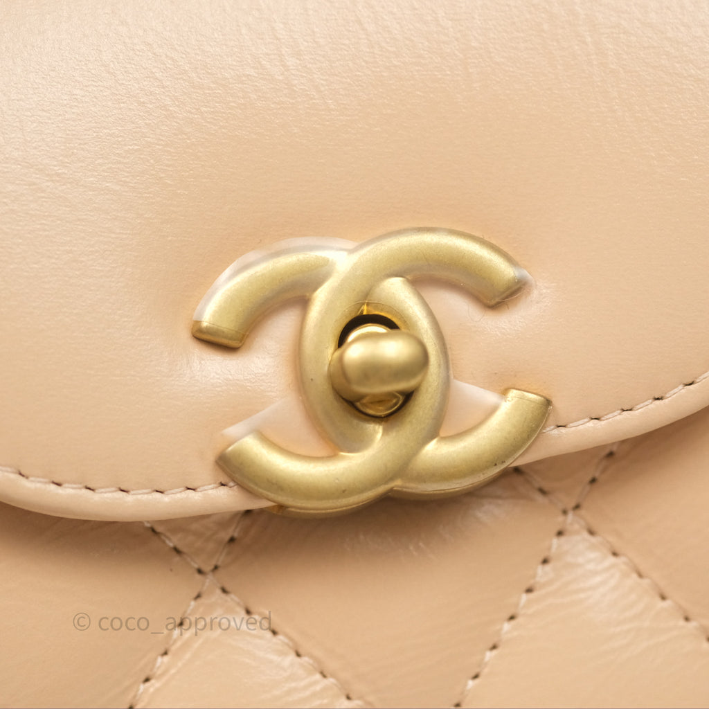 Chanel Kelly Bag Quilted Light Beige Shiny Crumpled Calfskin Aged Gold Hardware