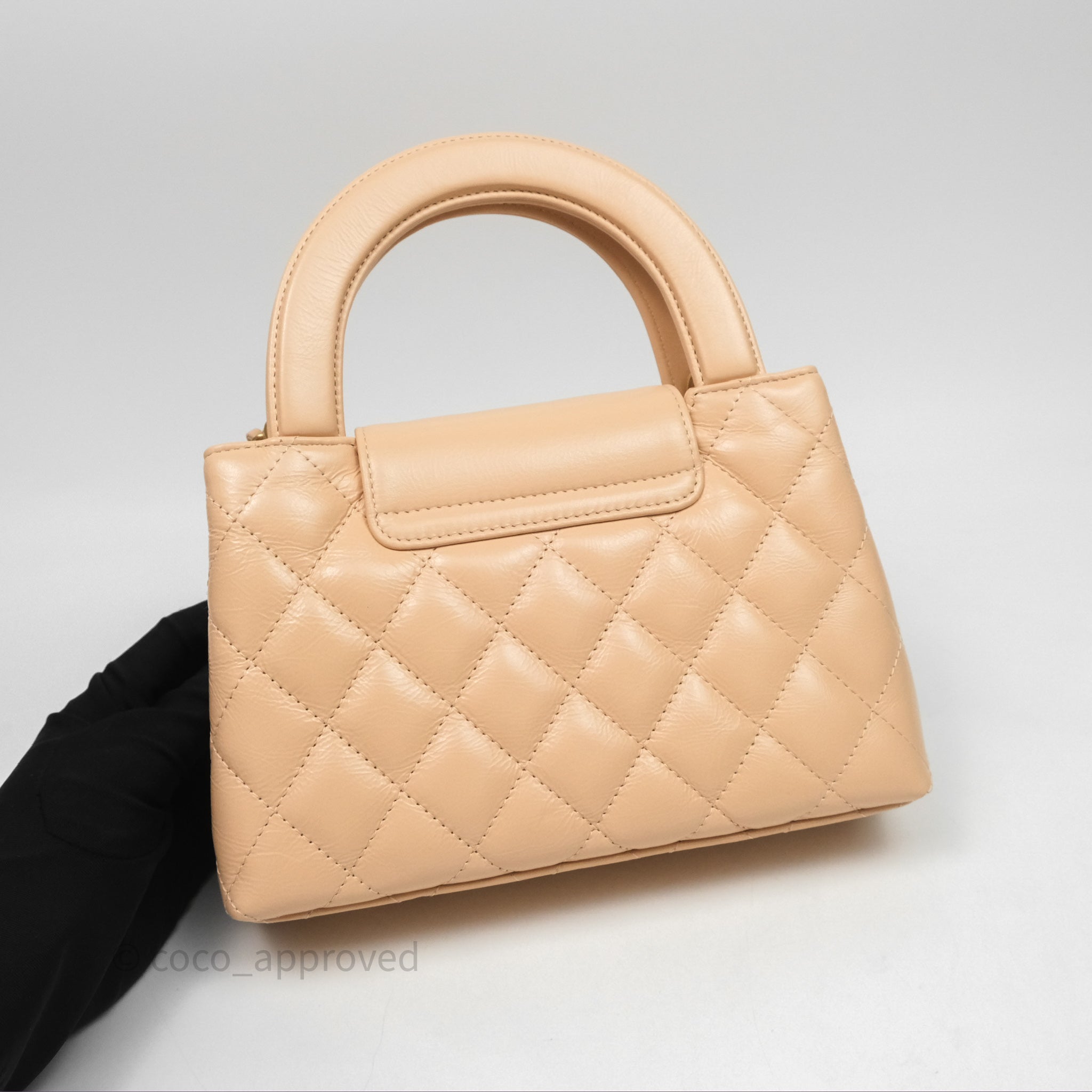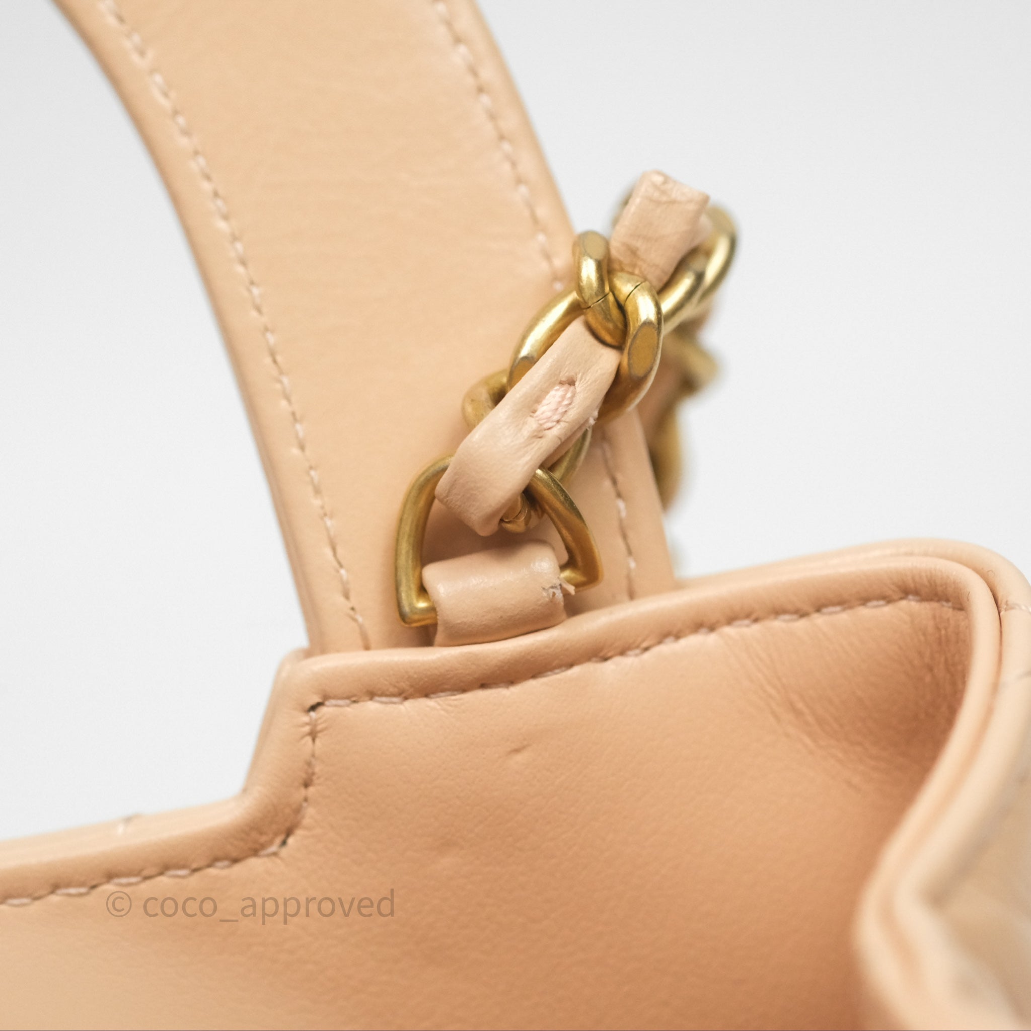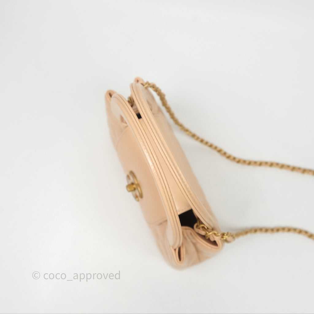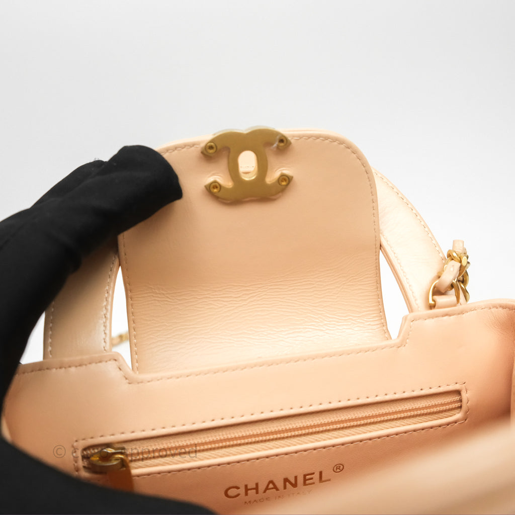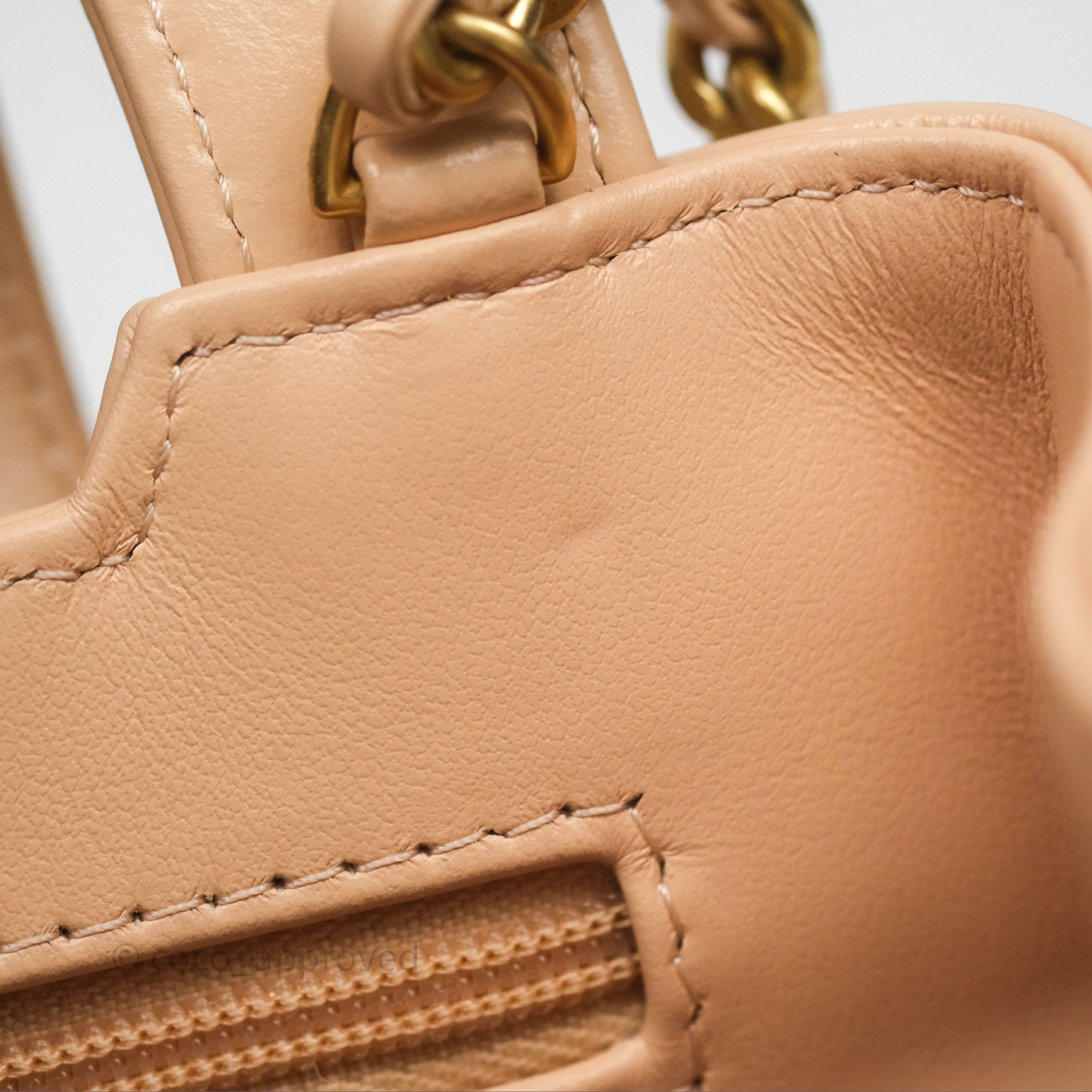 Chanel Kelly Bag Quilted Light Beige Shiny Crumpled Calfskin Aged Gold Hardware