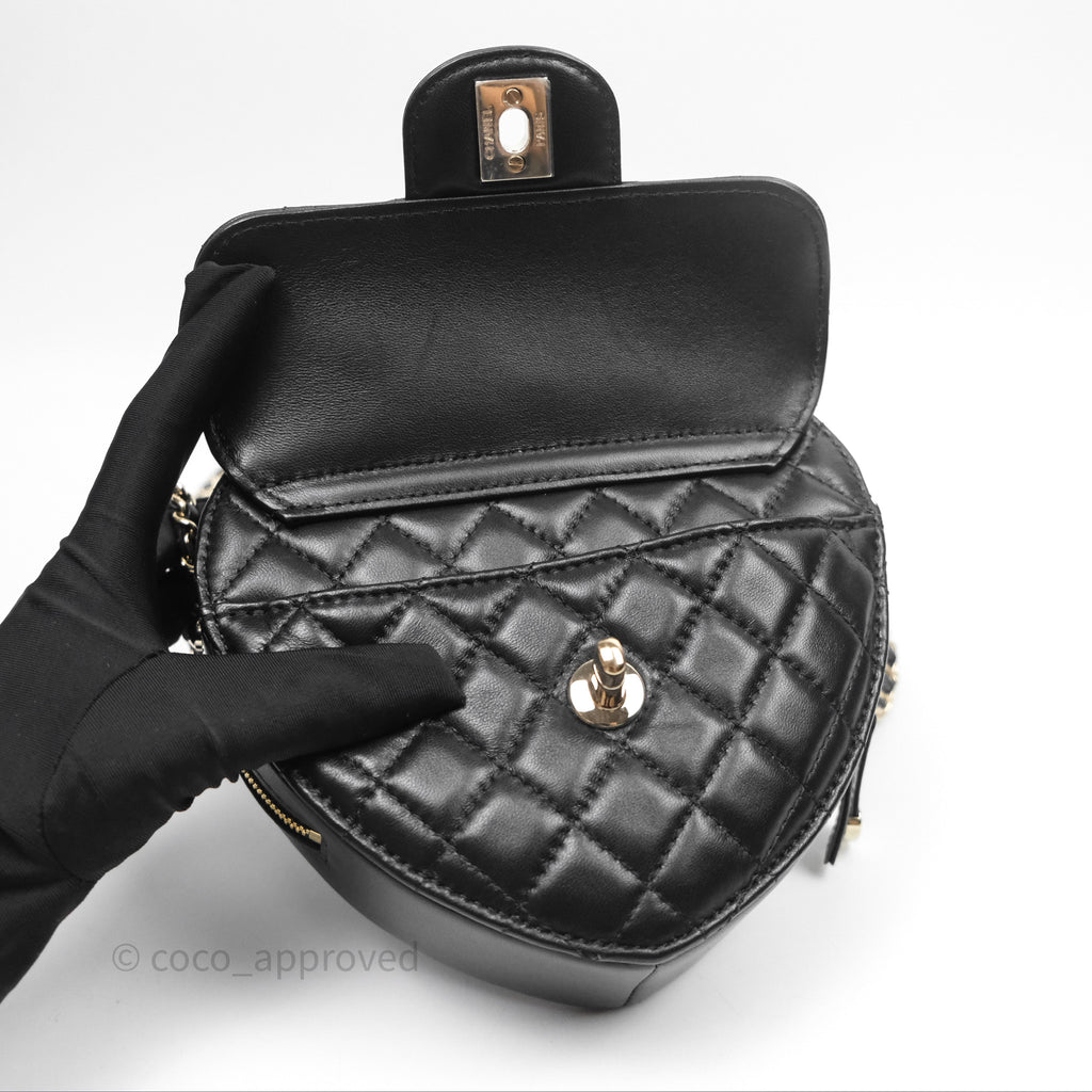 Chanel Large Heart Bag Black Lambskin Gold Hardware 22S