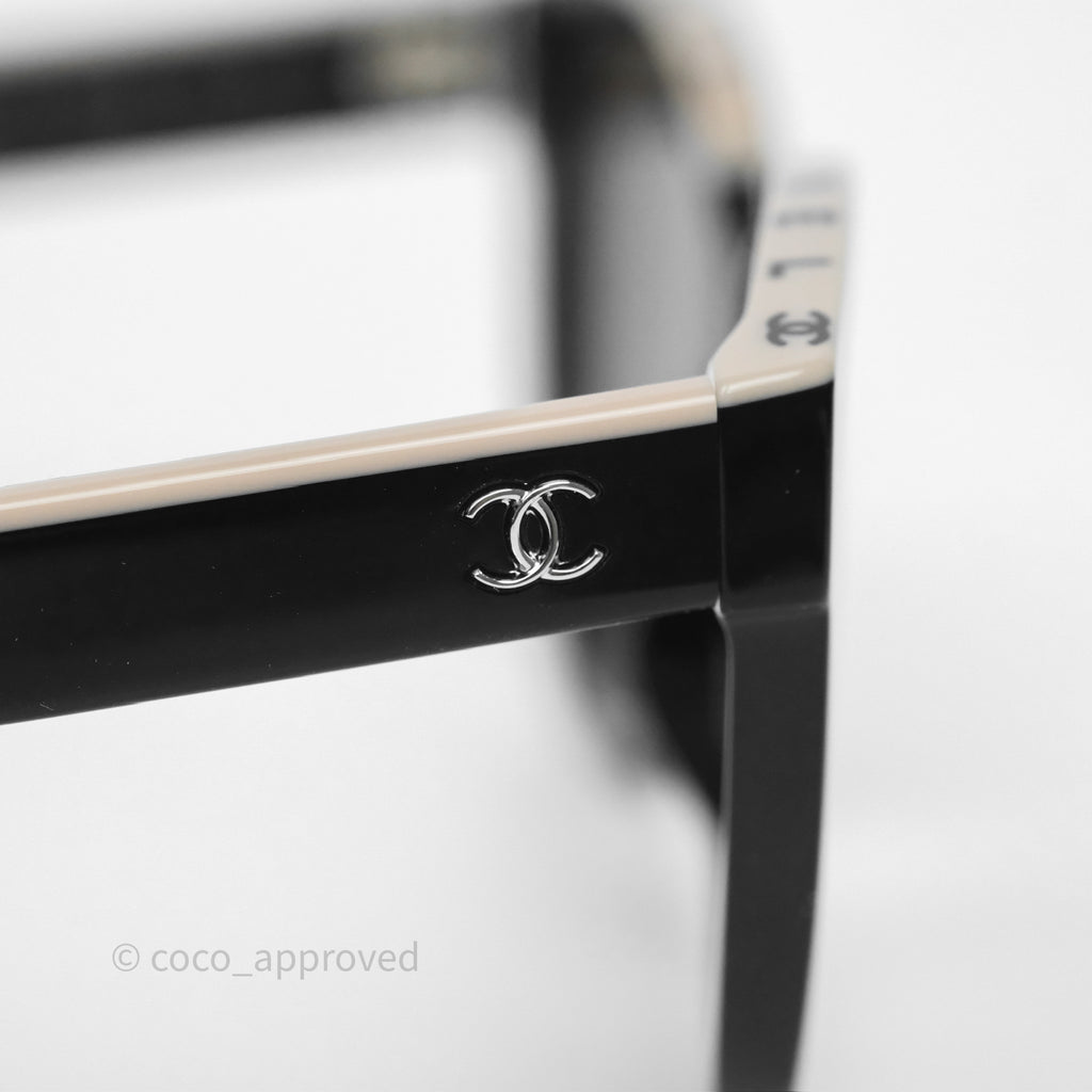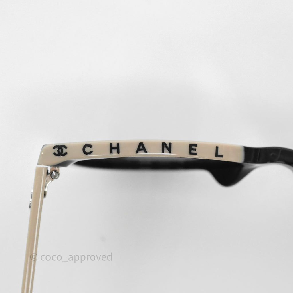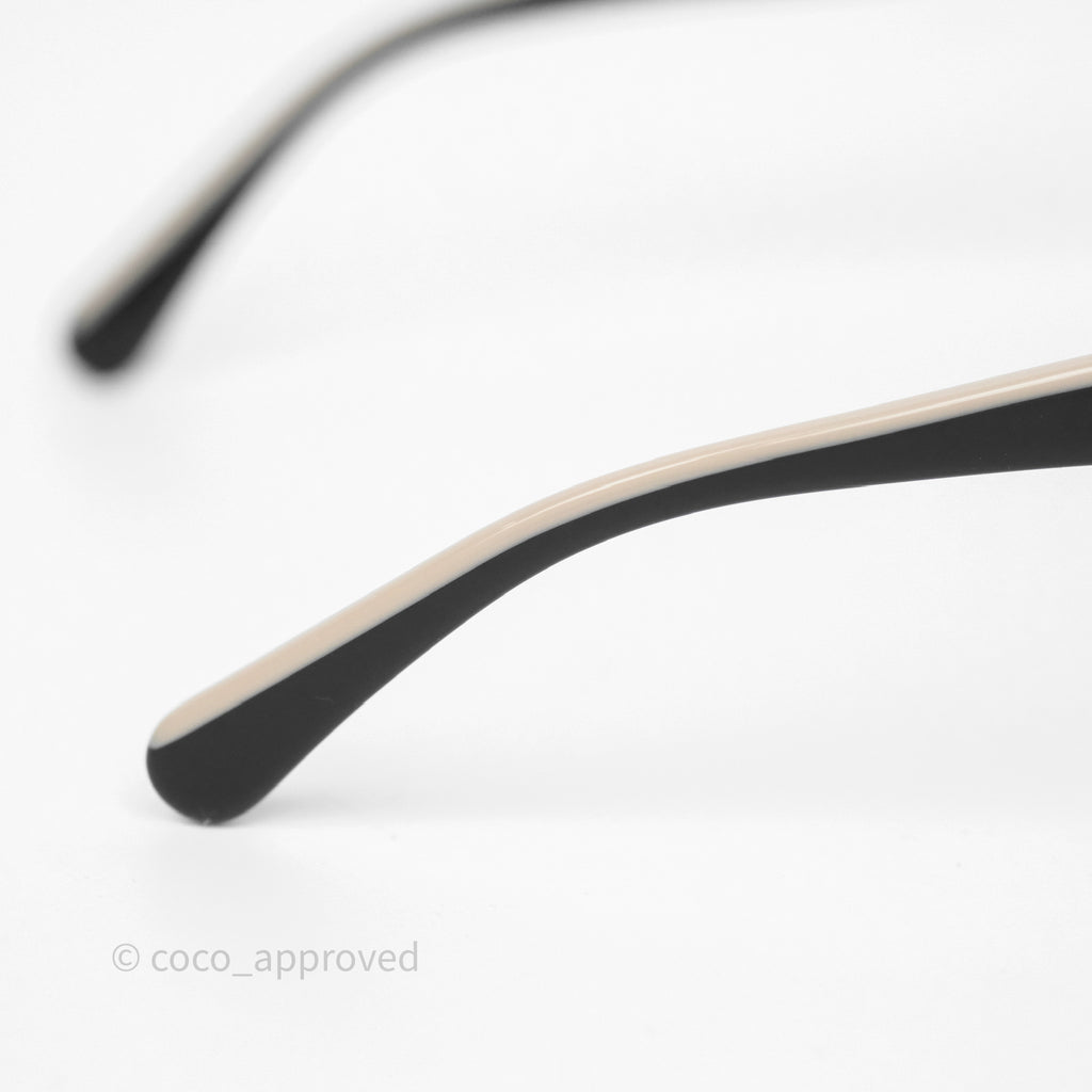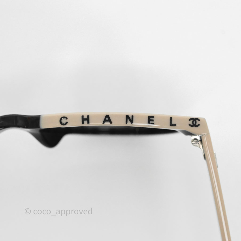 Chanel Logo Butterfly Sunglasses Black Beige Acetate