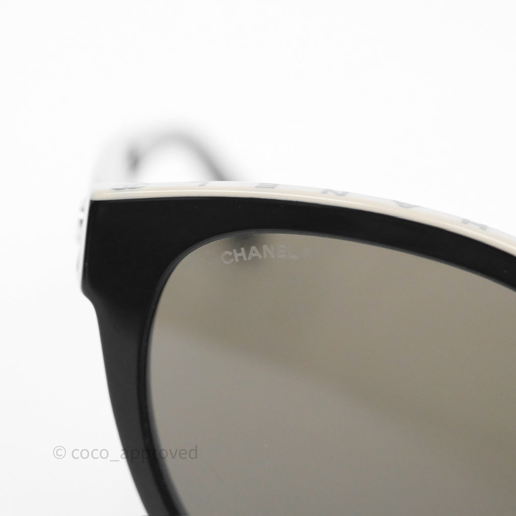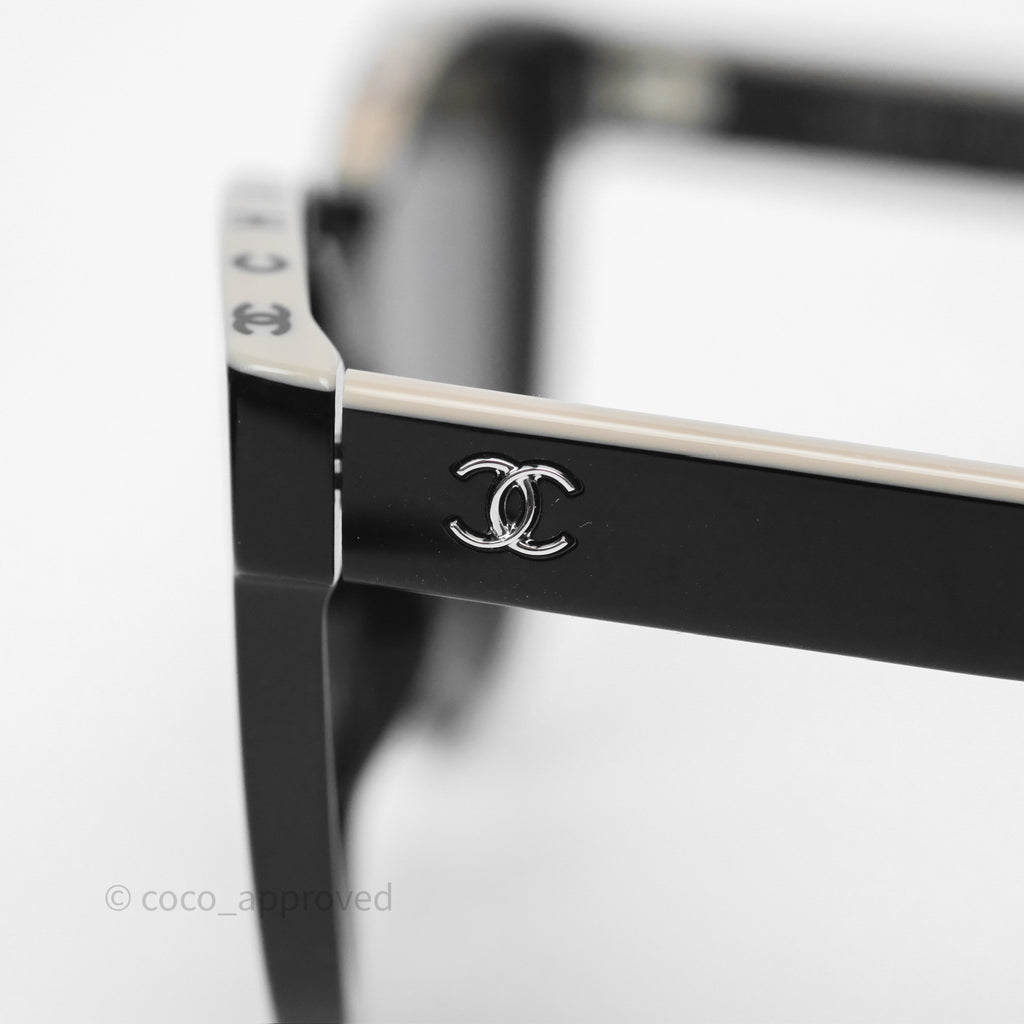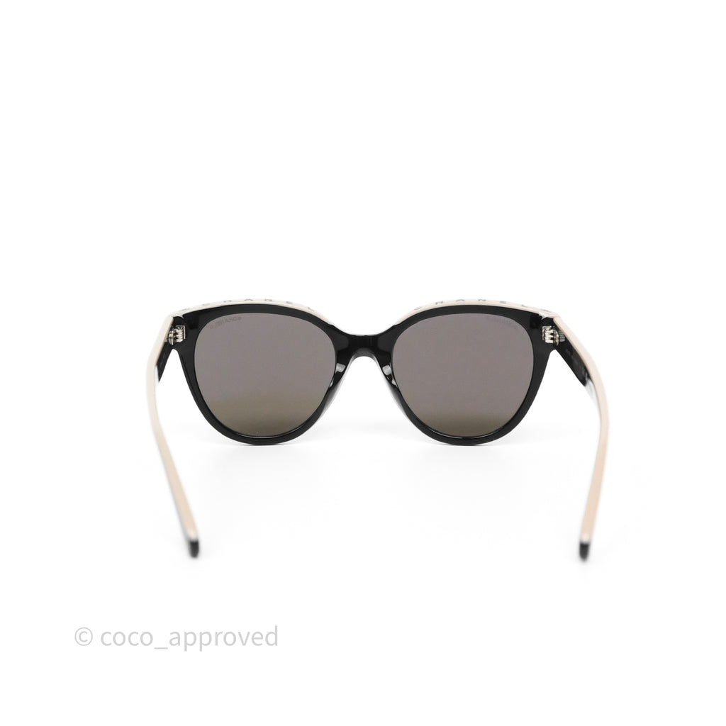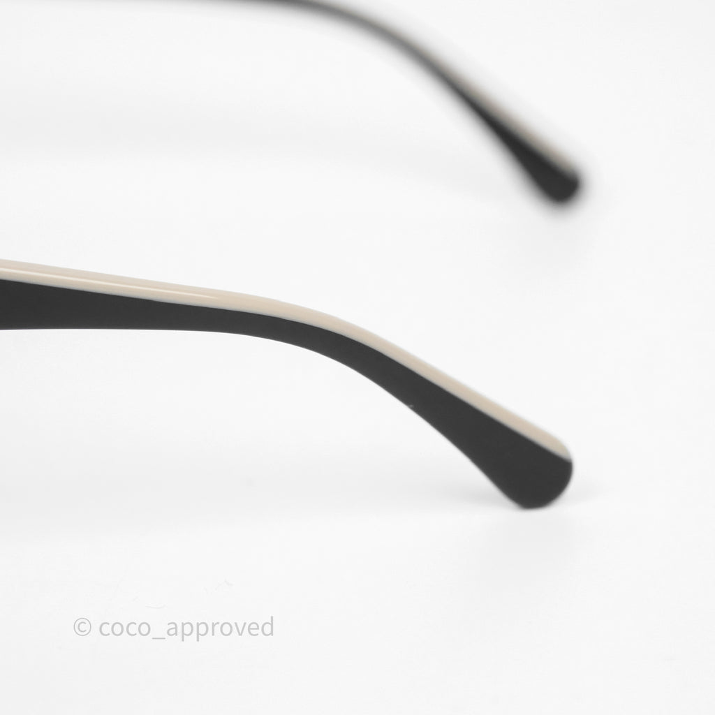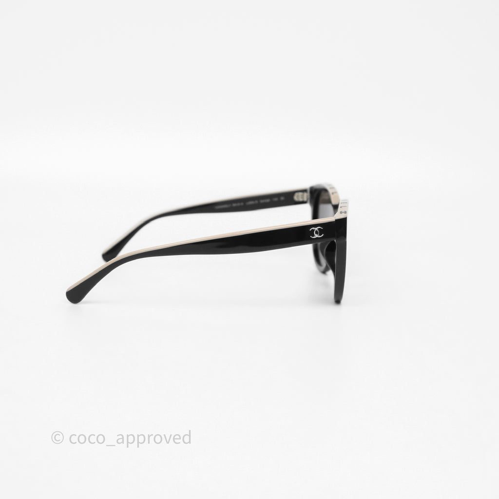 Chanel Logo Butterfly Sunglasses Black Beige Acetate