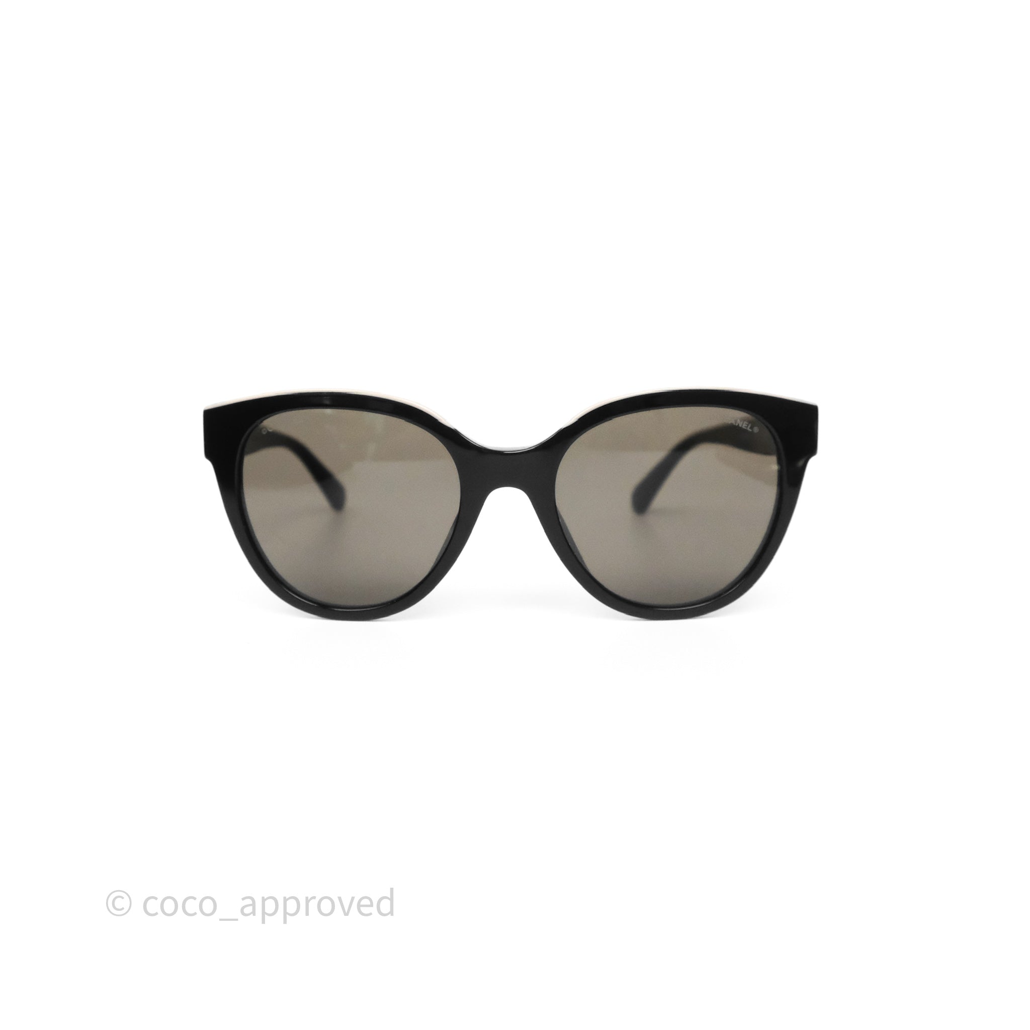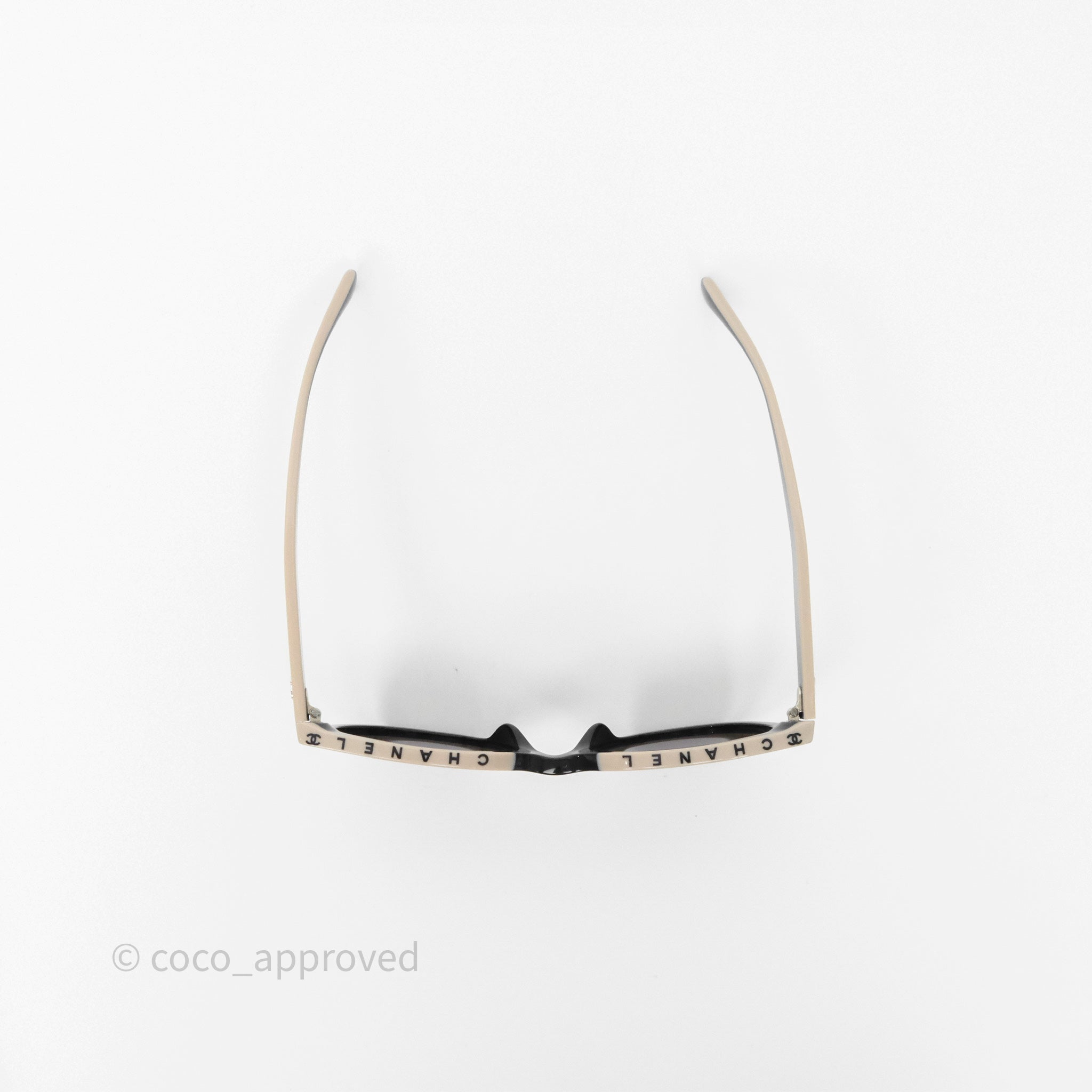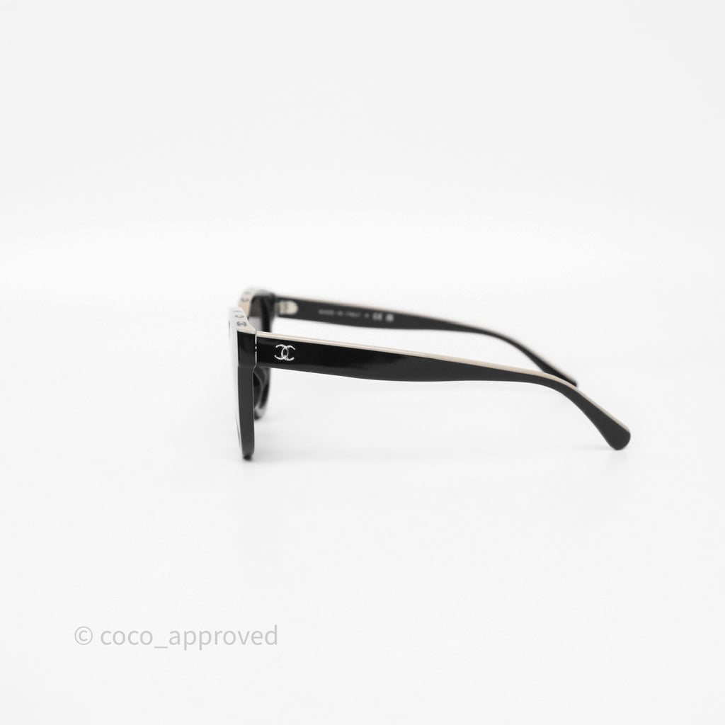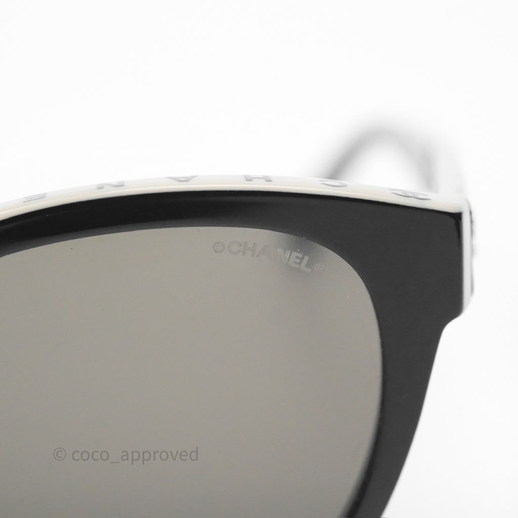 Chanel Logo Butterfly Sunglasses Black Beige Acetate