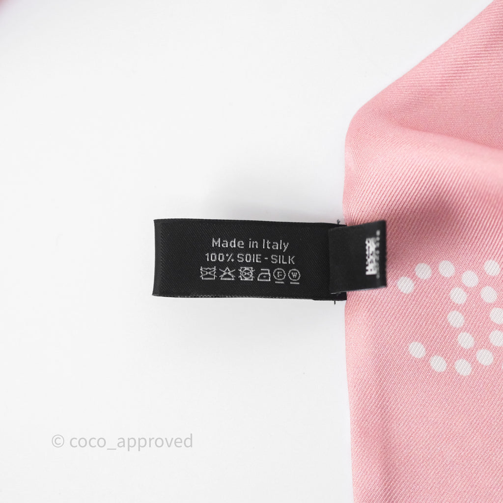 Chanel Logo Polka Dot Silk Twilly Pink White