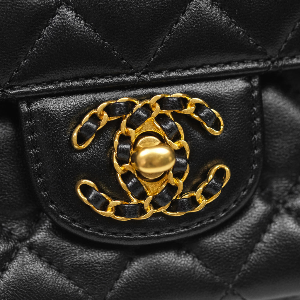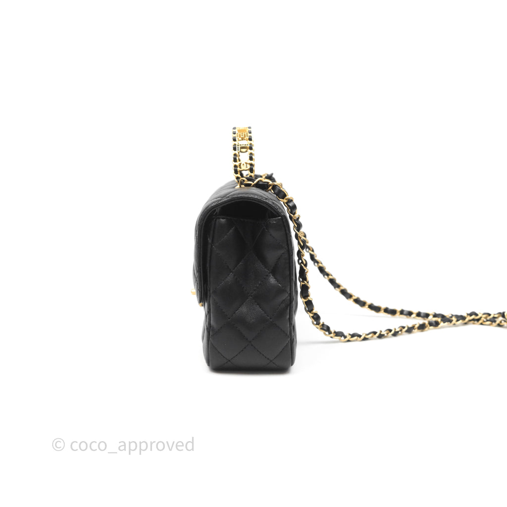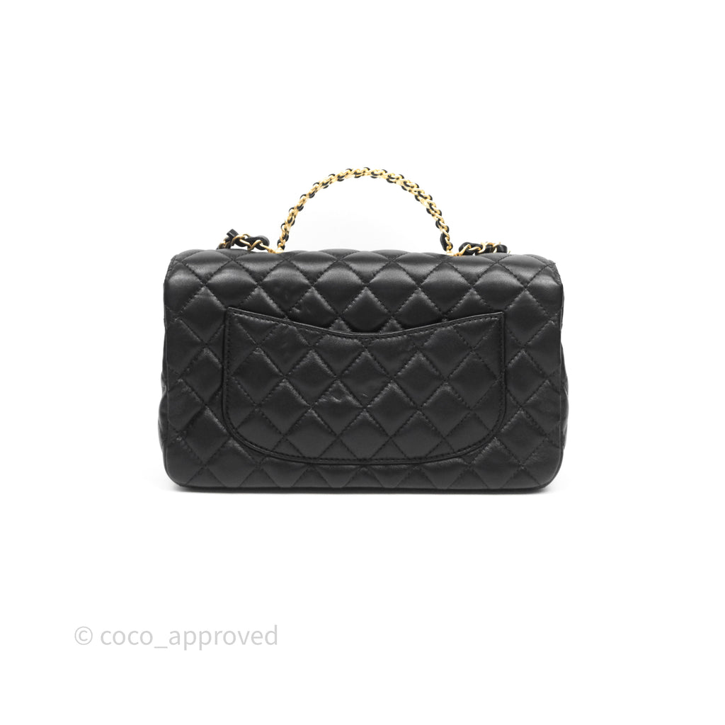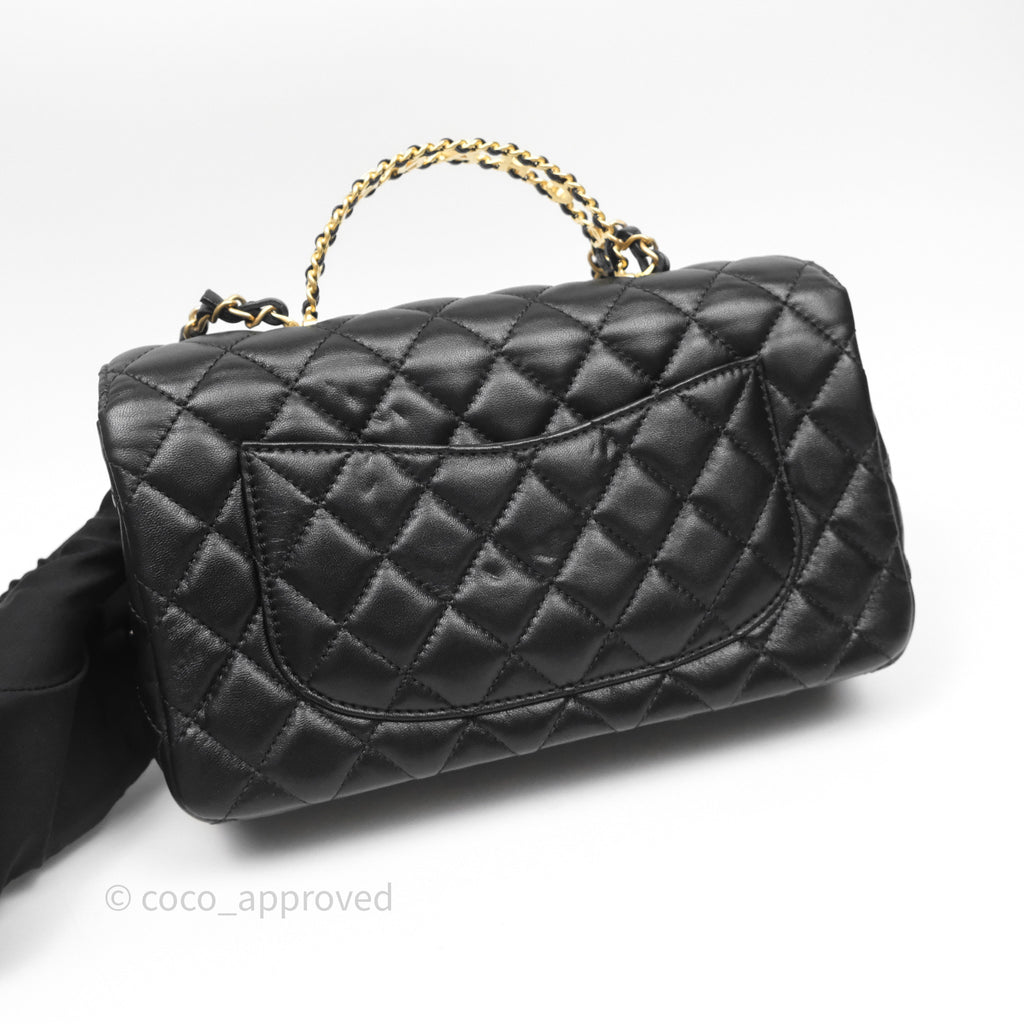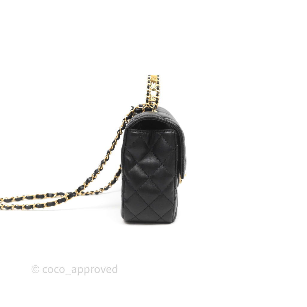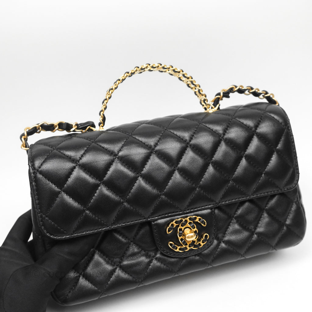 Chanel Logo Top Handle Small Flap Bag Black Lambskin Gold Hardware 24C