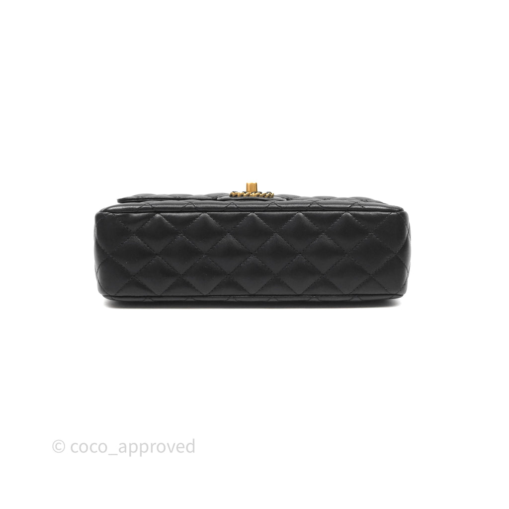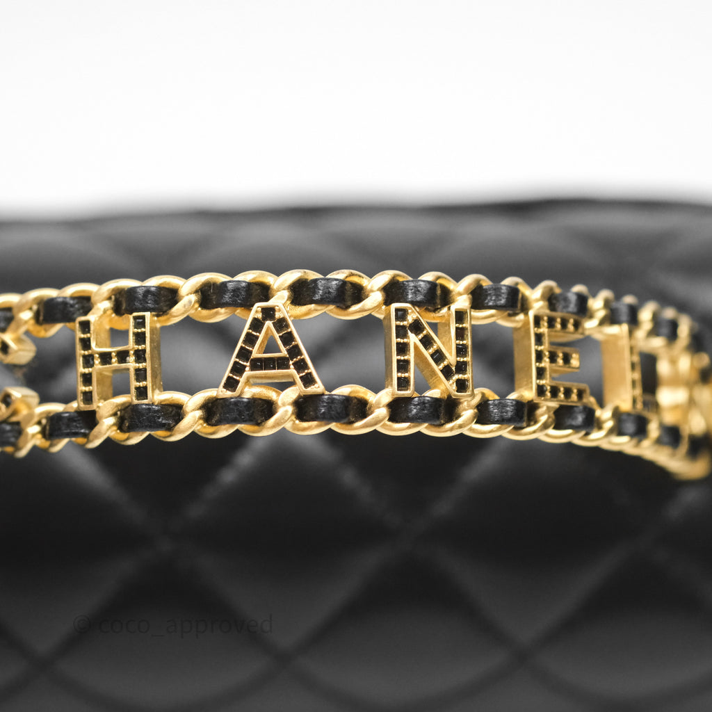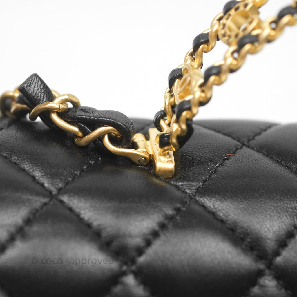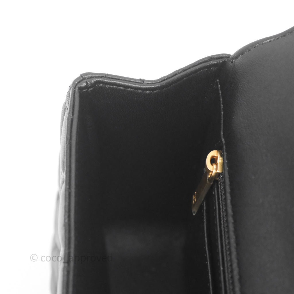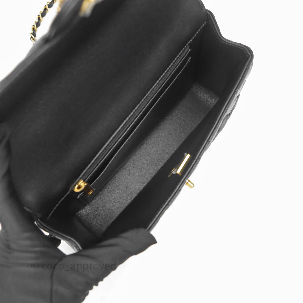 Chanel Logo Top Handle Small Flap Bag Black Lambskin Gold Hardware 24C