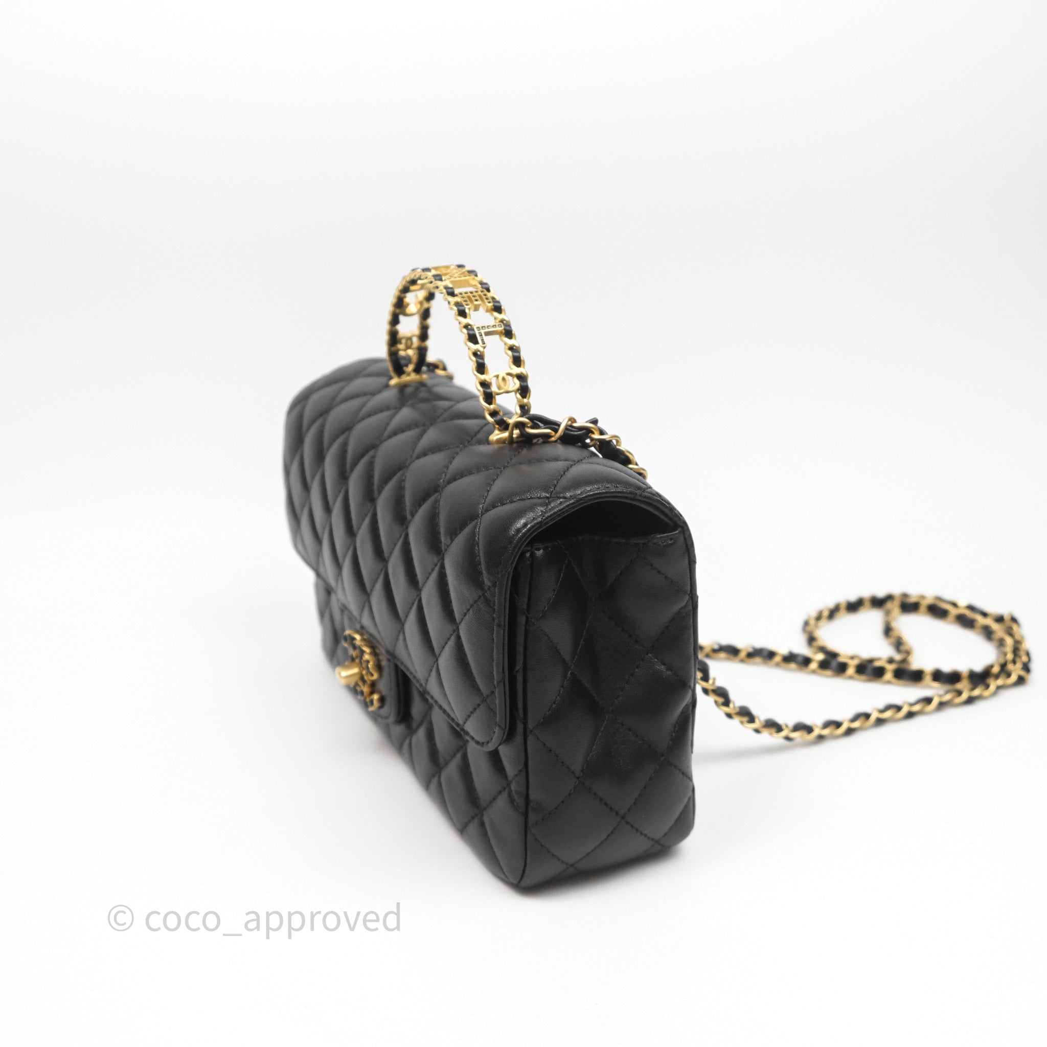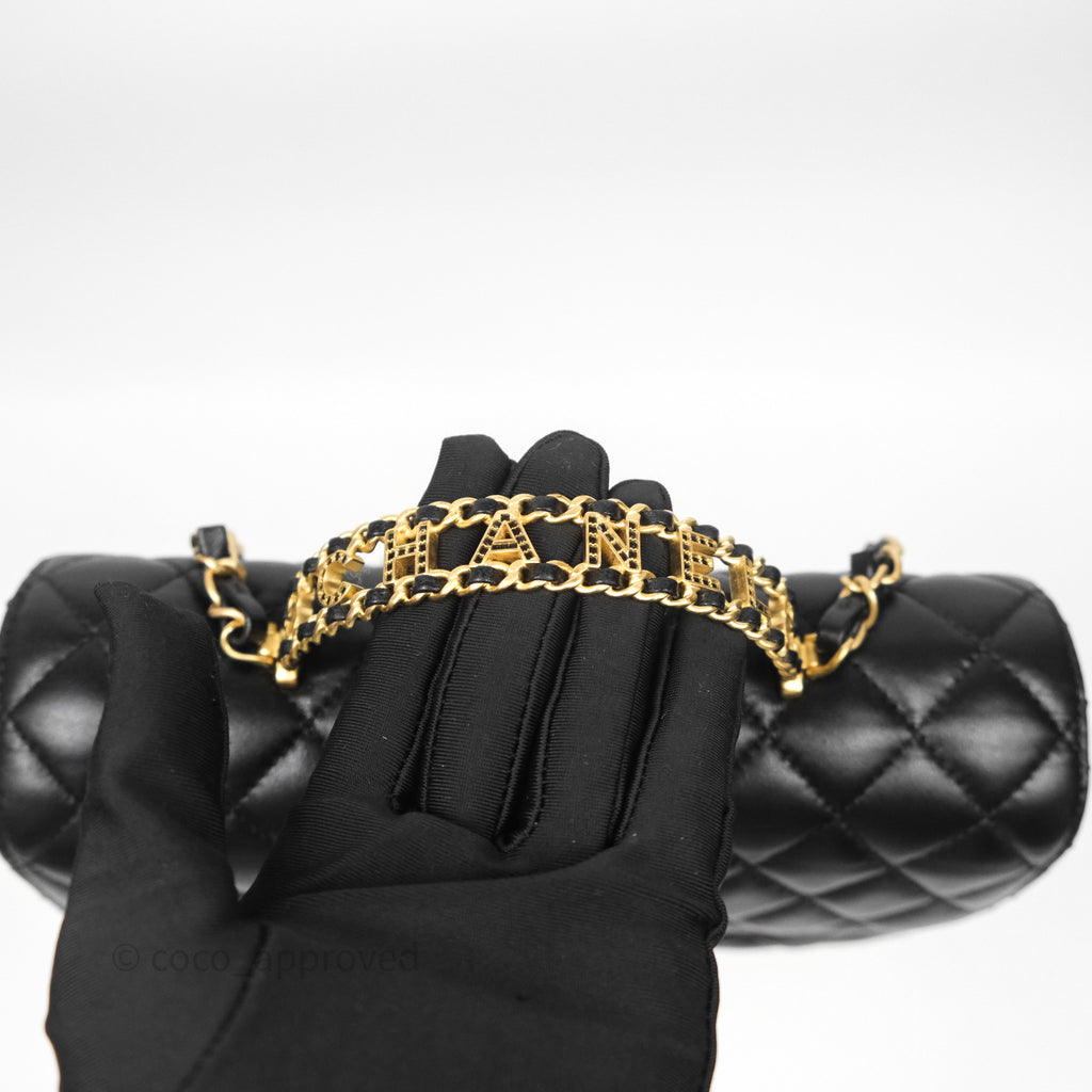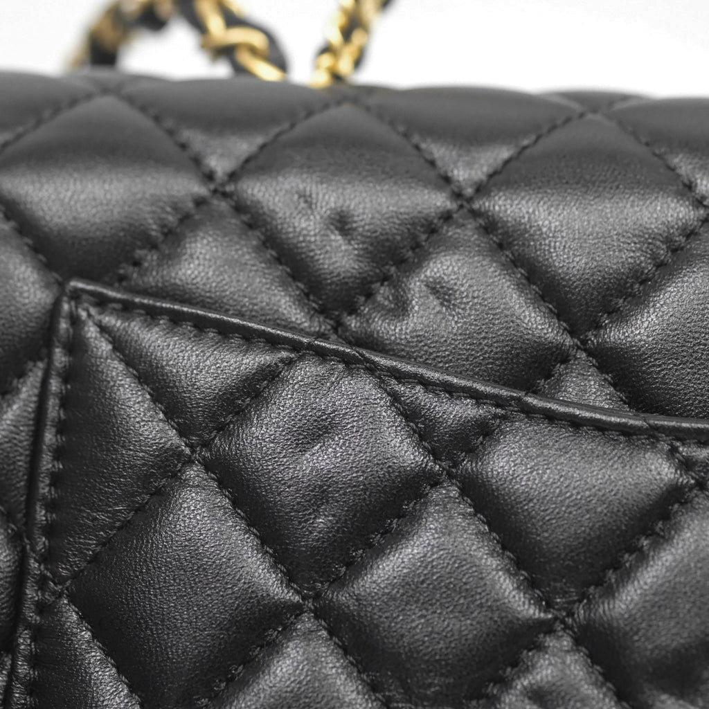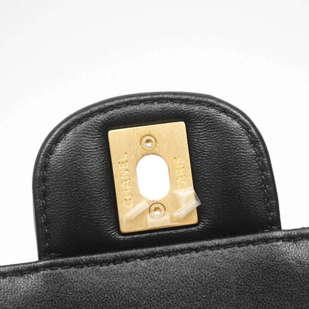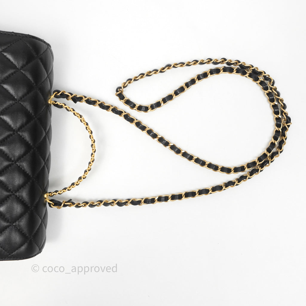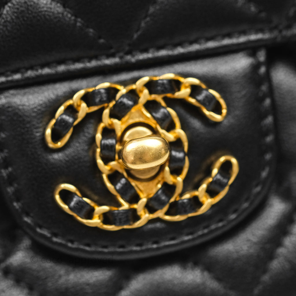 Chanel Logo Top Handle Small Flap Bag Black Lambskin Gold Hardware 24C