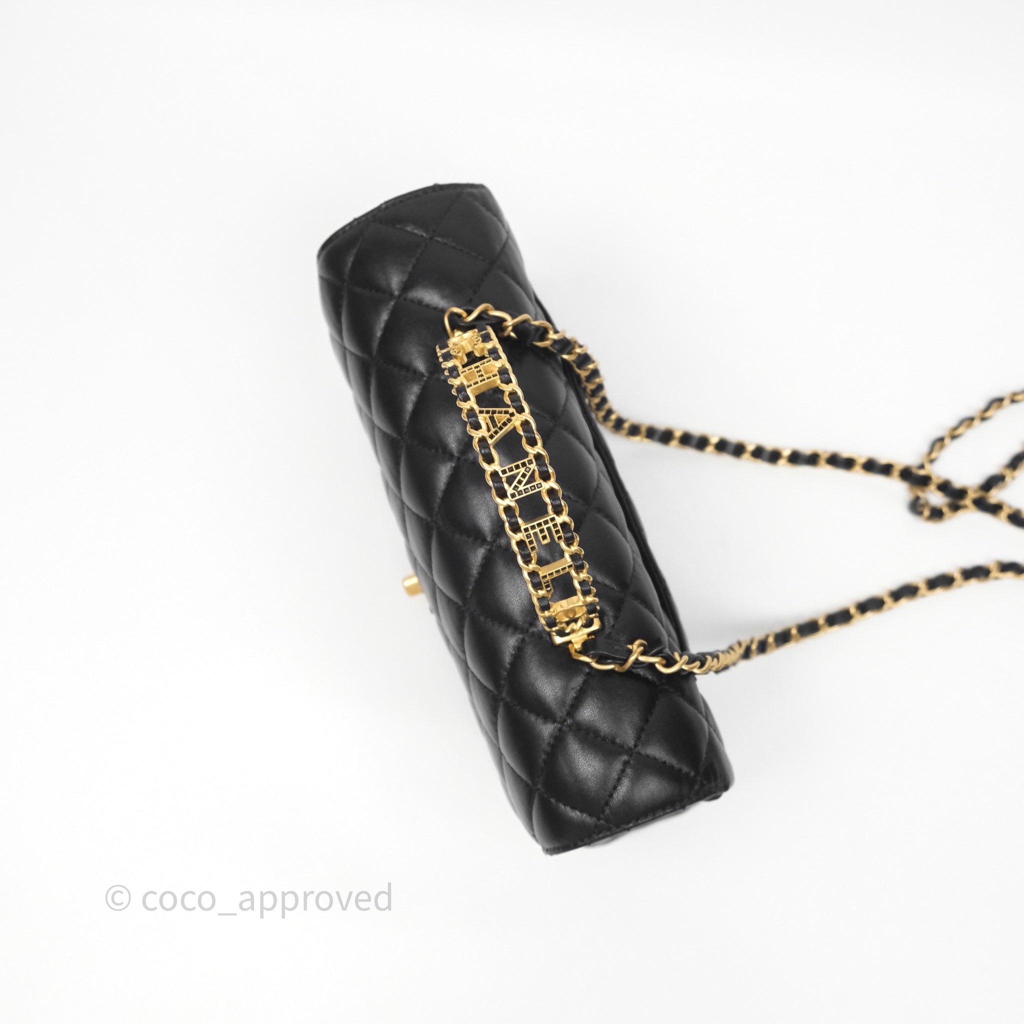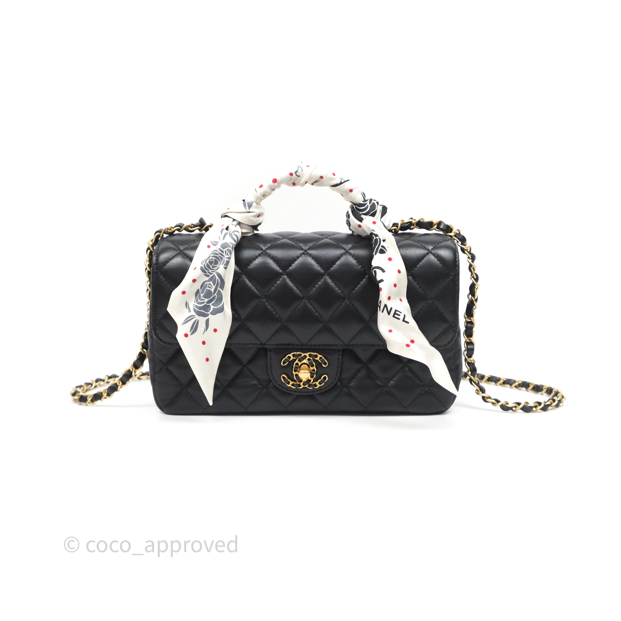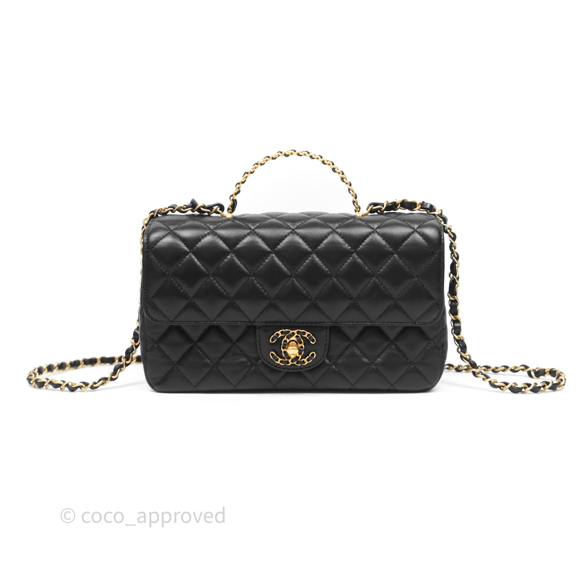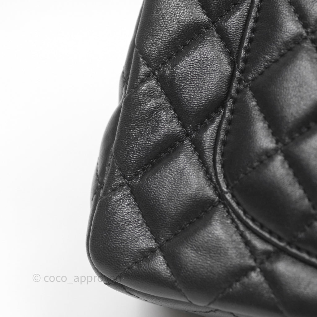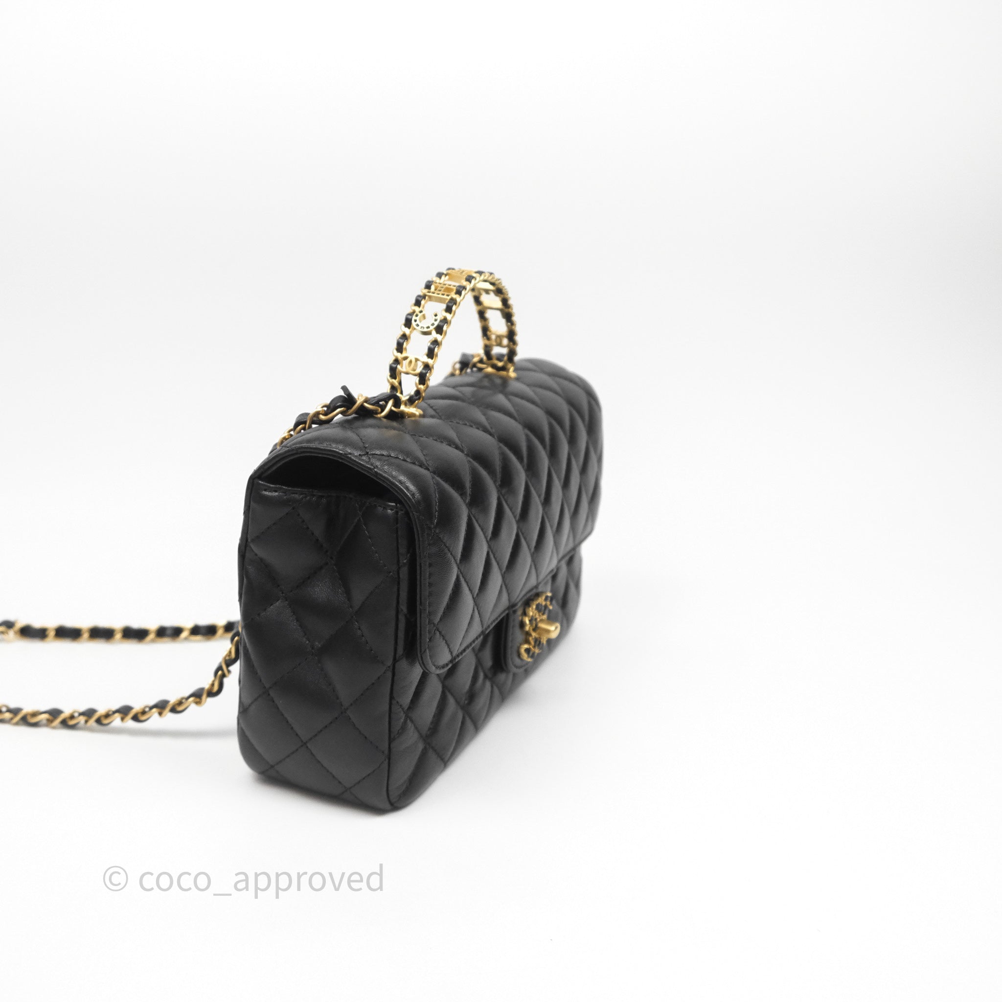 Chanel Logo Top Handle Small Flap Bag Black Lambskin Gold Hardware 24C