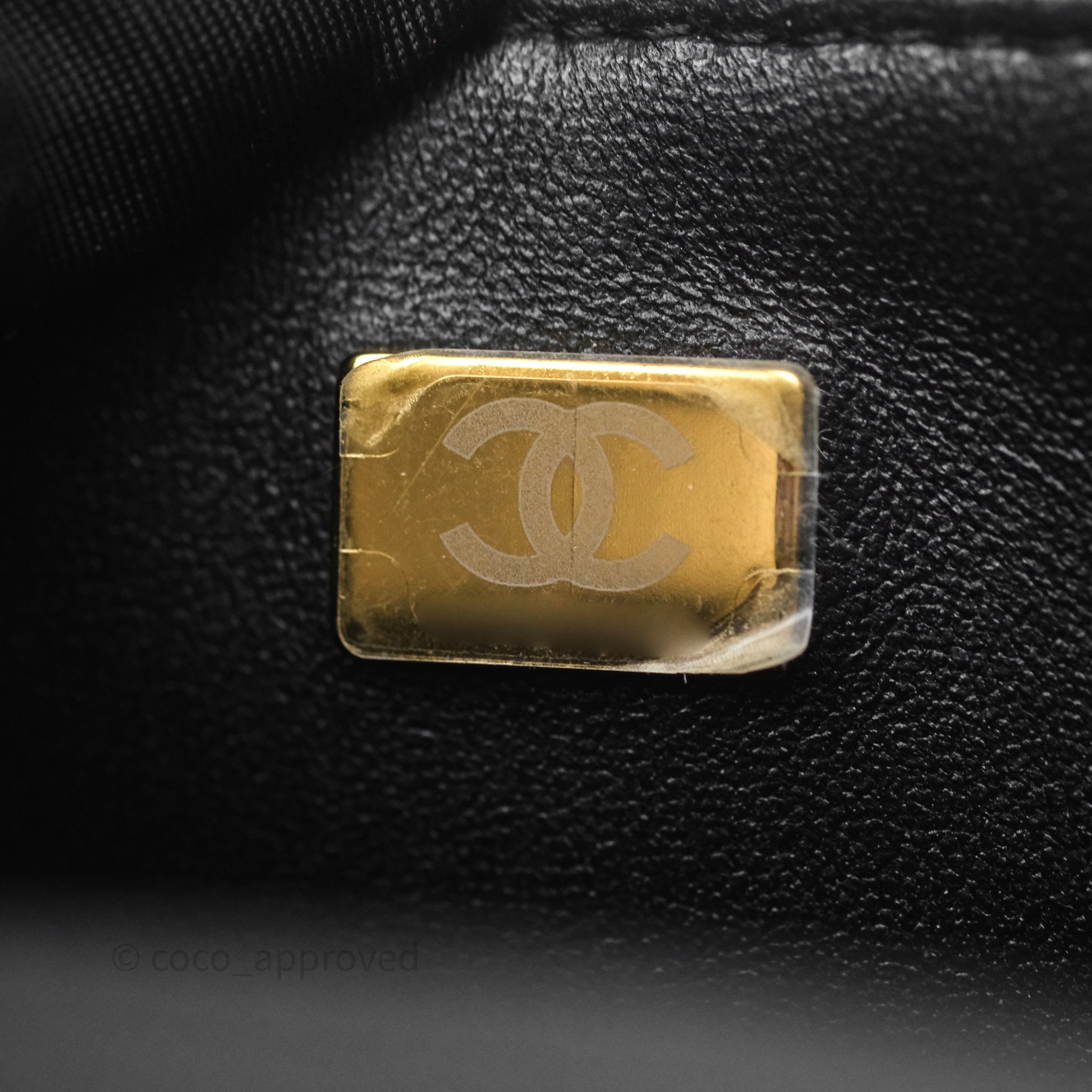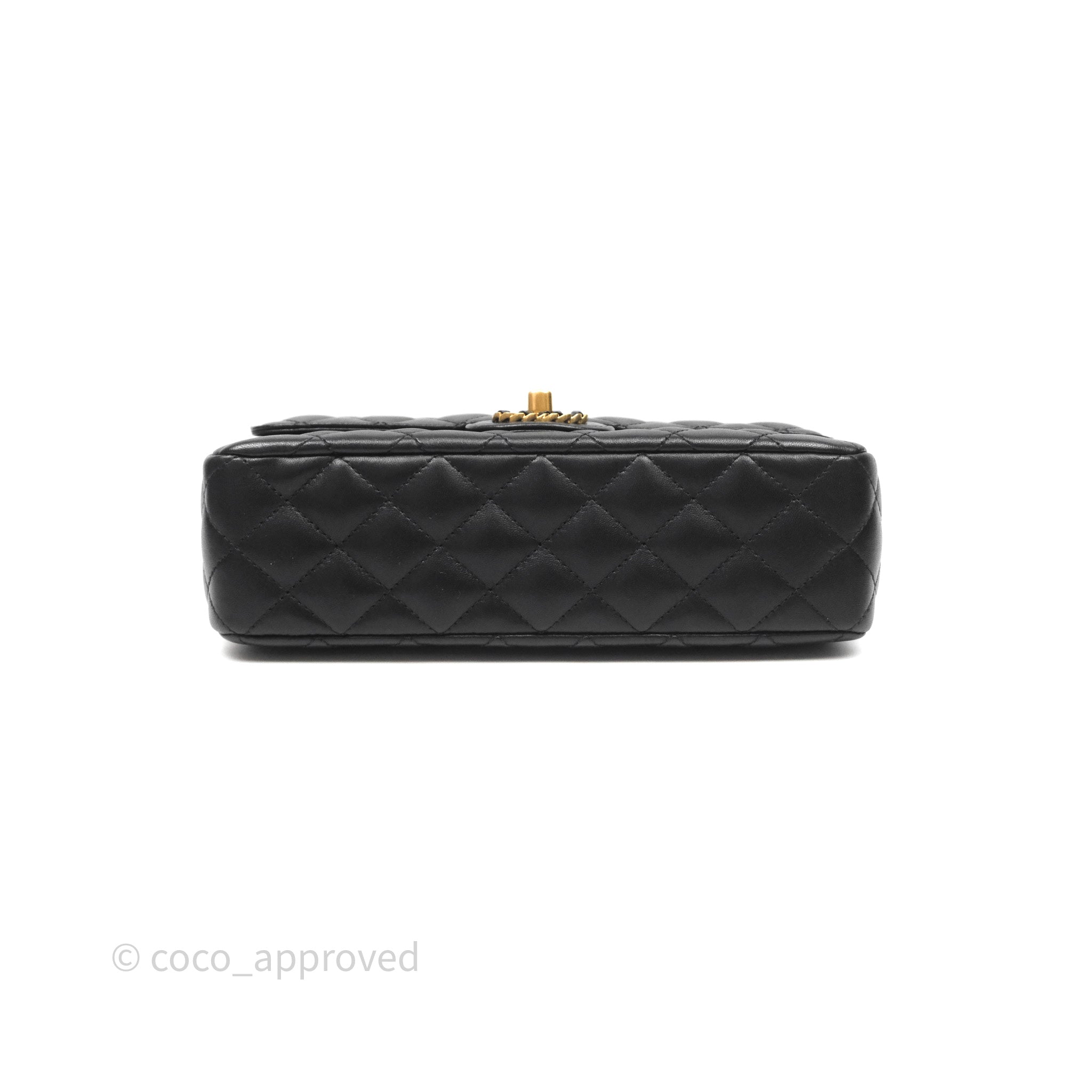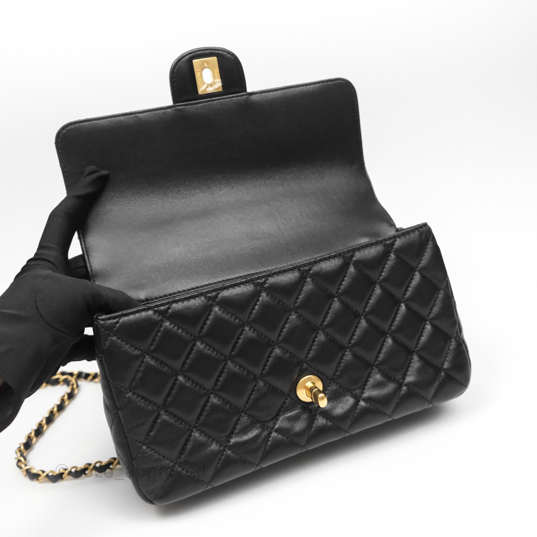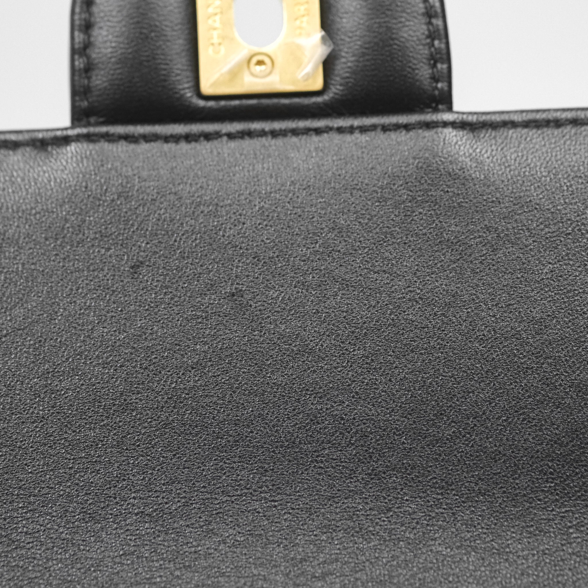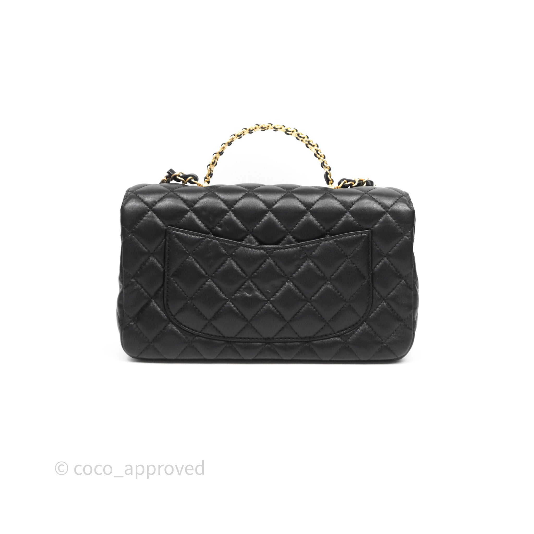 Chanel Logo Top Handle Small Flap Bag Black Lambskin Gold Hardware 24C