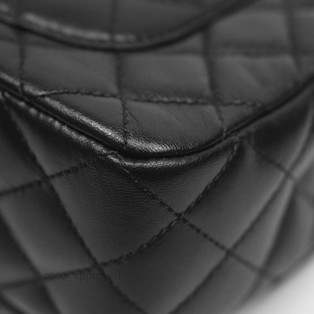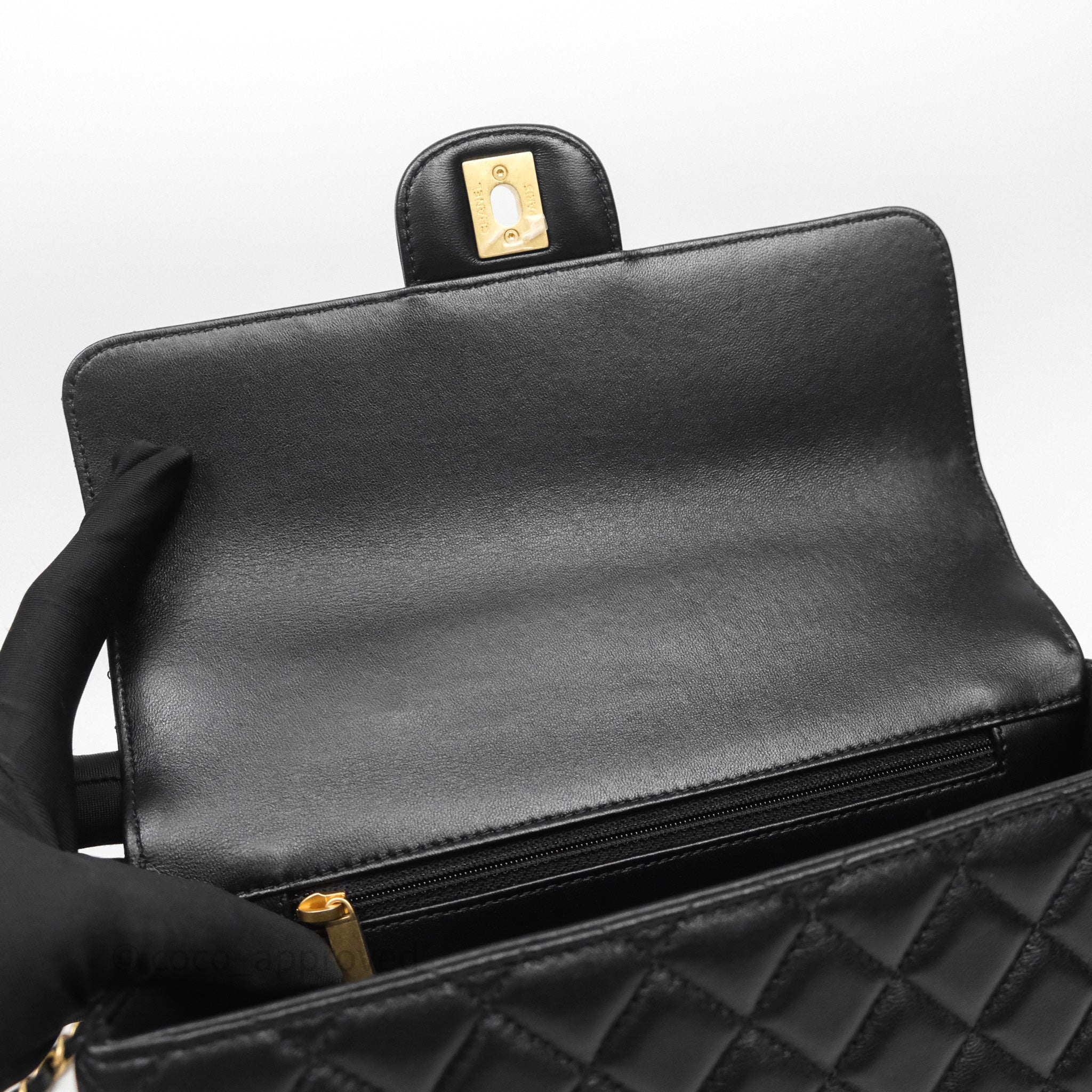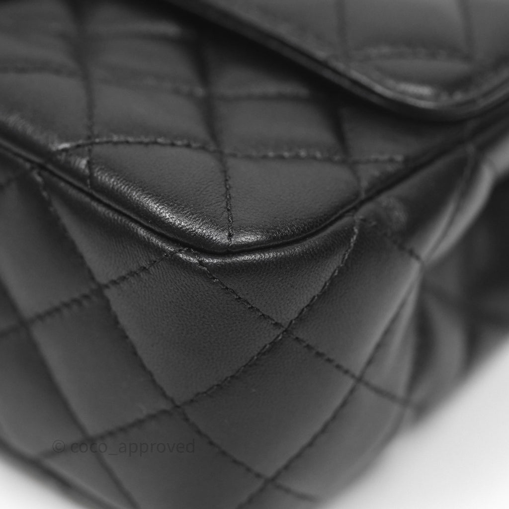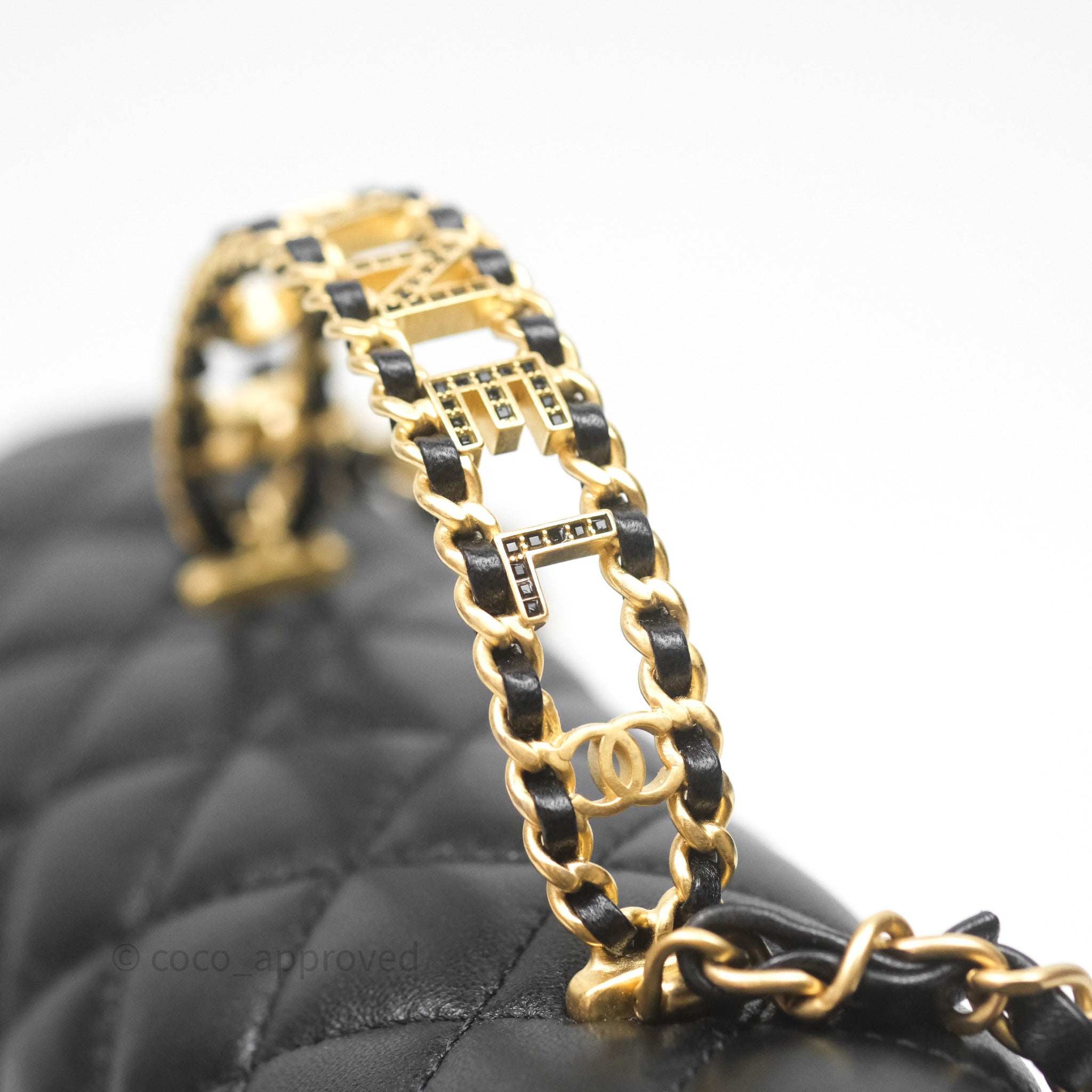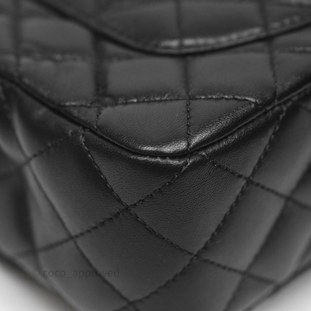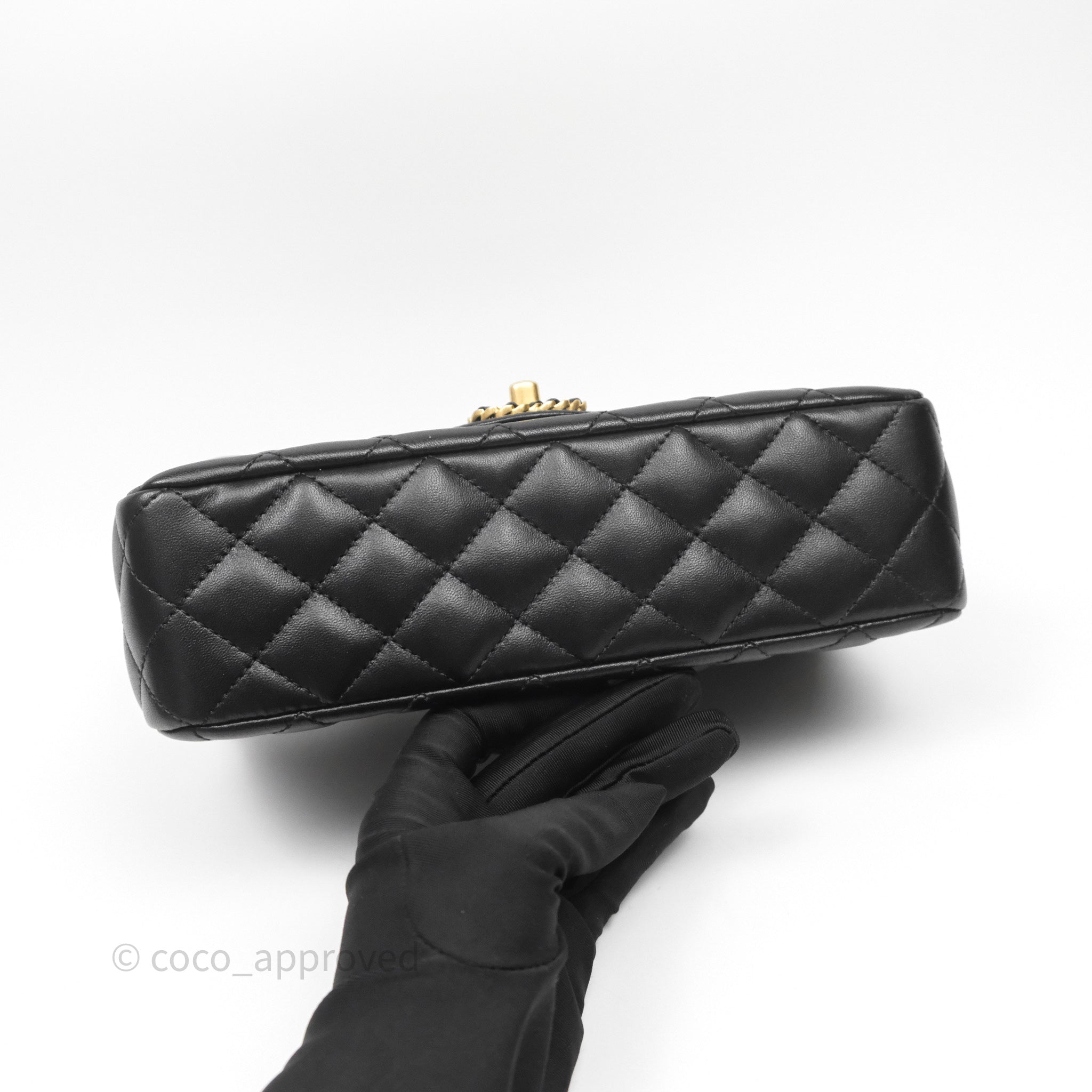 Chanel Logo Top Handle Small Flap Bag Black Lambskin Gold Hardware 24C