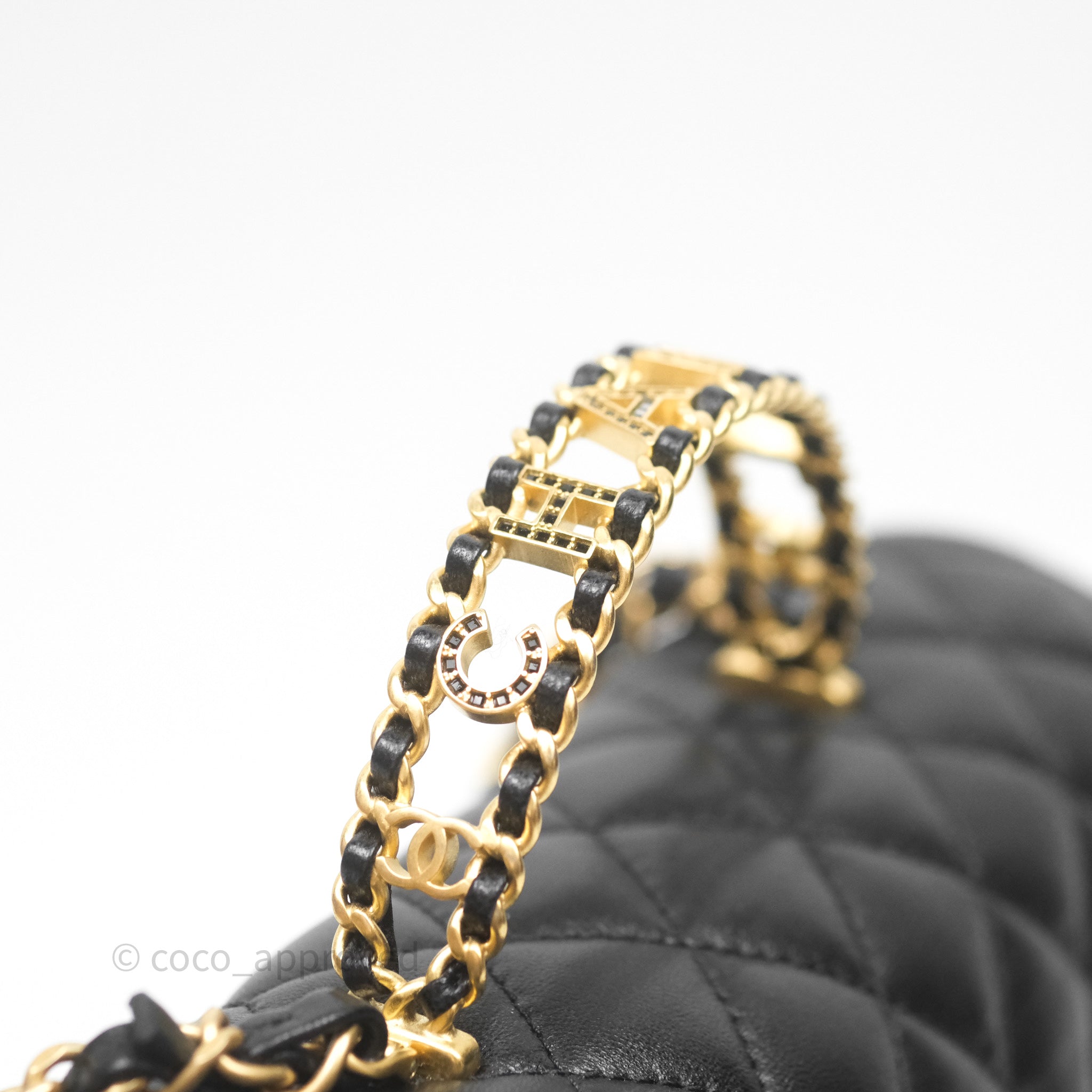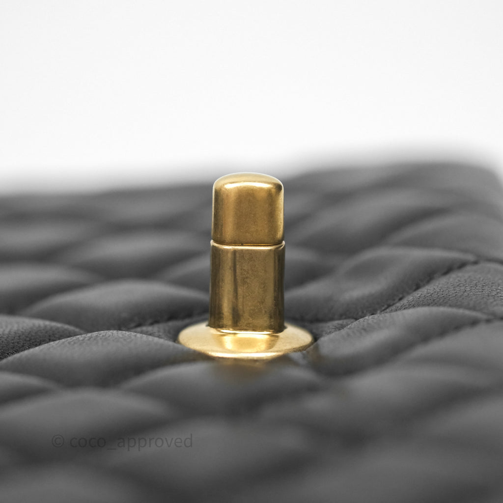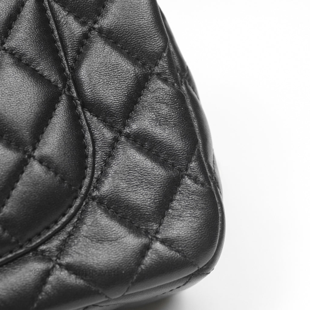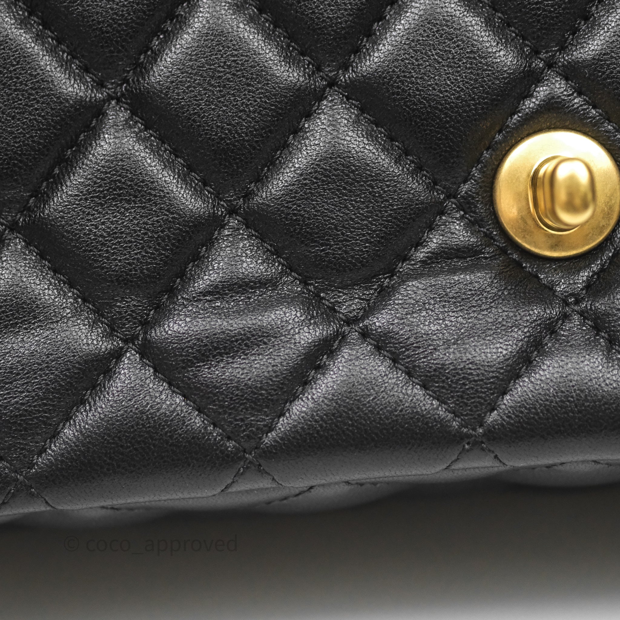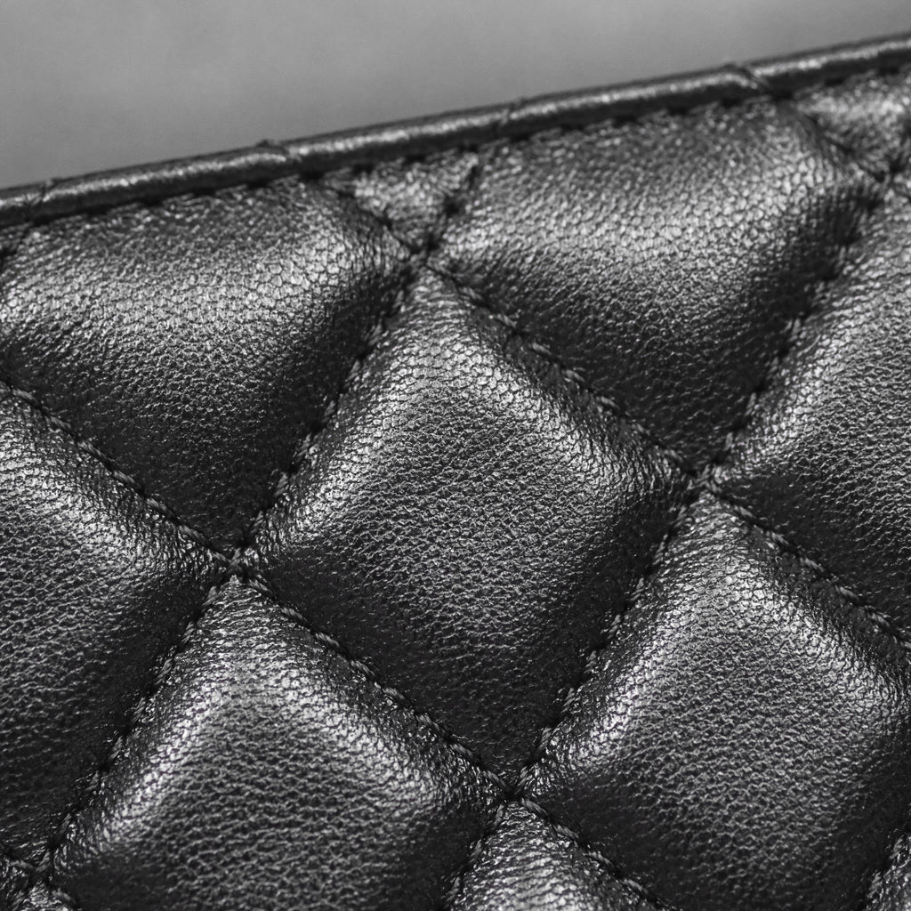 Chanel Logo Top Handle Small Flap Bag Black Lambskin Gold Hardware 24C