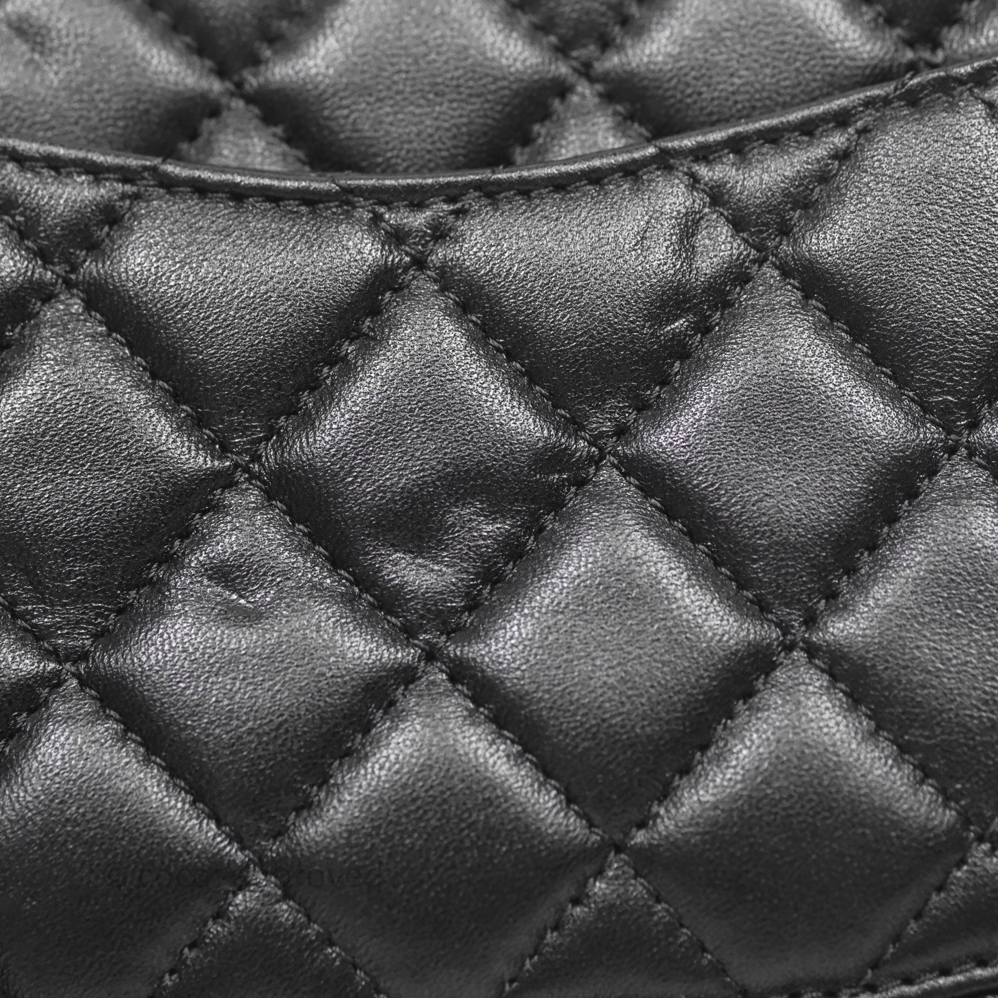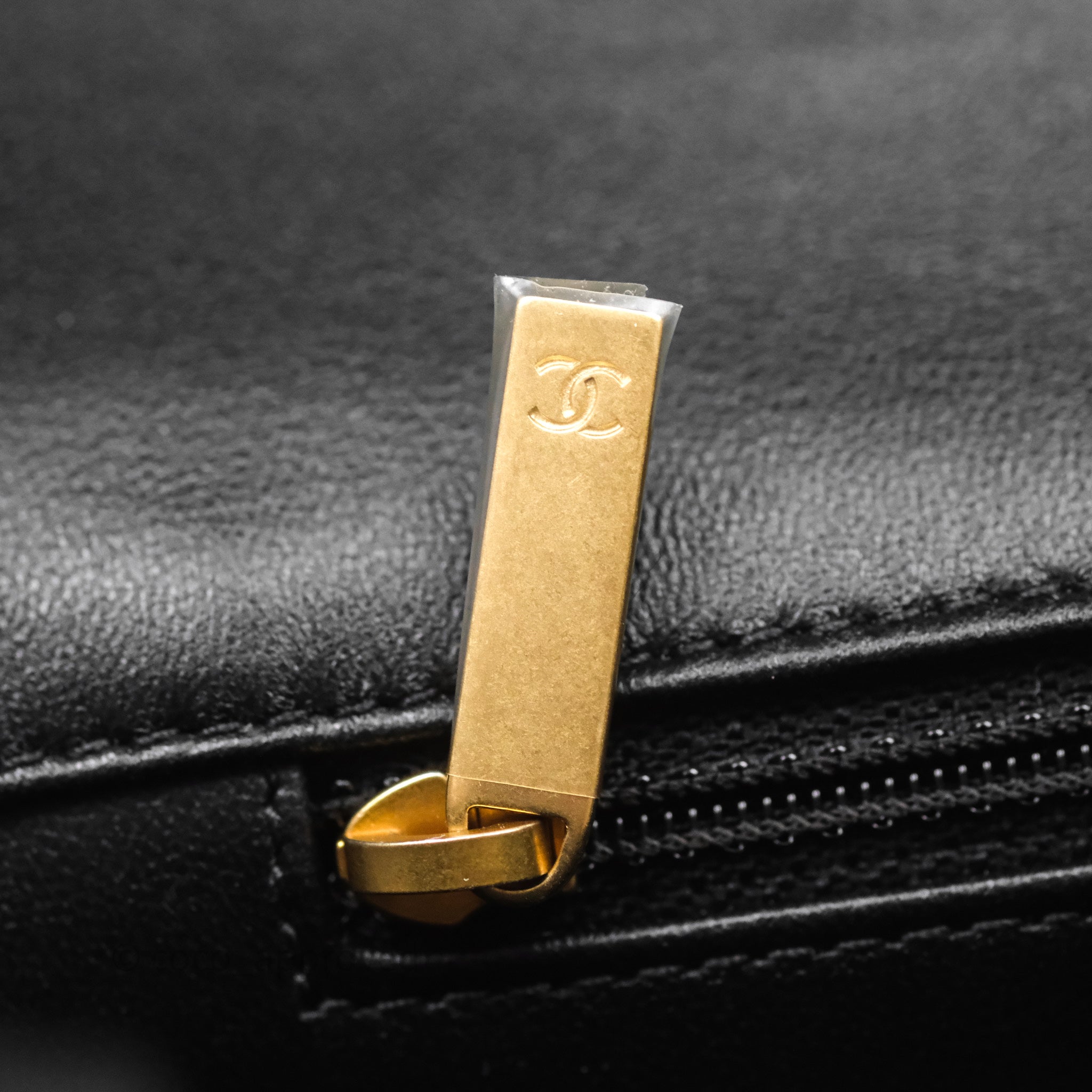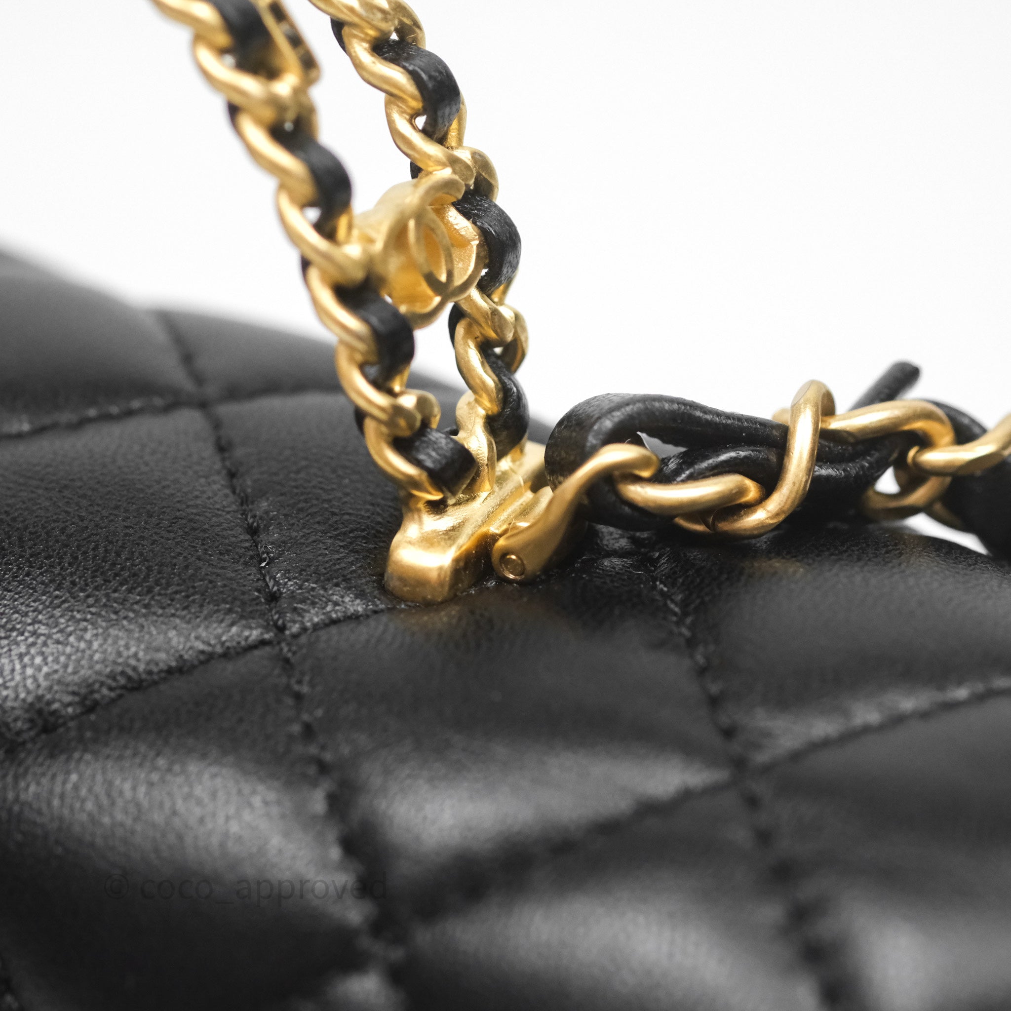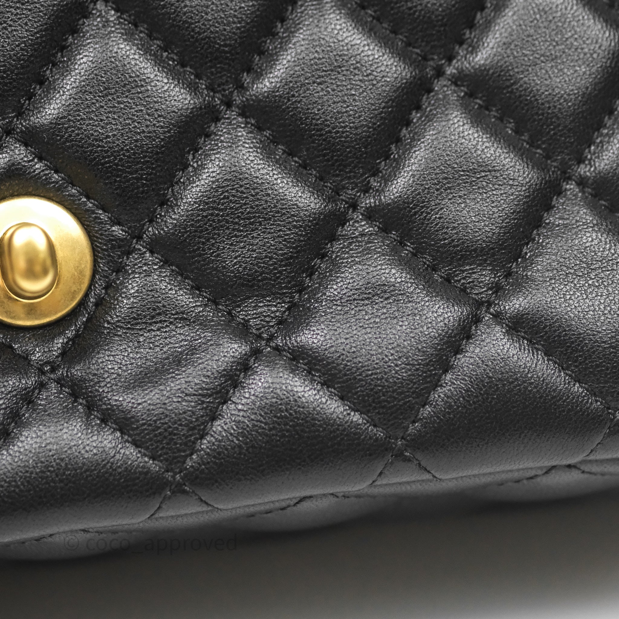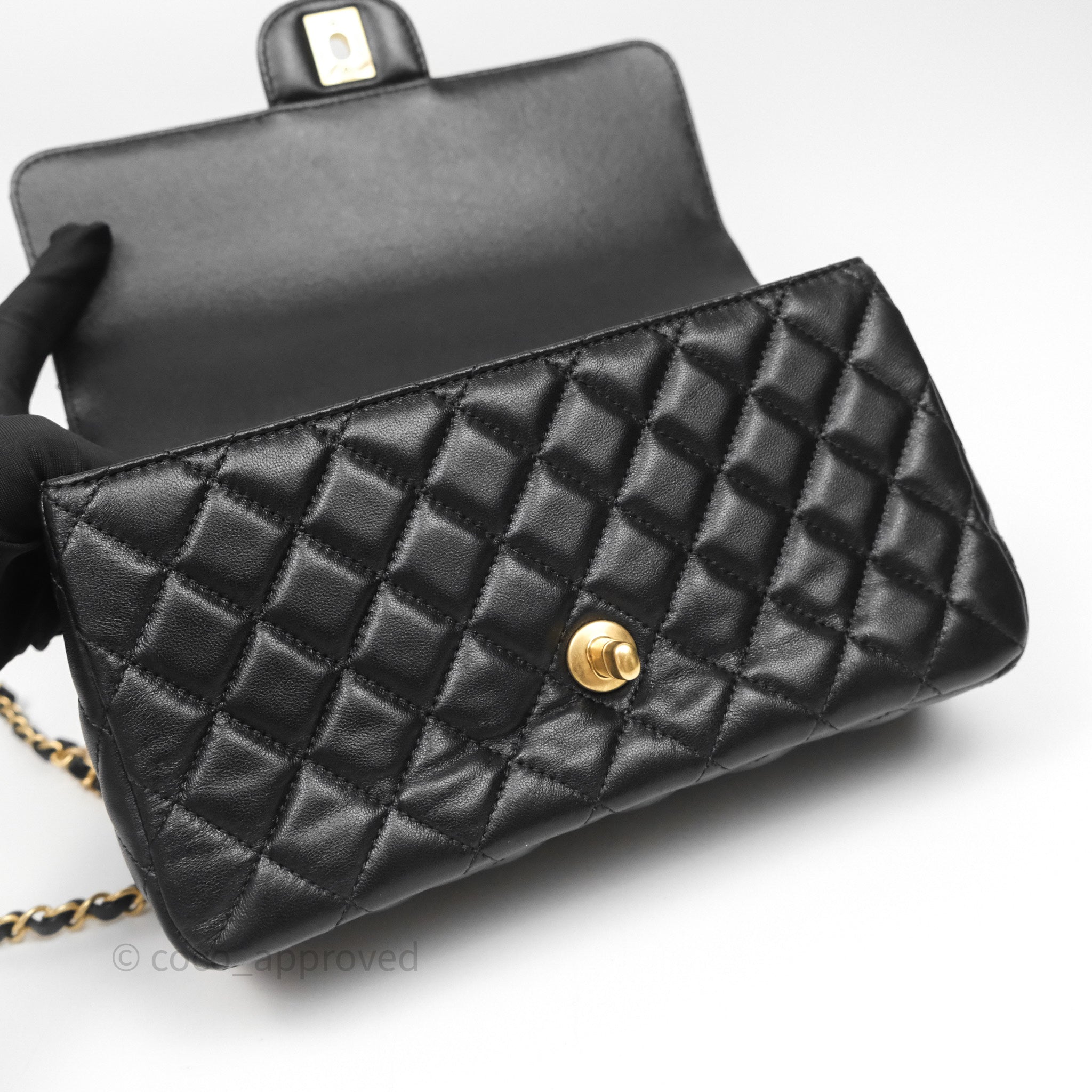 Chanel Logo Top Handle Small Flap Bag Black Lambskin Gold Hardware 24C