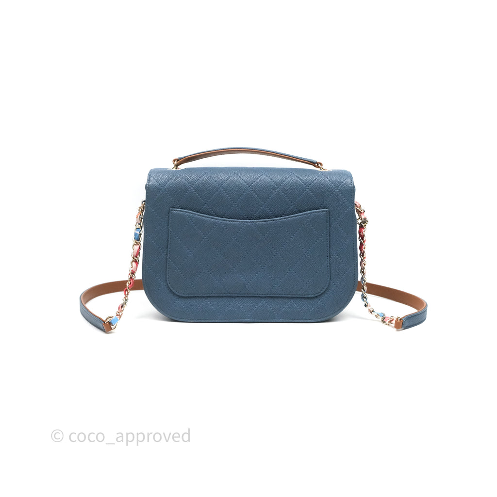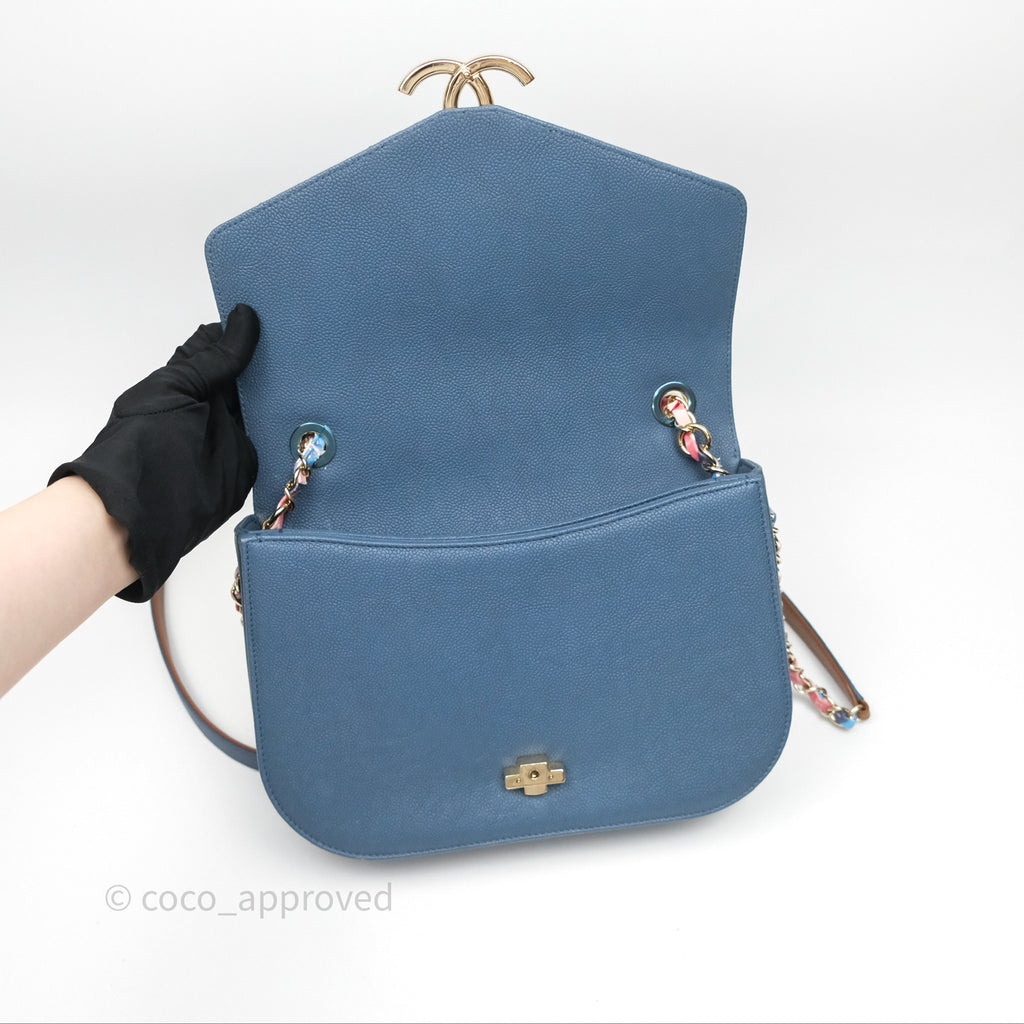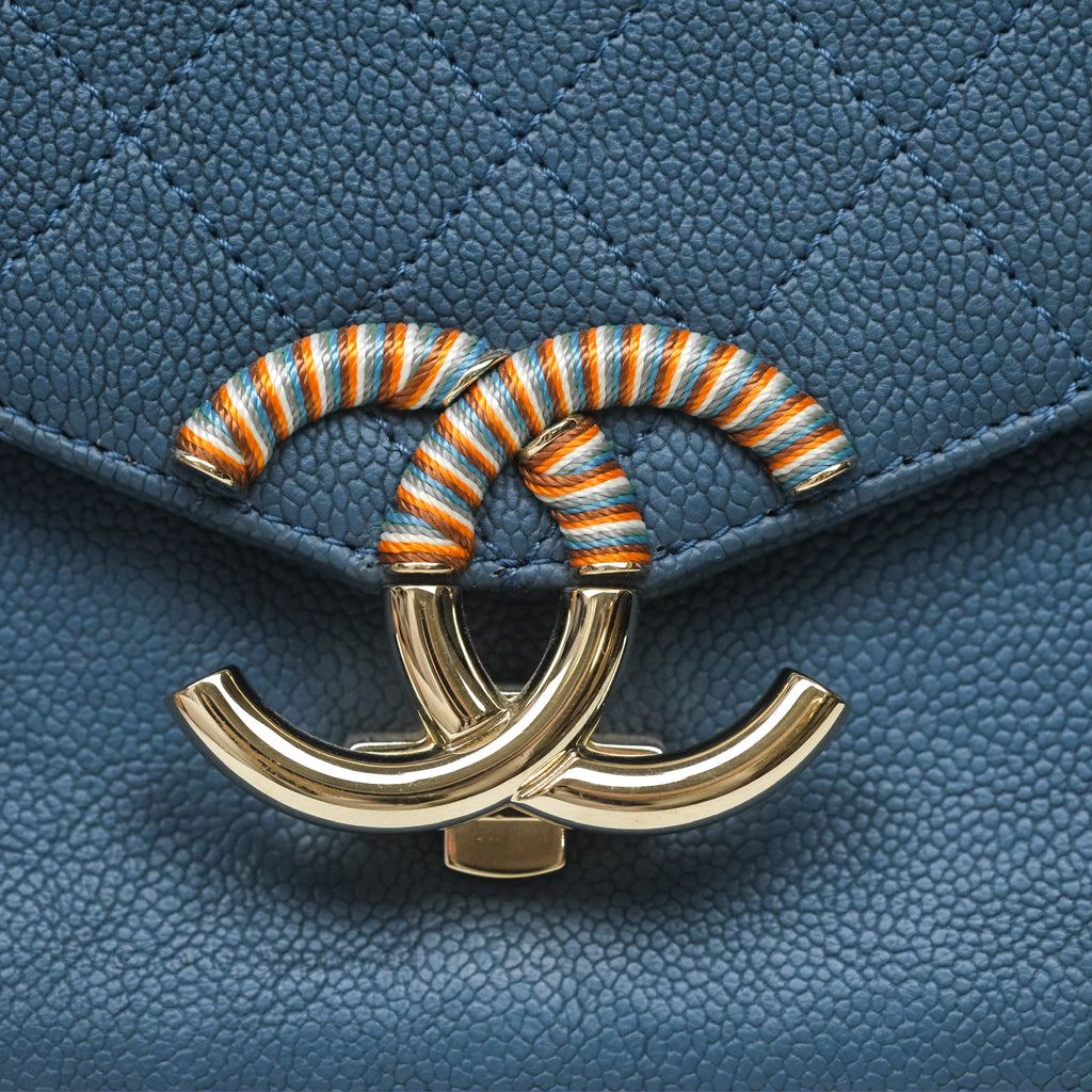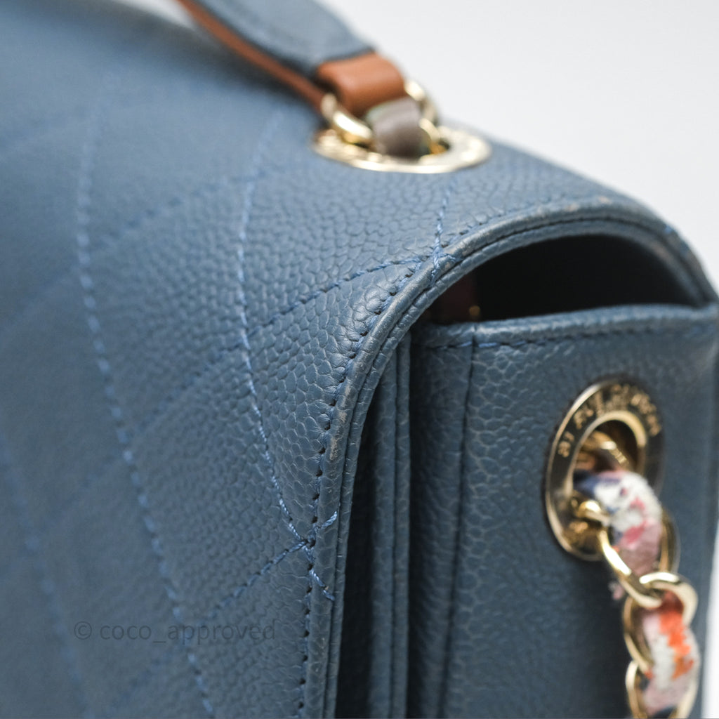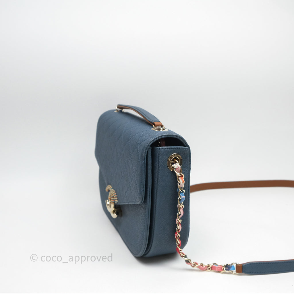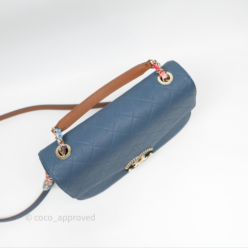 Chanel Medium Cuba Top Handle Flap Bag Blue Caviar Gold Hardware