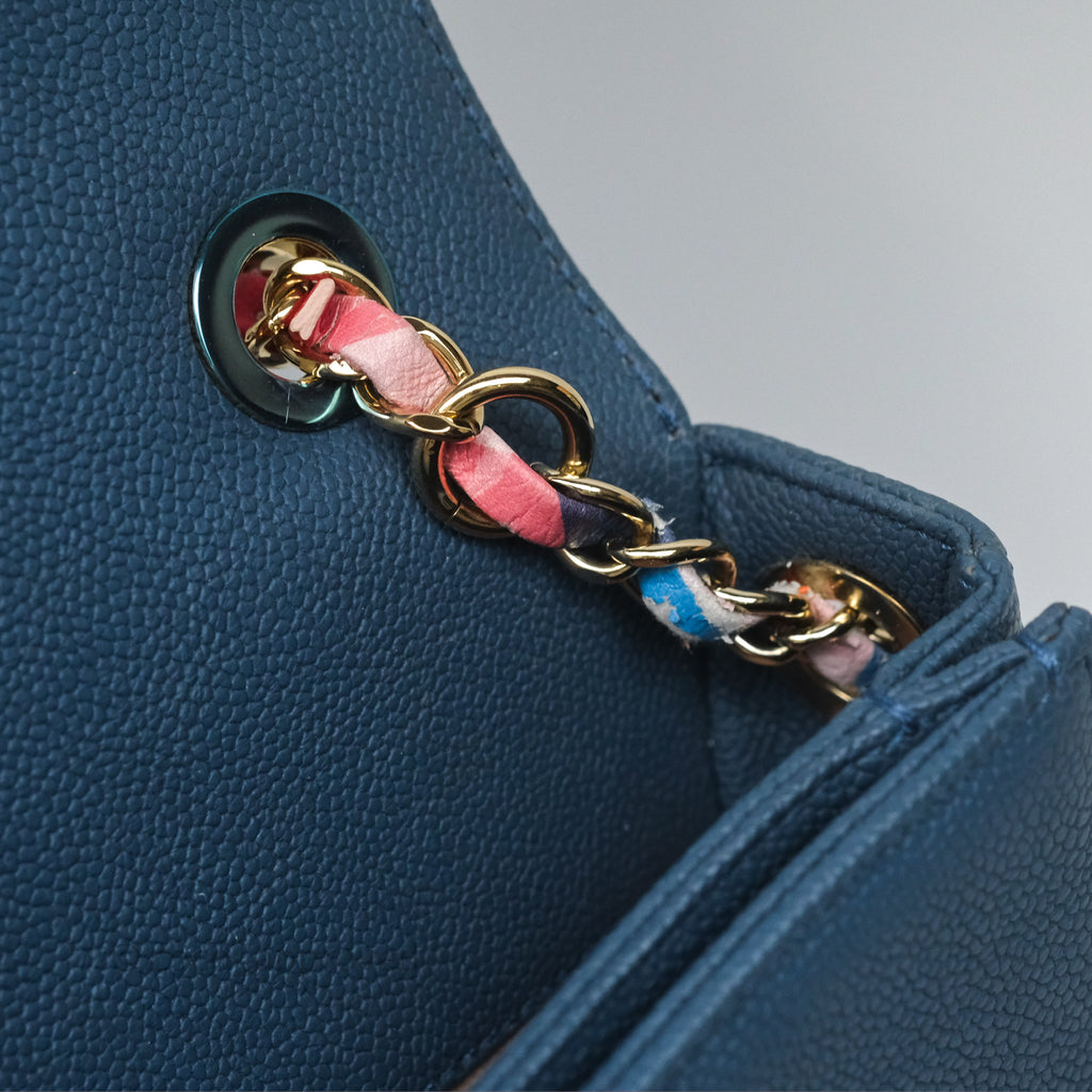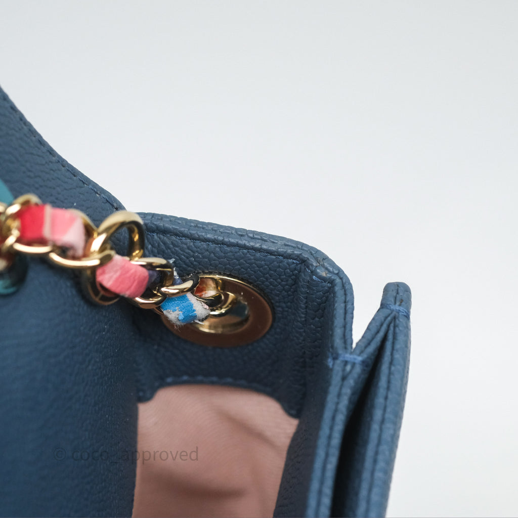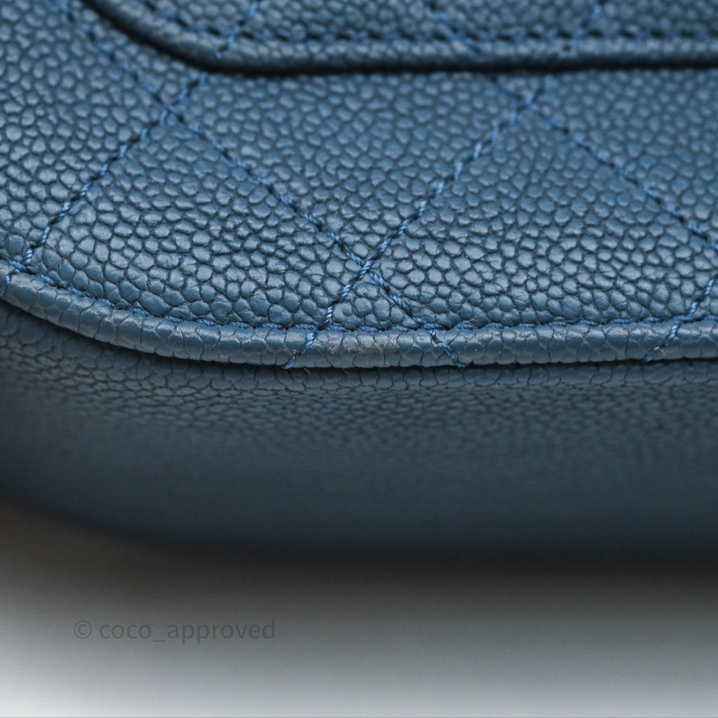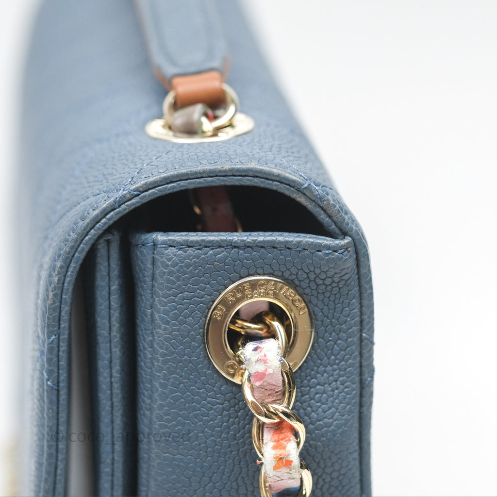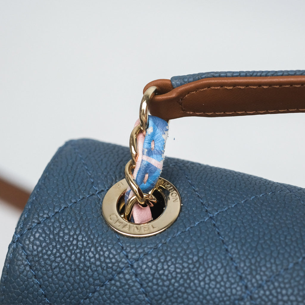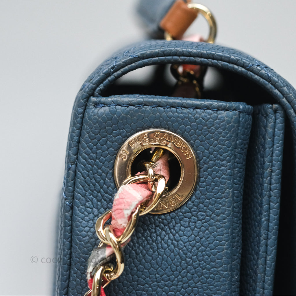 Chanel Medium Cuba Top Handle Flap Bag Blue Caviar Gold Hardware