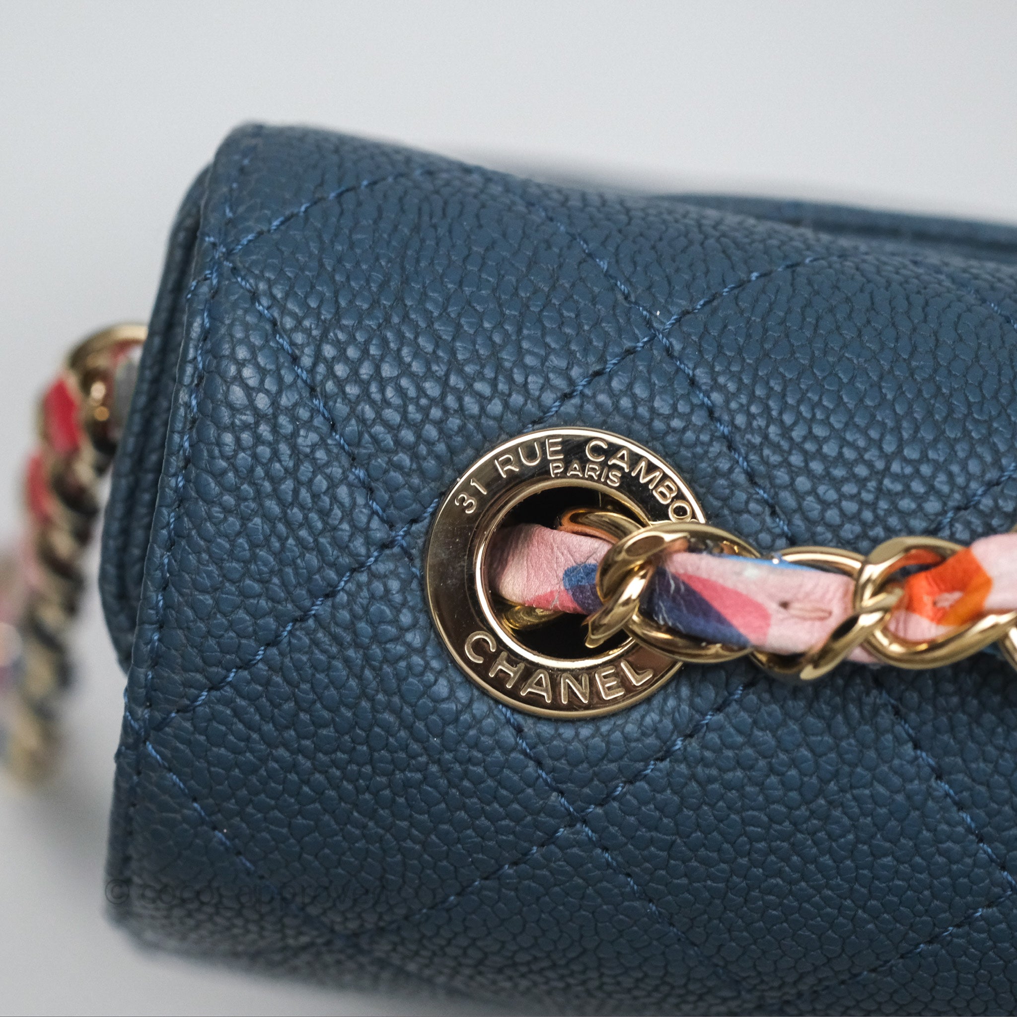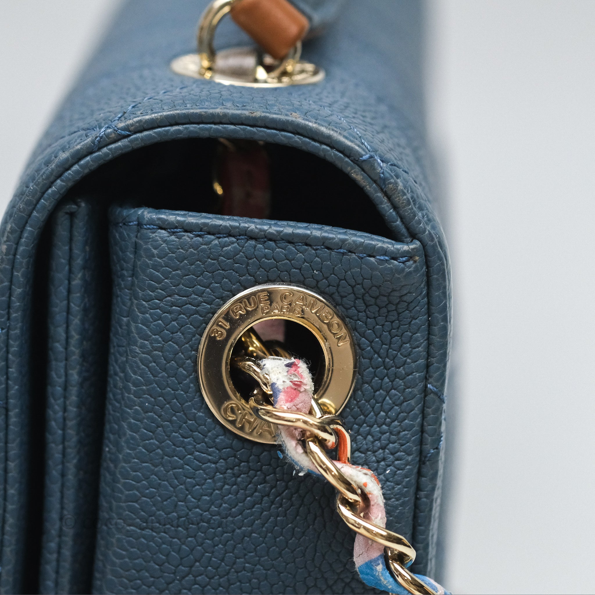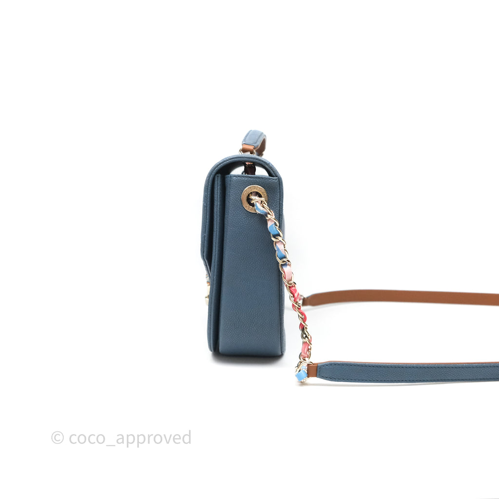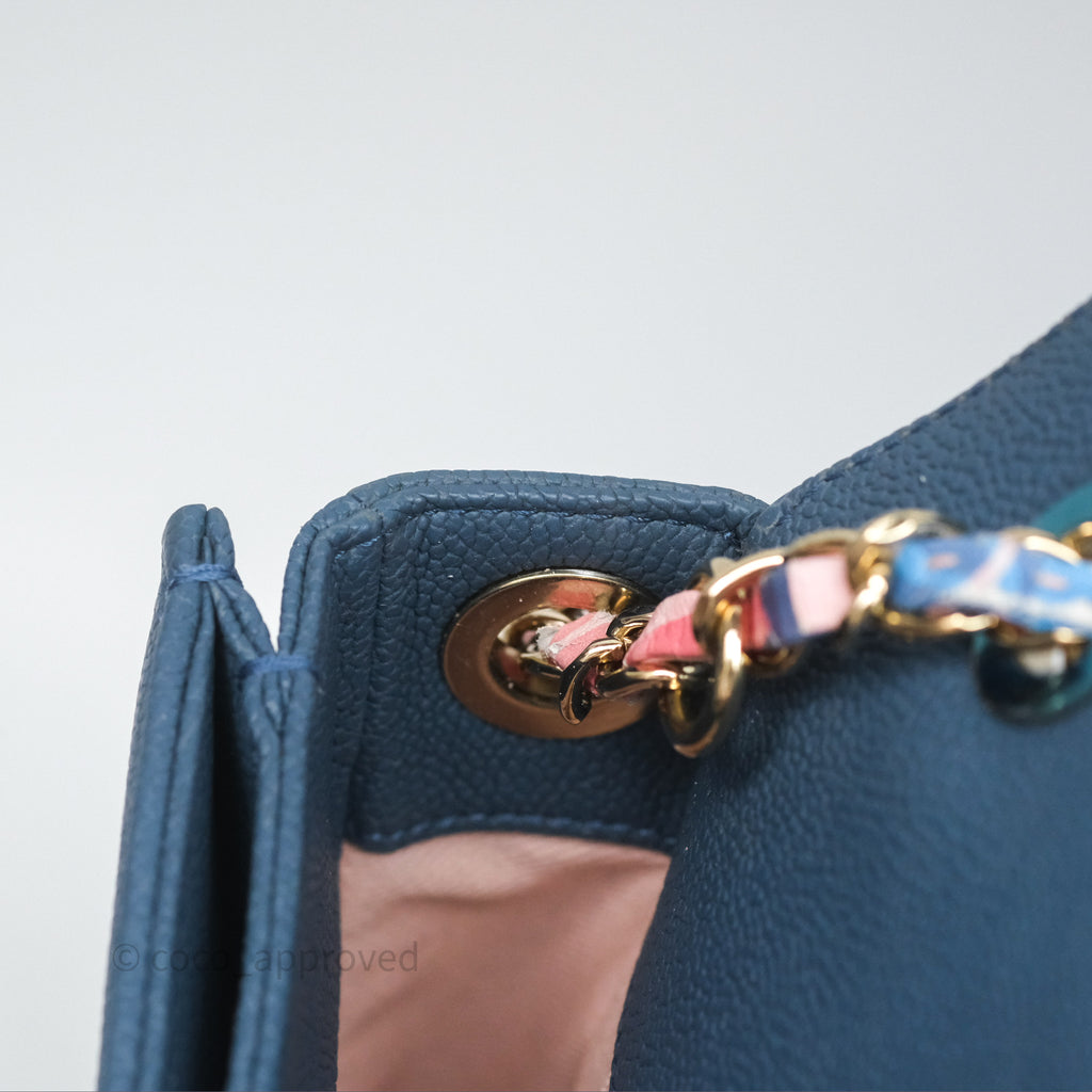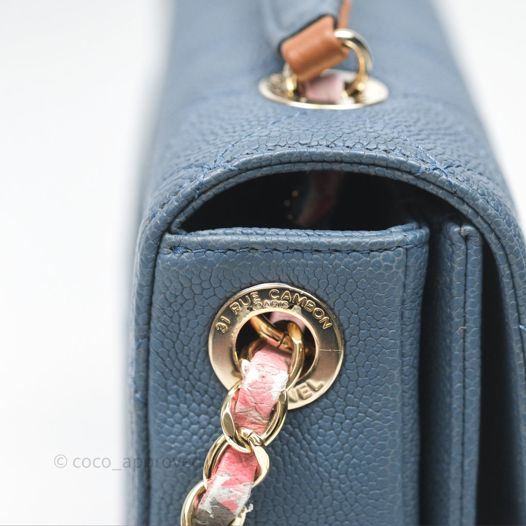 Chanel Medium Cuba Top Handle Flap Bag Blue Caviar Gold Hardware