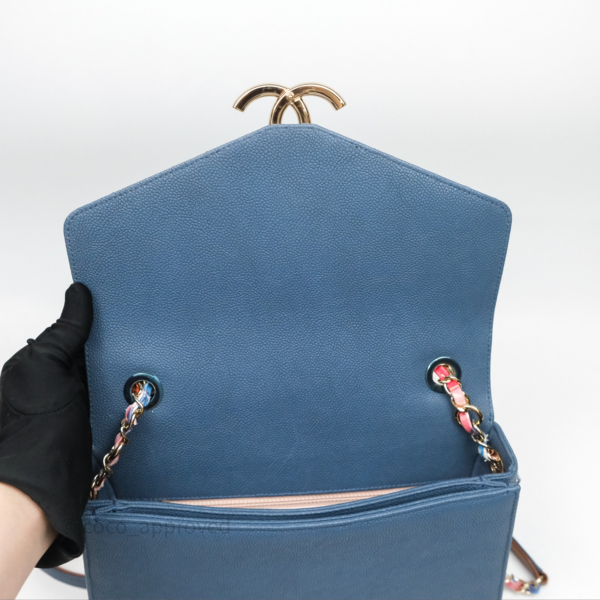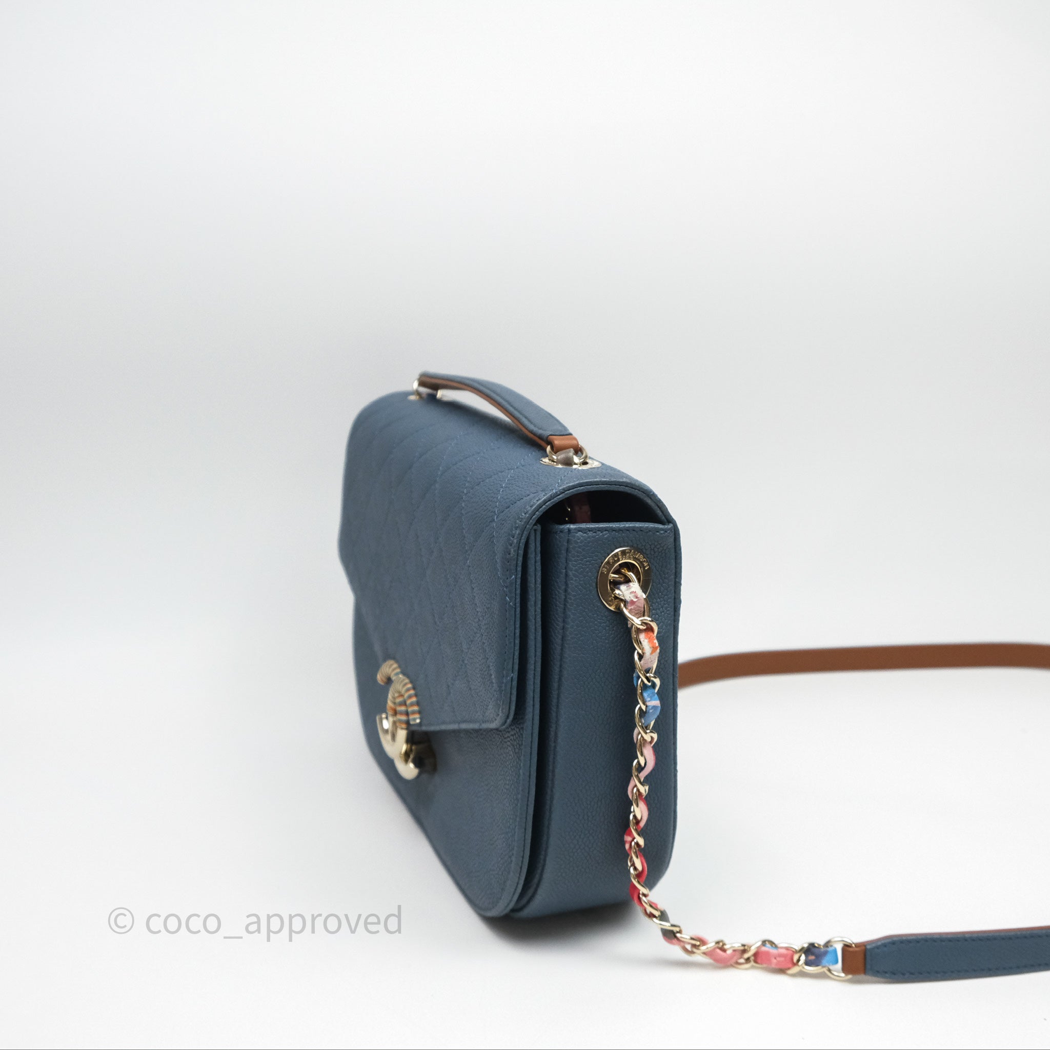 Chanel Medium Cuba Top Handle Flap Bag Blue Caviar Gold Hardware is now sold. Please subscribe for any updates if similar item becomes available.