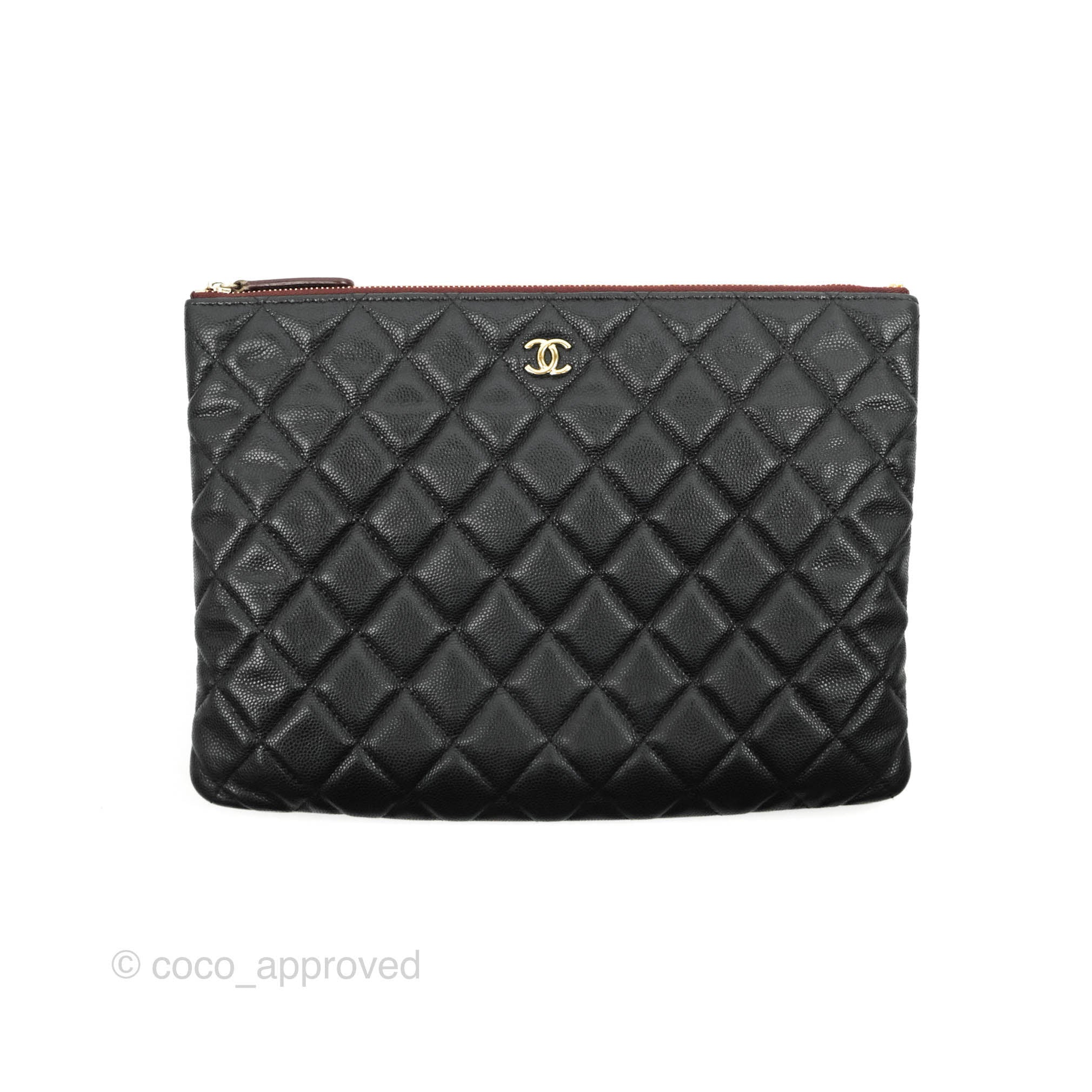 Chanel Medium Quilted O Case Black Caviar Gold Hardware