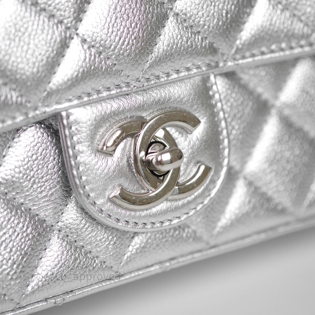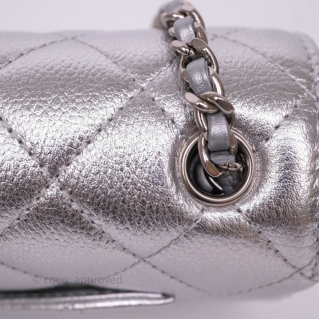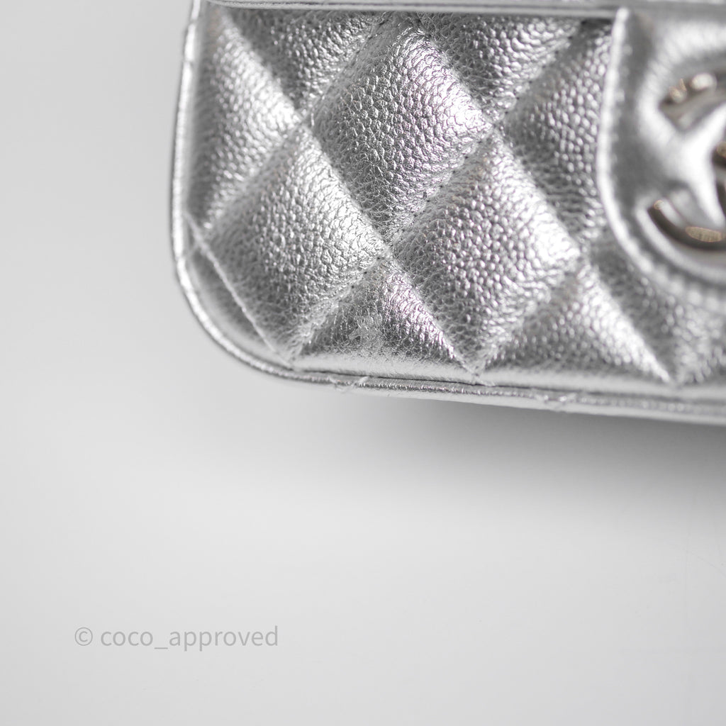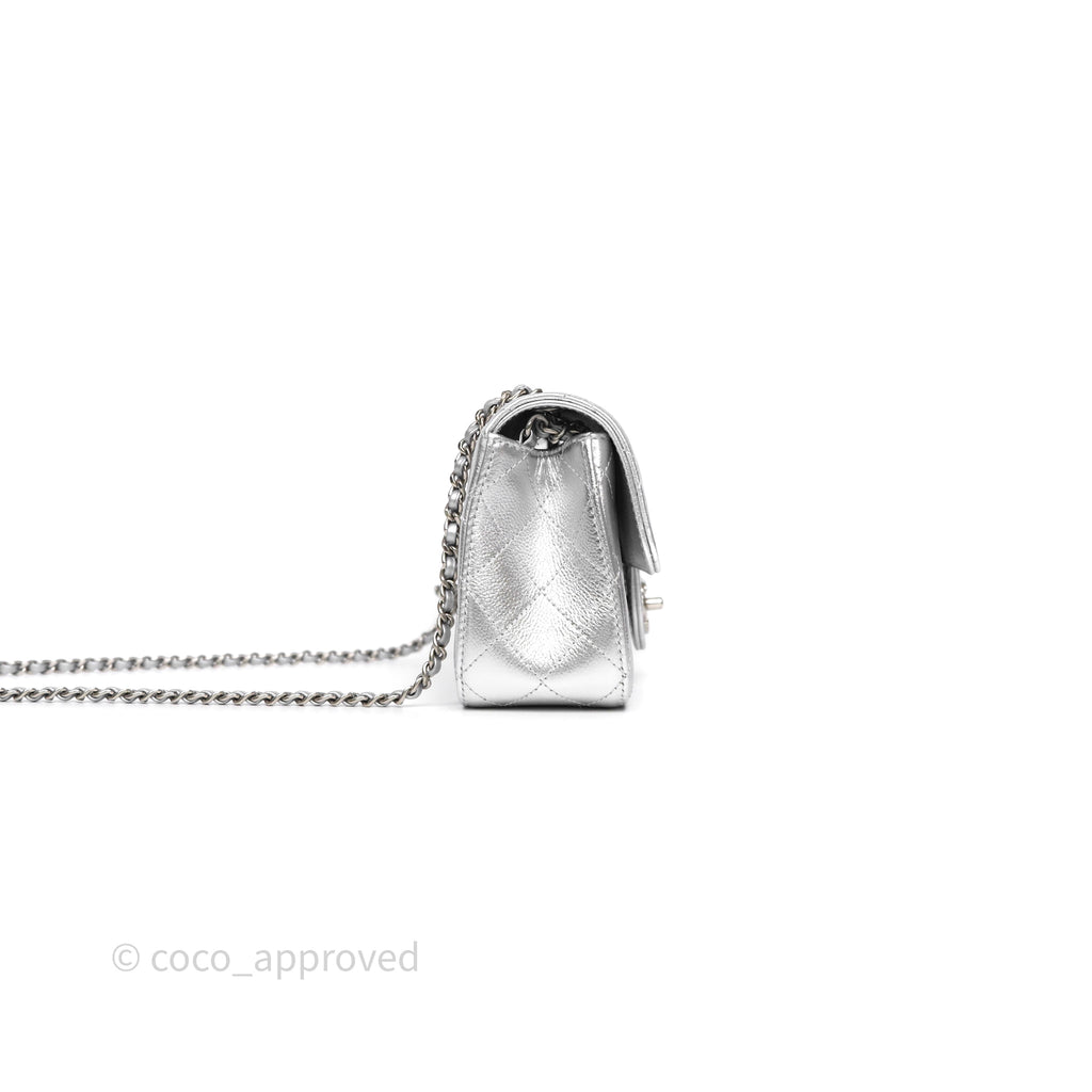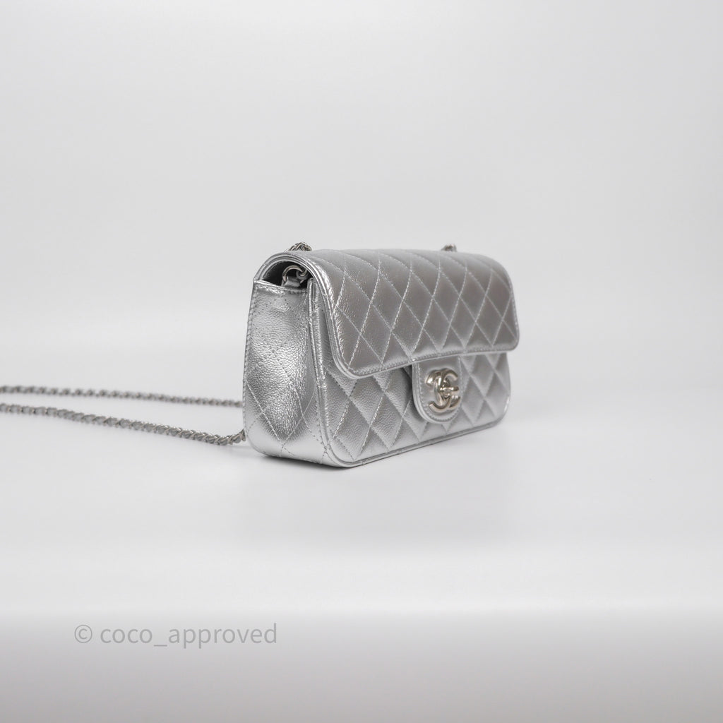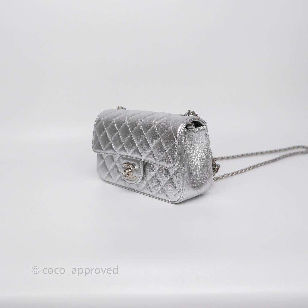 Chanel Quilted Mini Rectangular With Enamel CC Adjustable Chain Metallic Silver Caviar