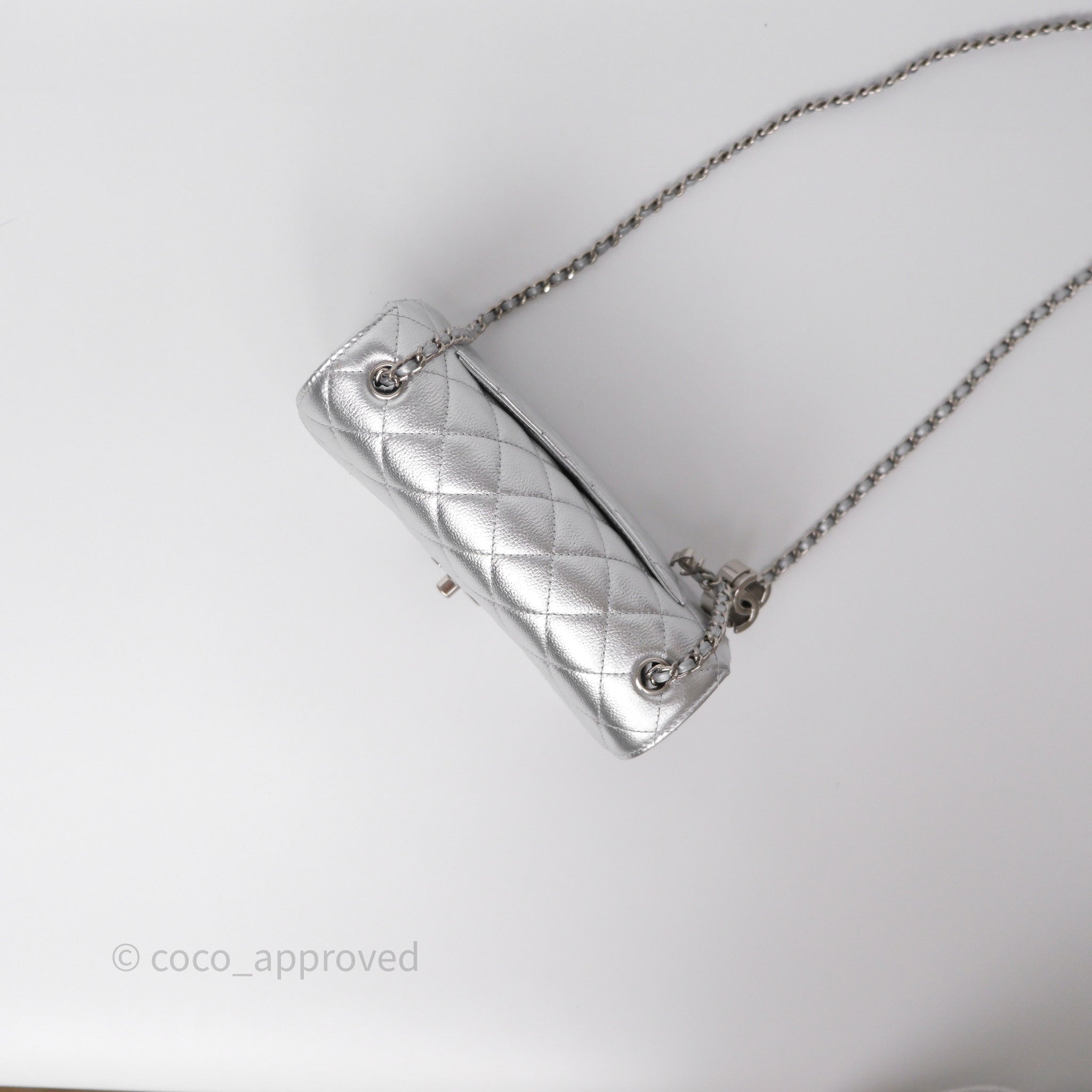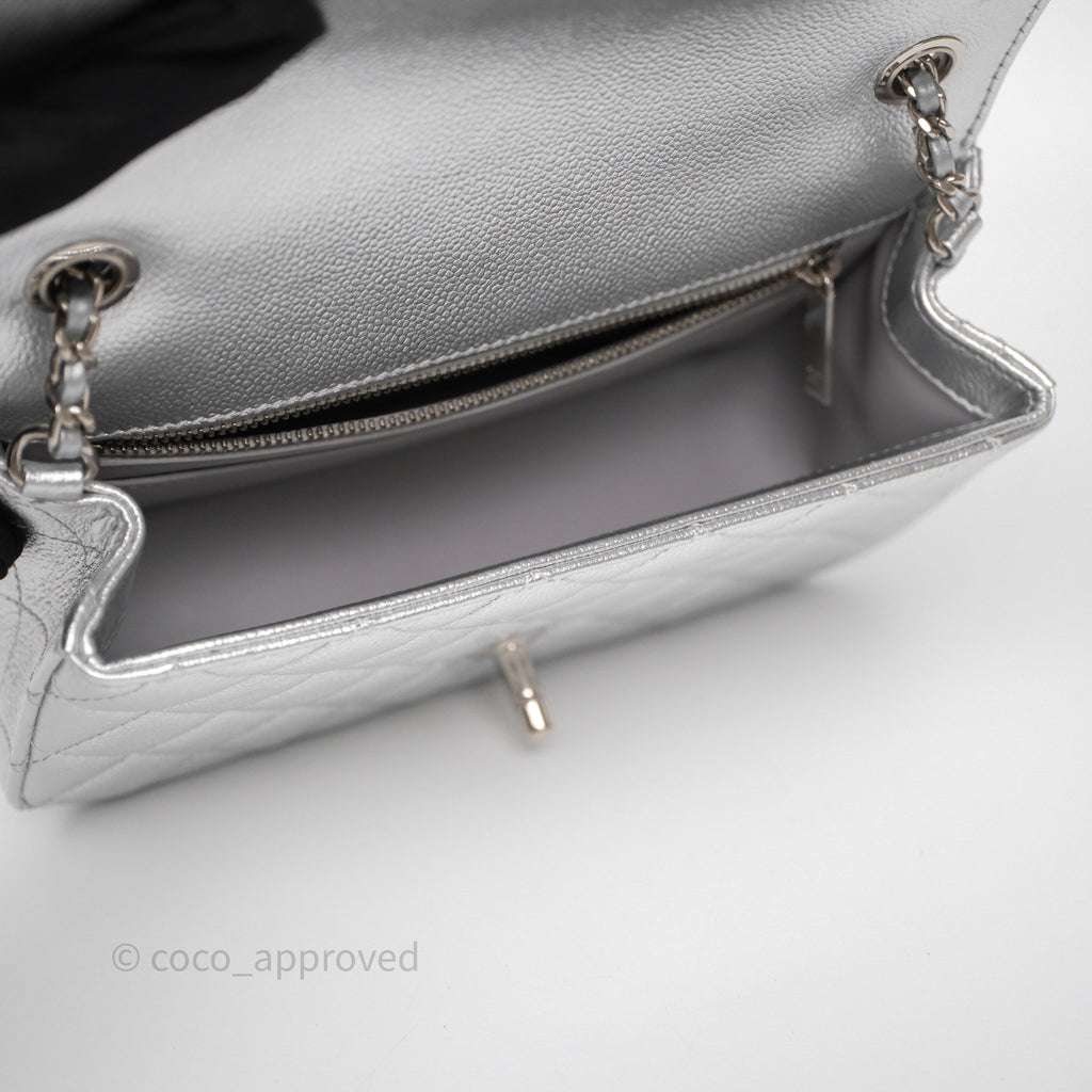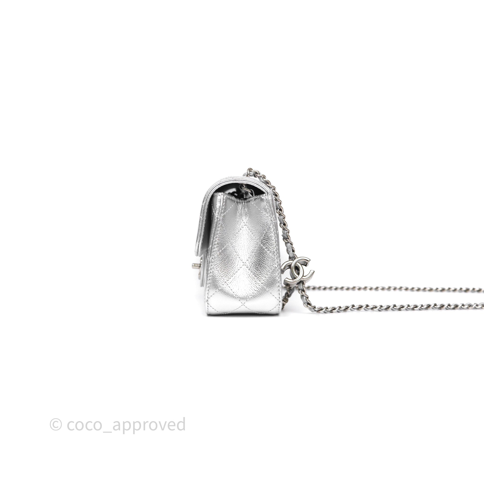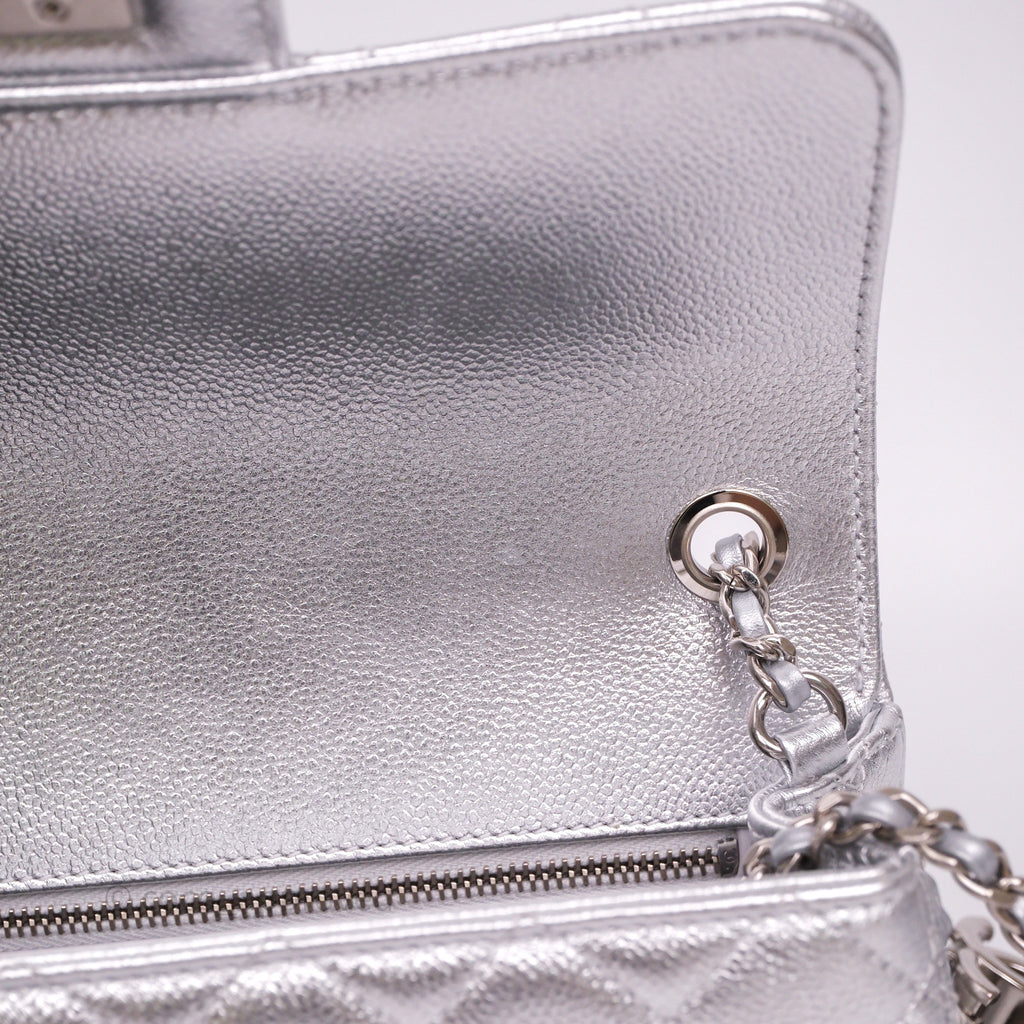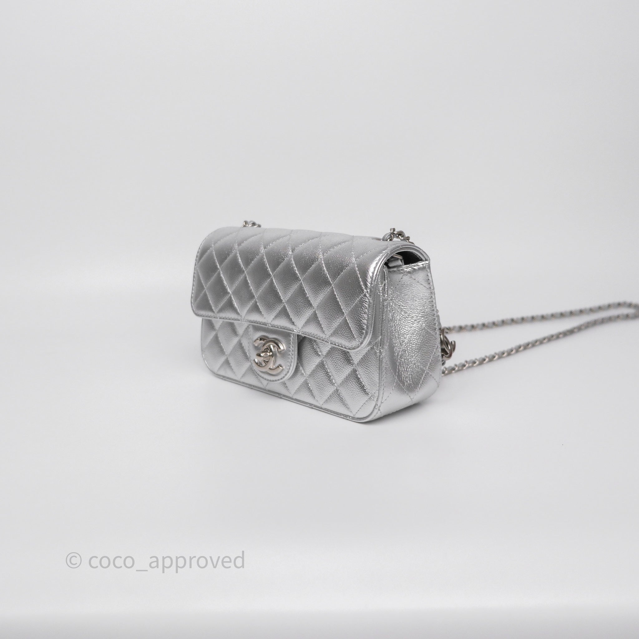 Chanel Quilted Mini Rectangular With Enamel CC Adjustable Chain Metallic Silver Caviar