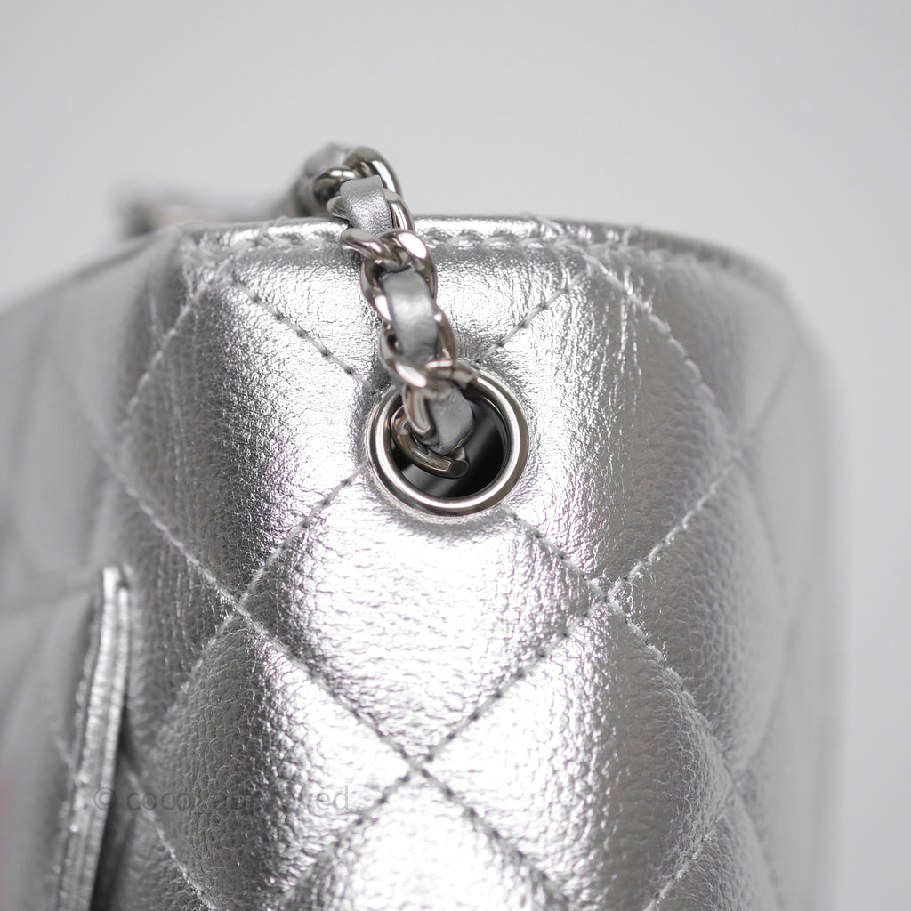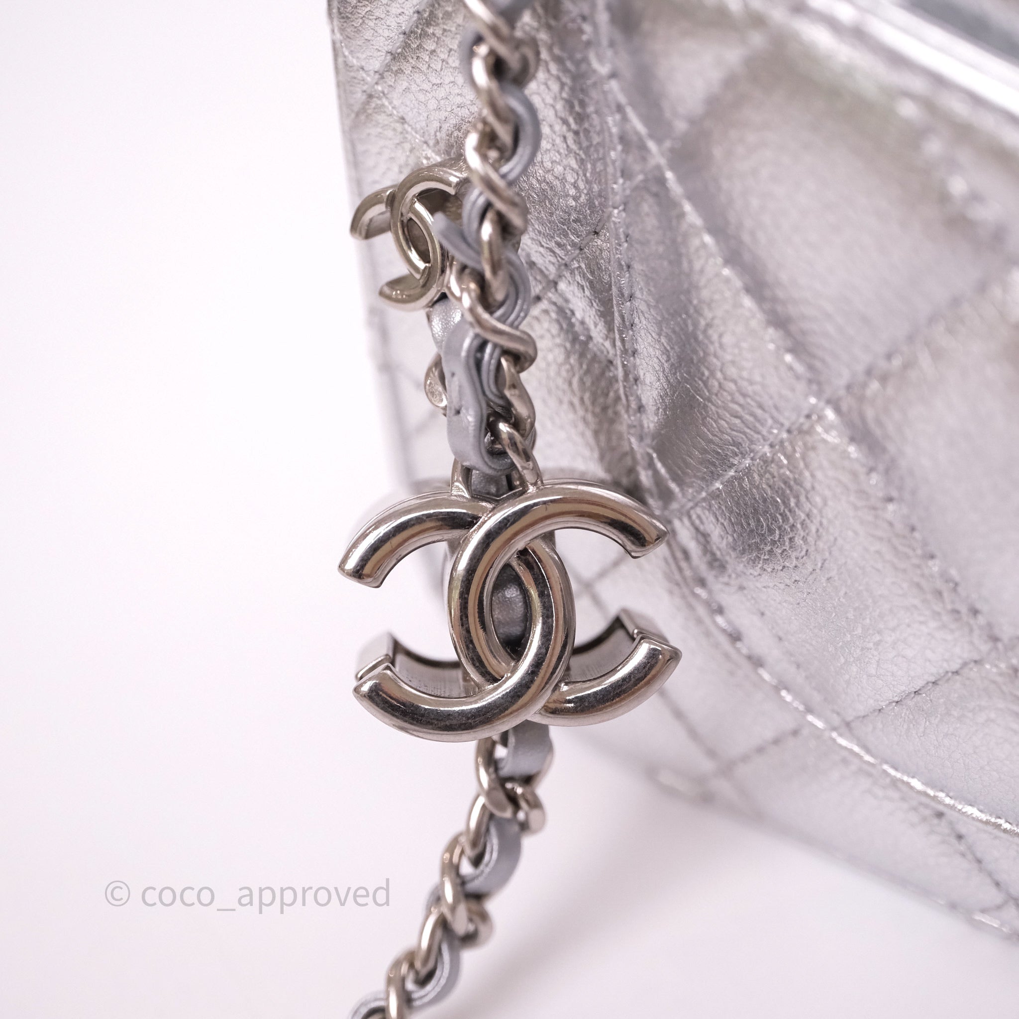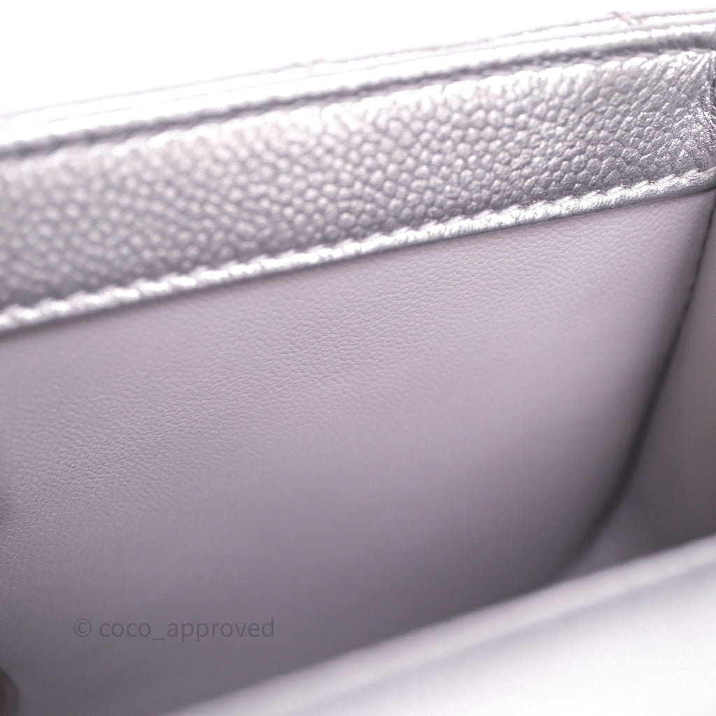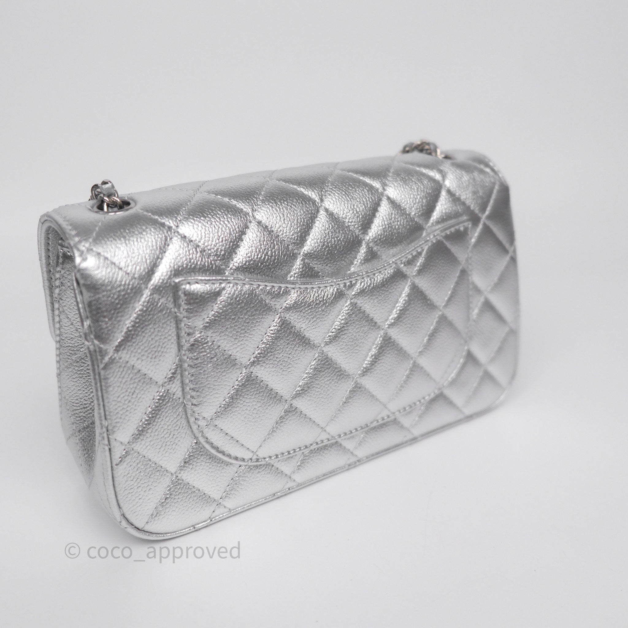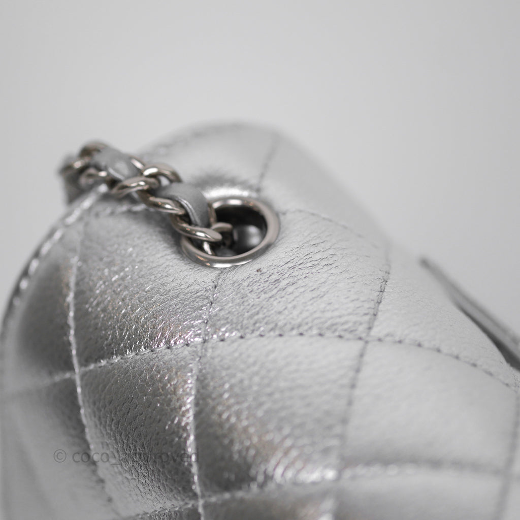 Chanel Quilted Mini Rectangular With Enamel CC Adjustable Chain Metallic Silver Caviar