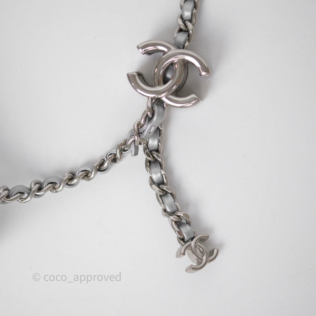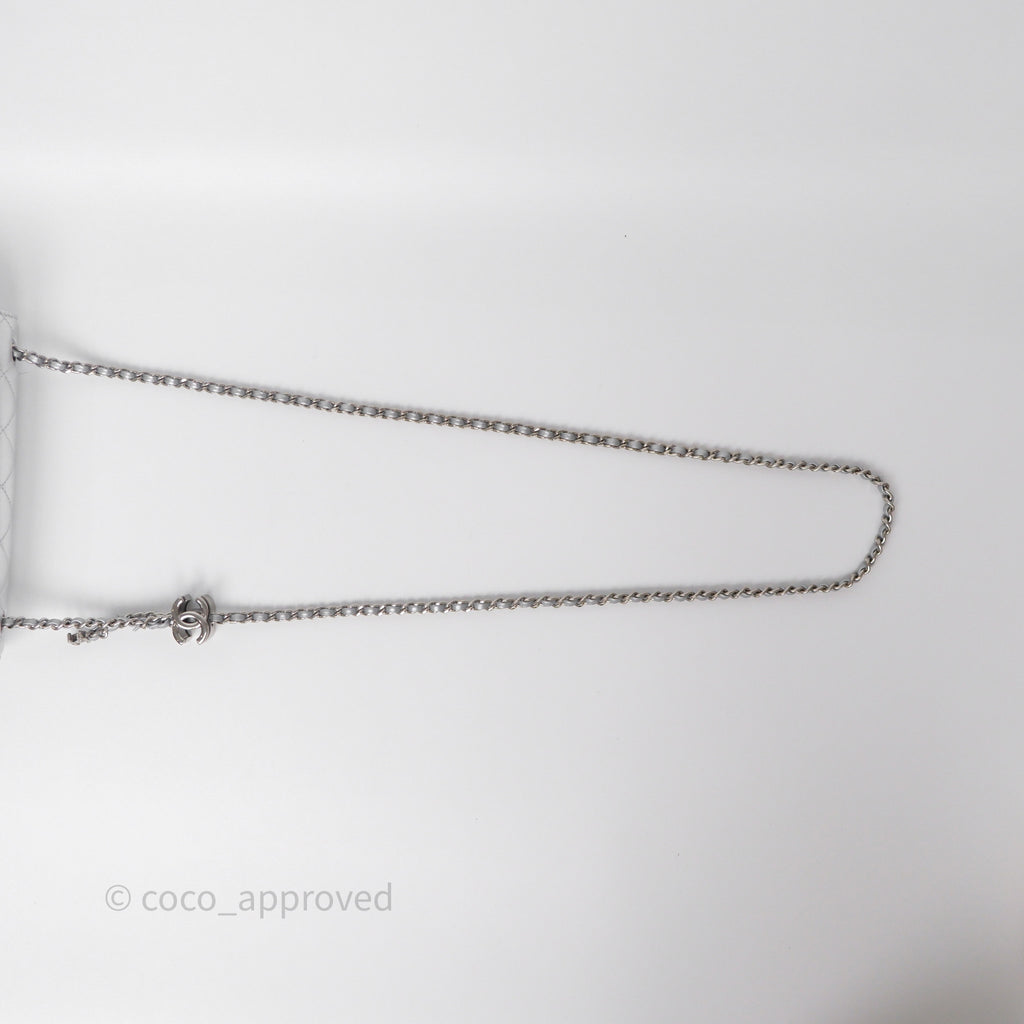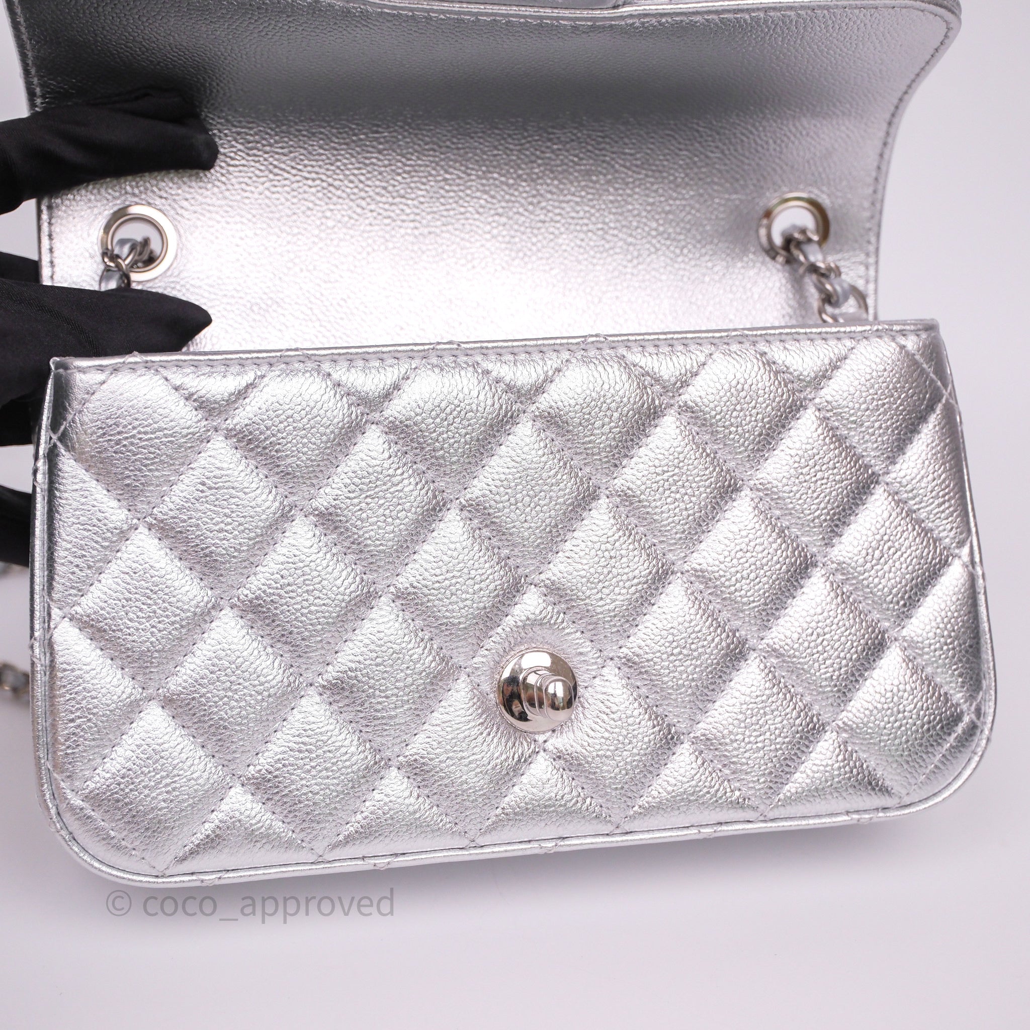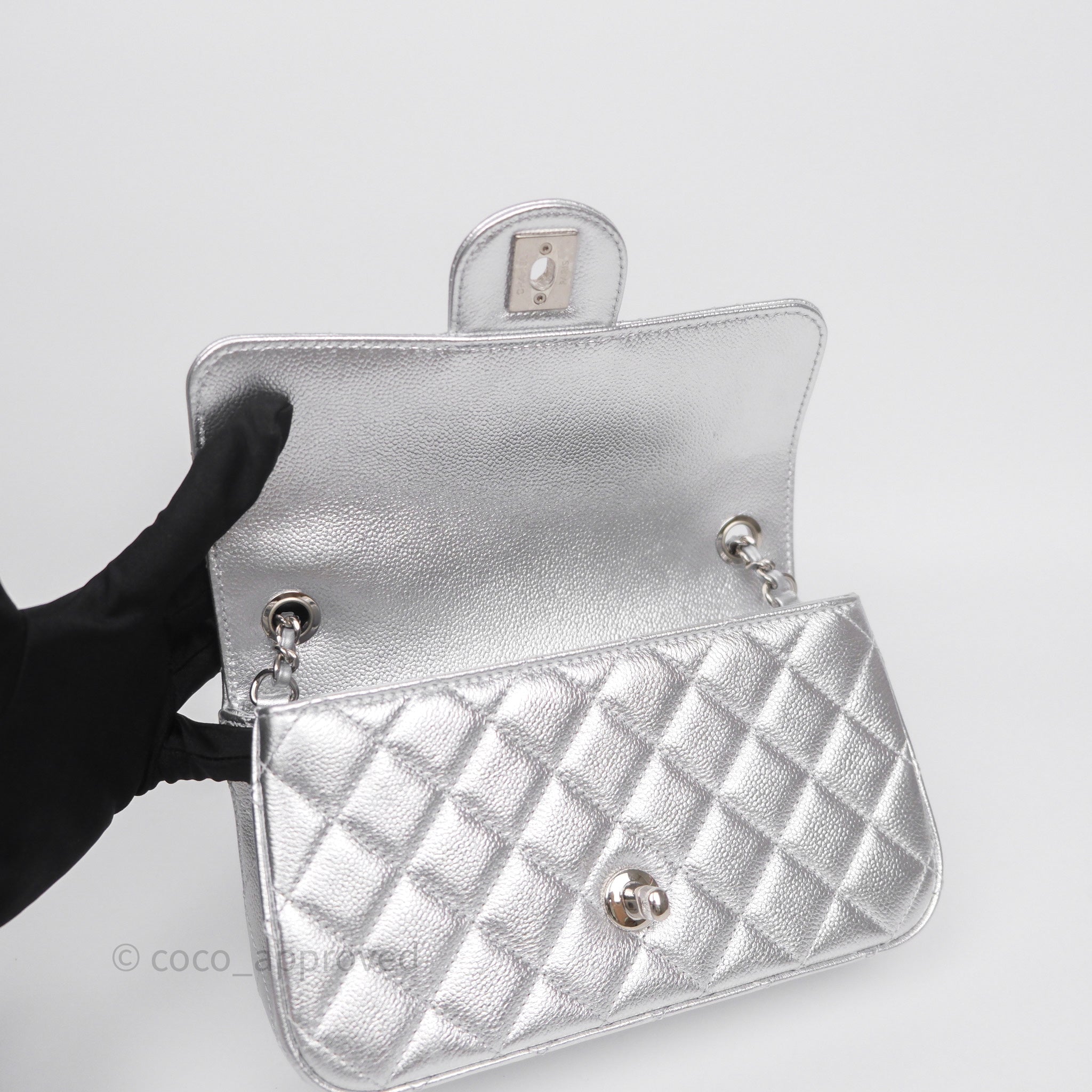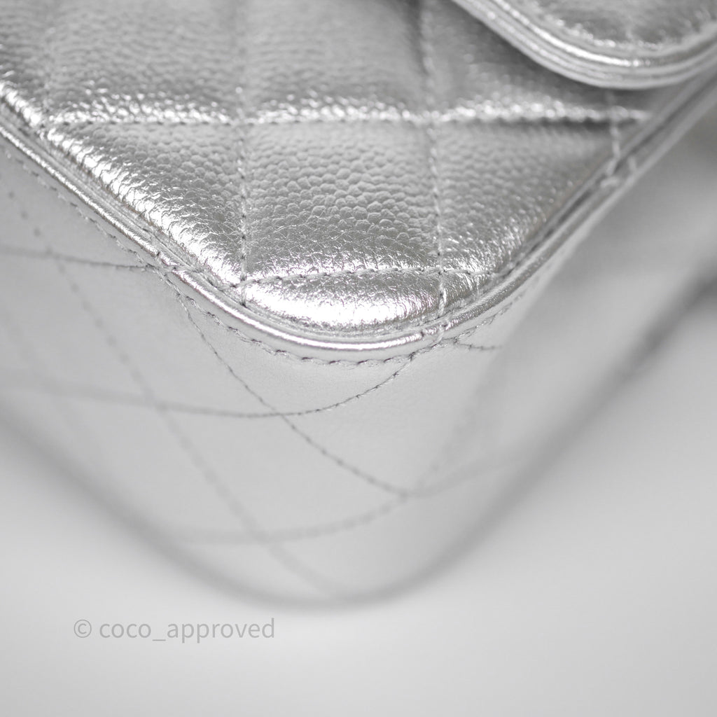 Chanel Quilted Mini Rectangular With Enamel CC Adjustable Chain Metallic Silver Caviar