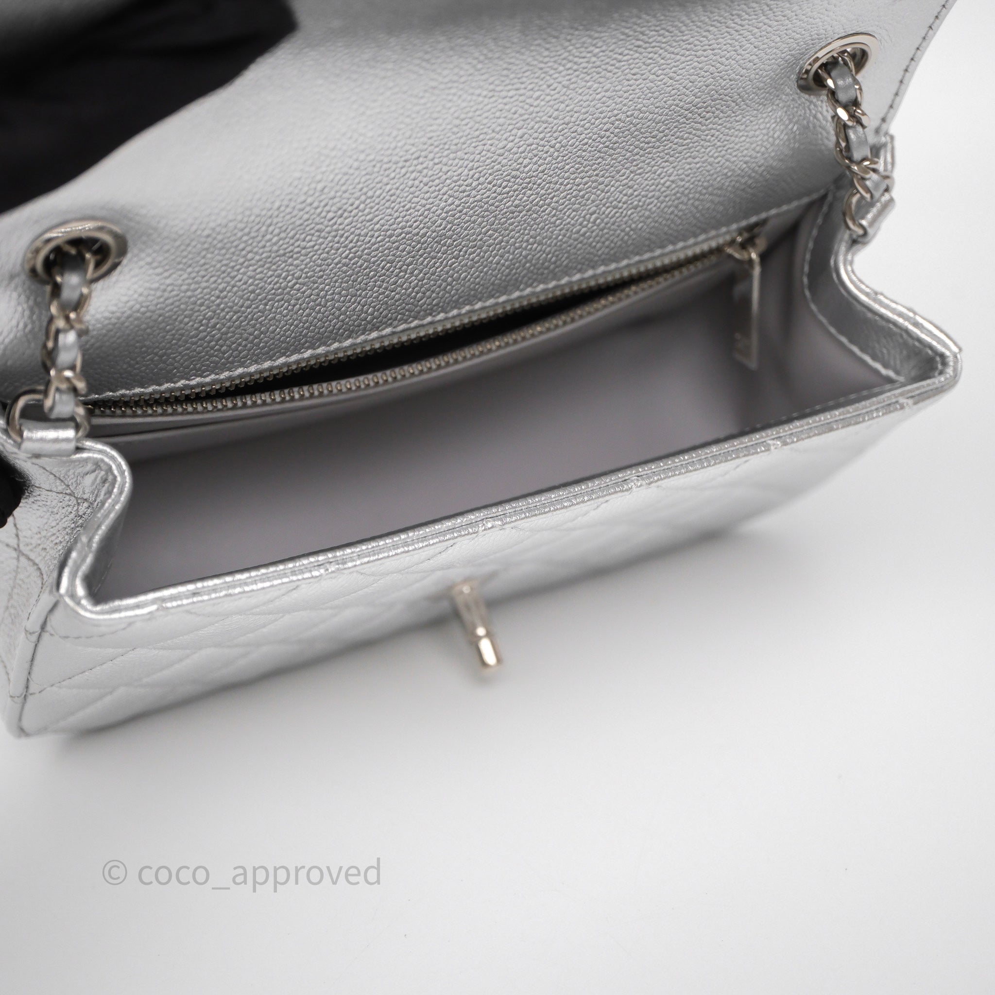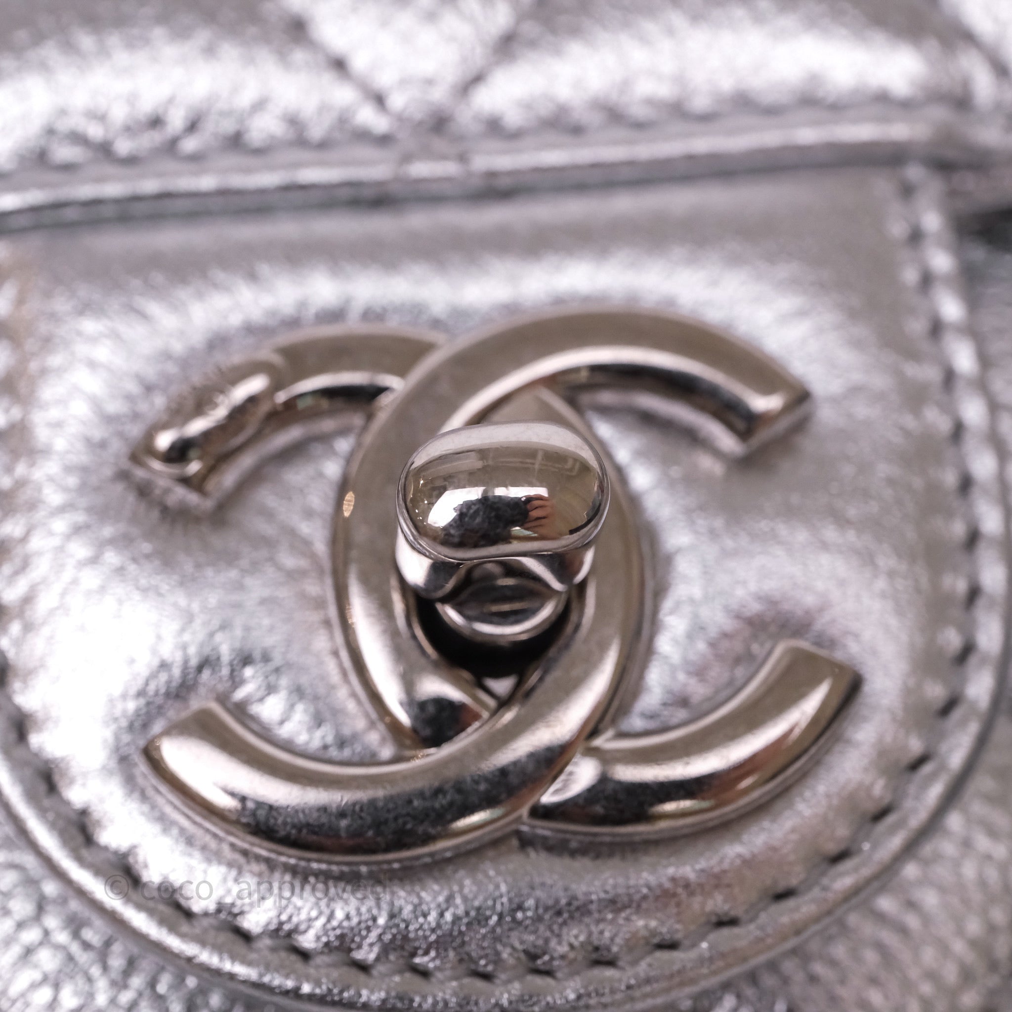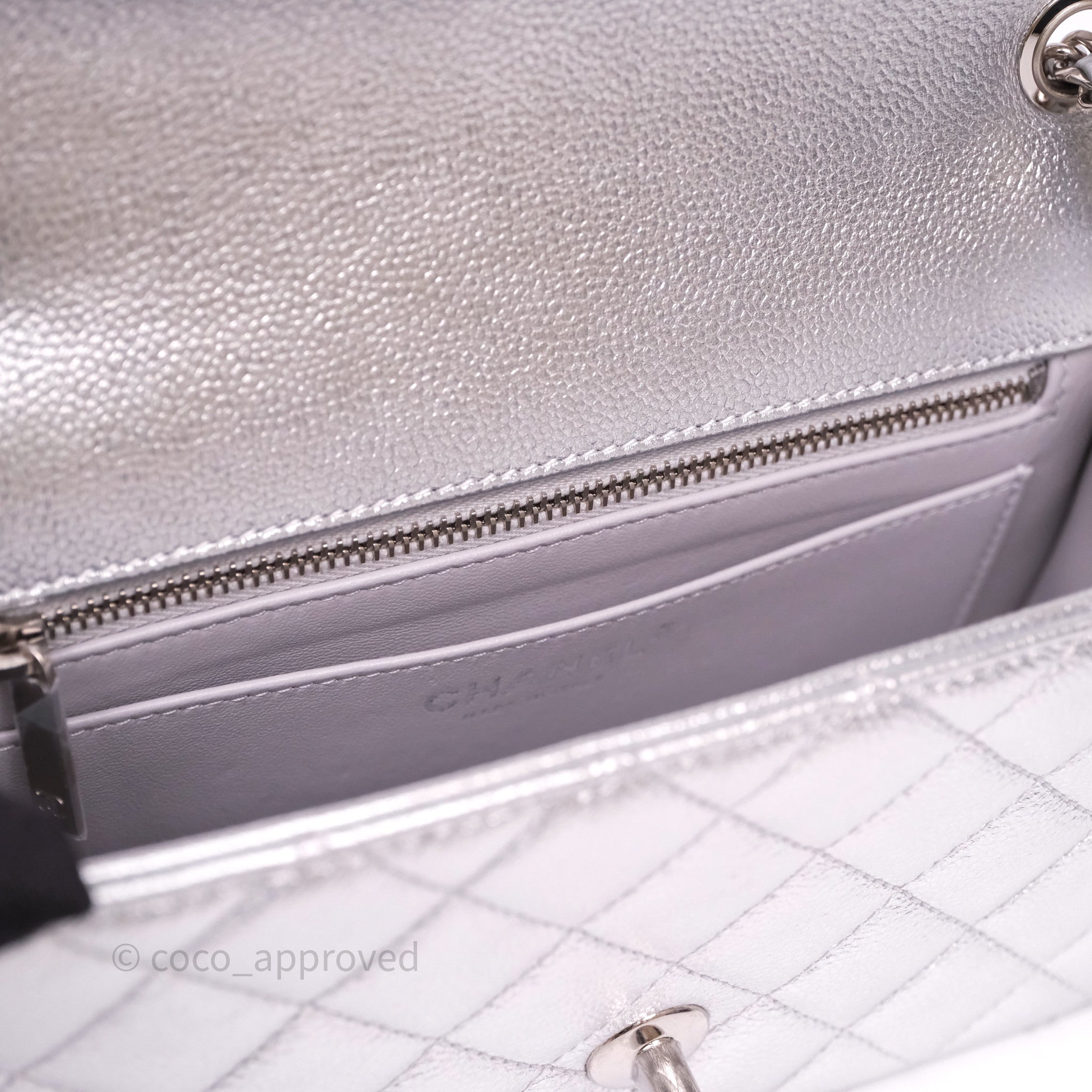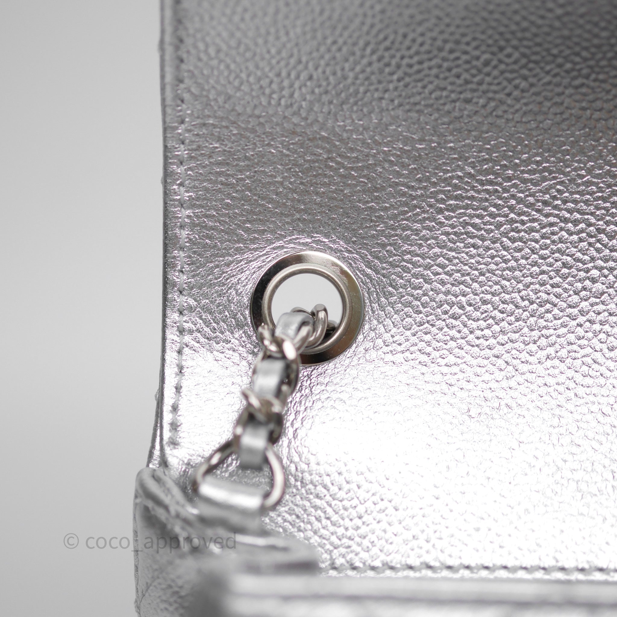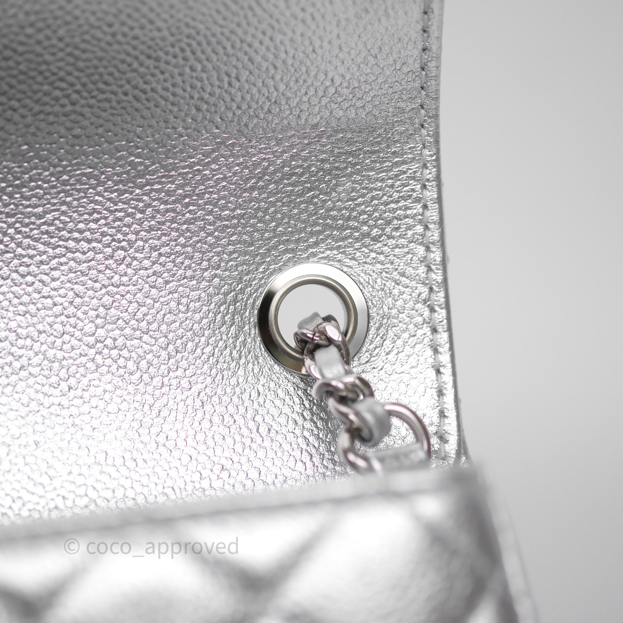 Chanel Quilted Mini Rectangular With Enamel CC Adjustable Chain Metallic Silver Caviar