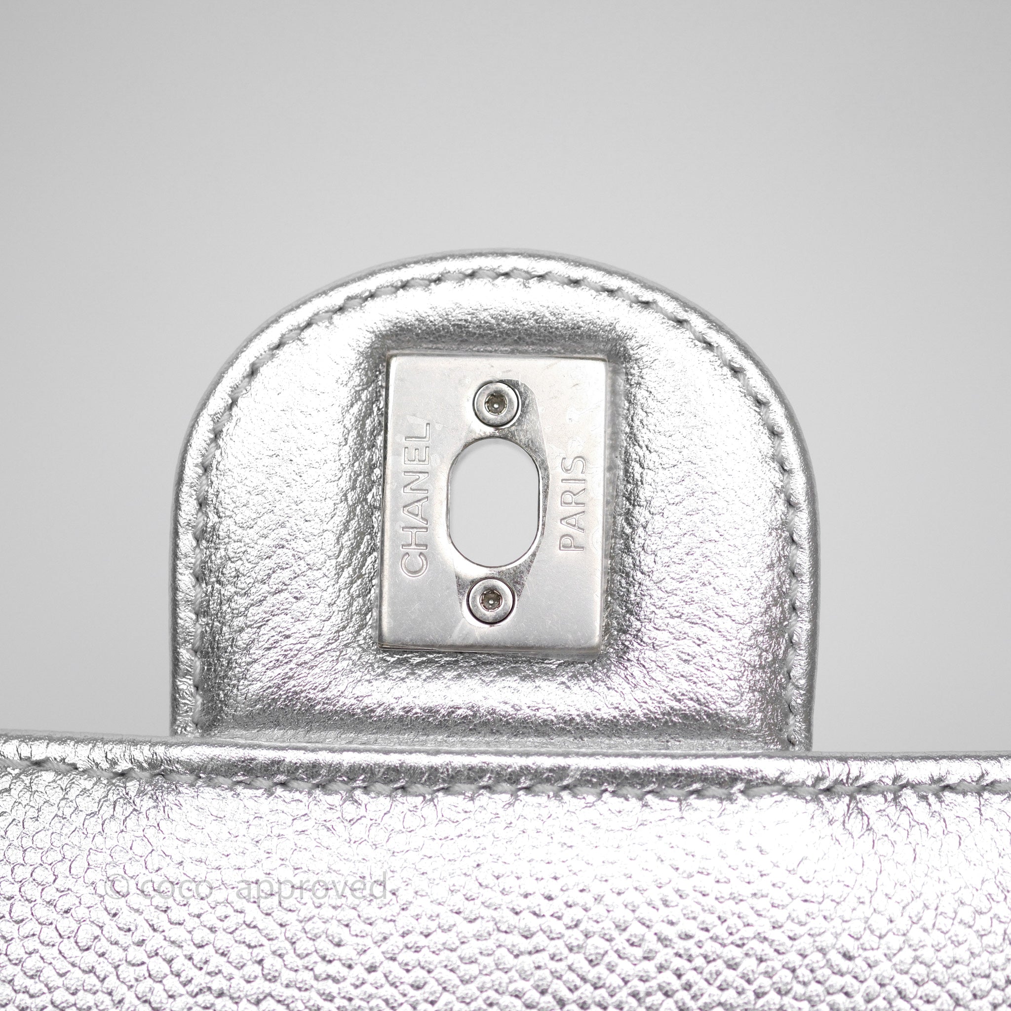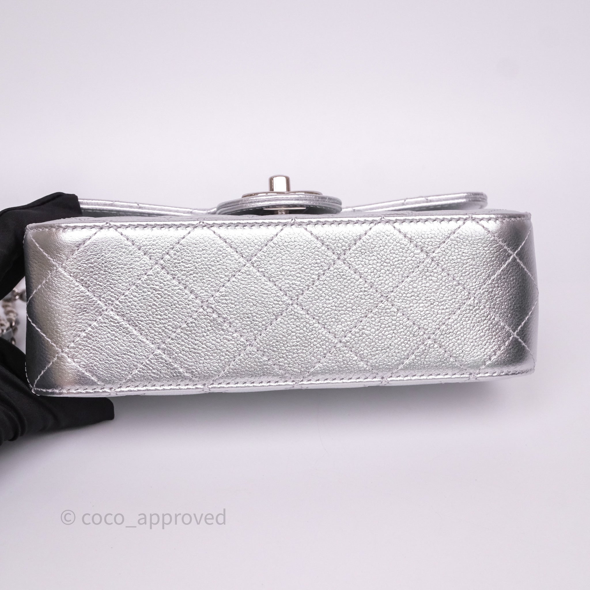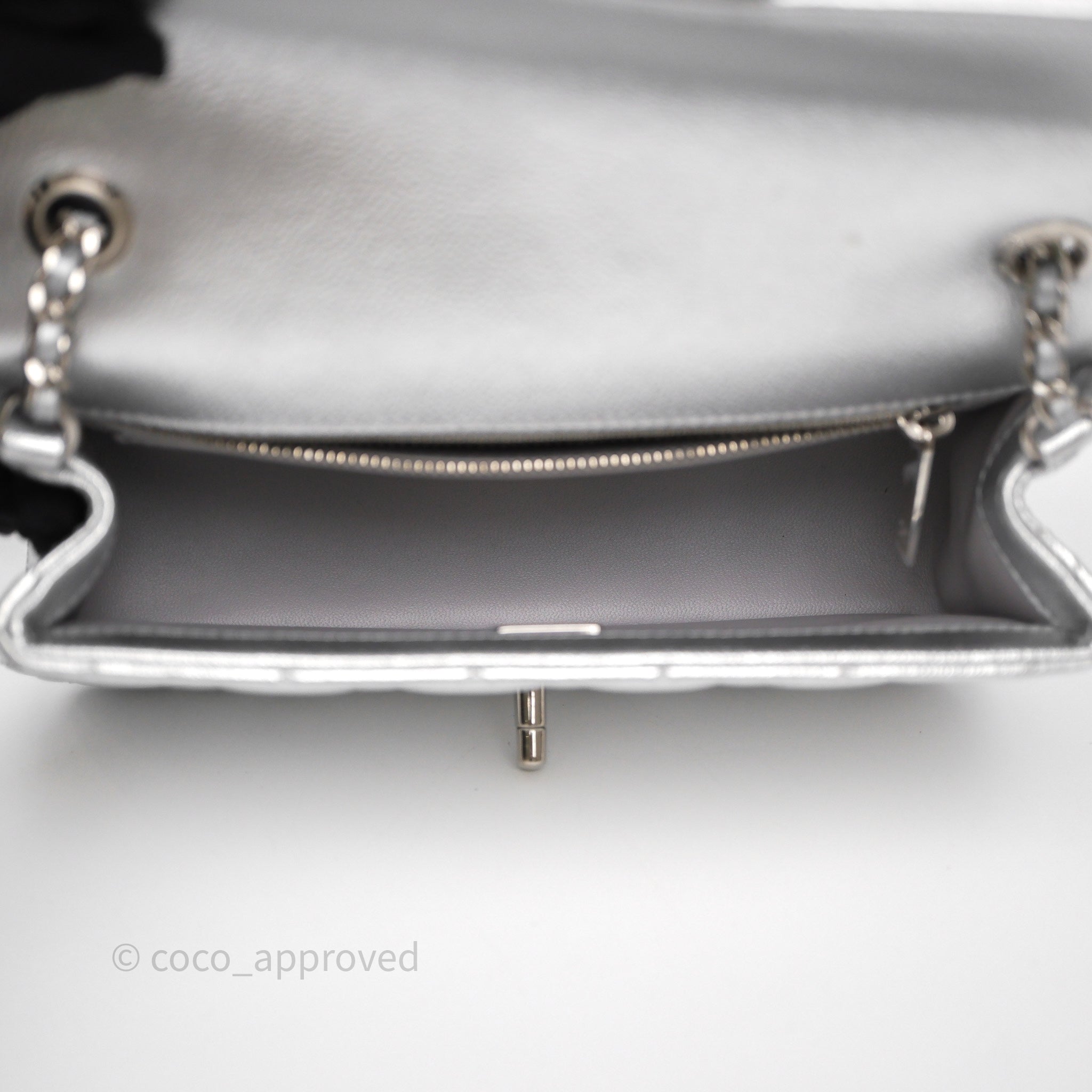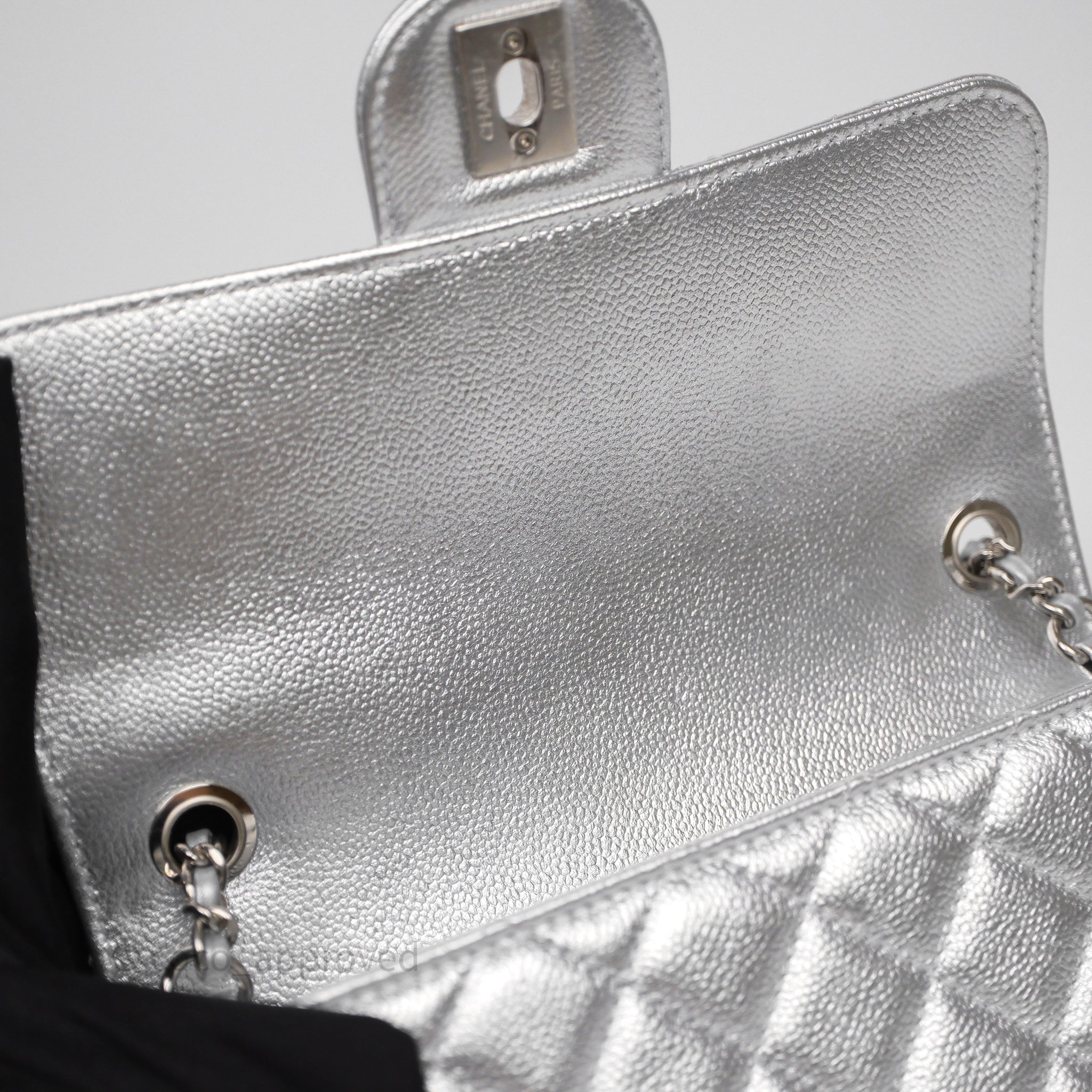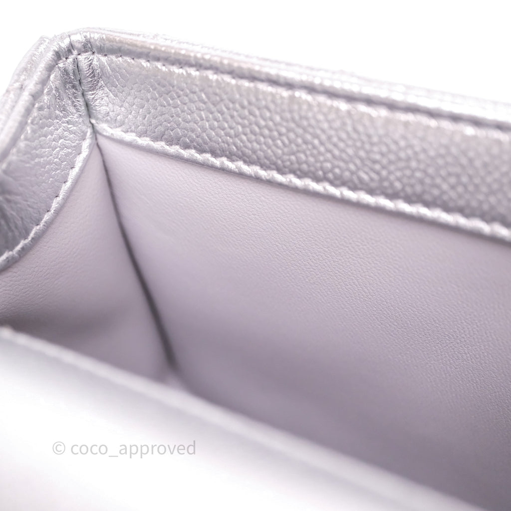 Chanel Quilted Mini Rectangular With Enamel CC Adjustable Chain Metallic Silver Caviar