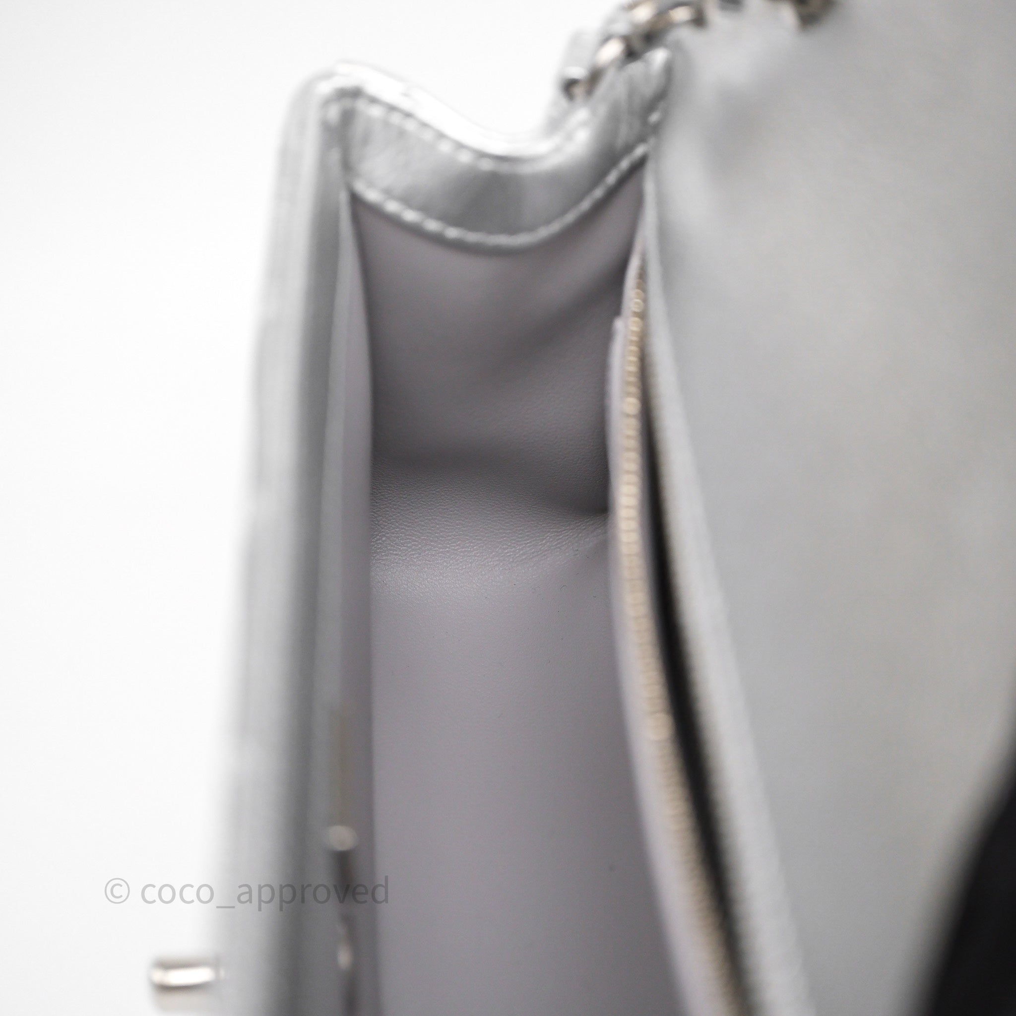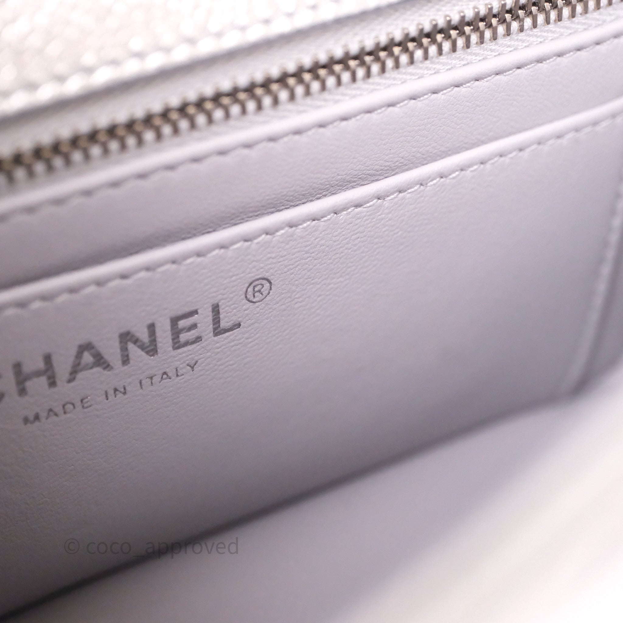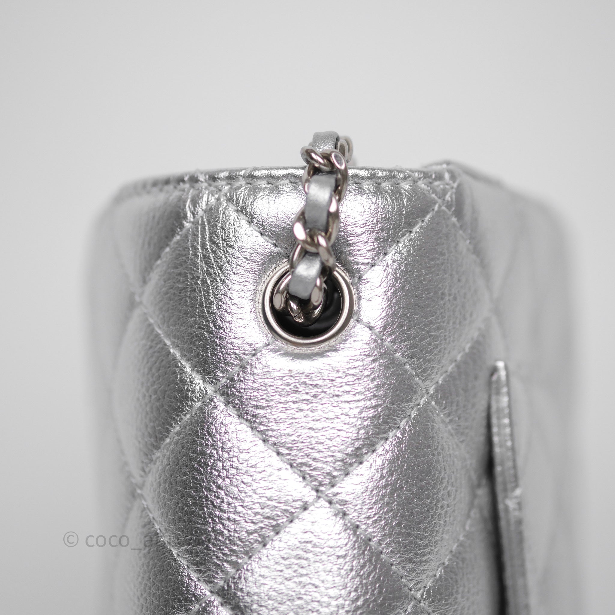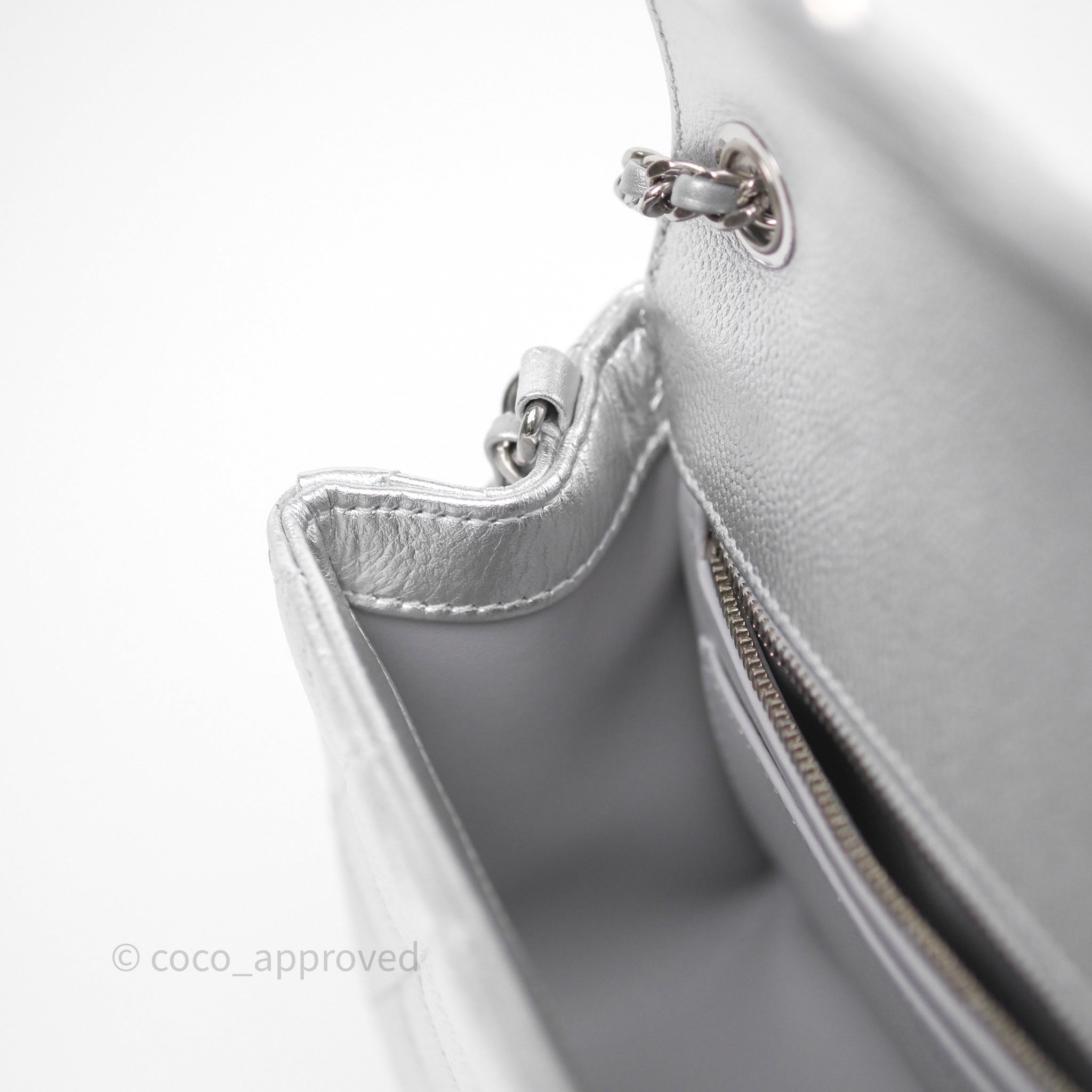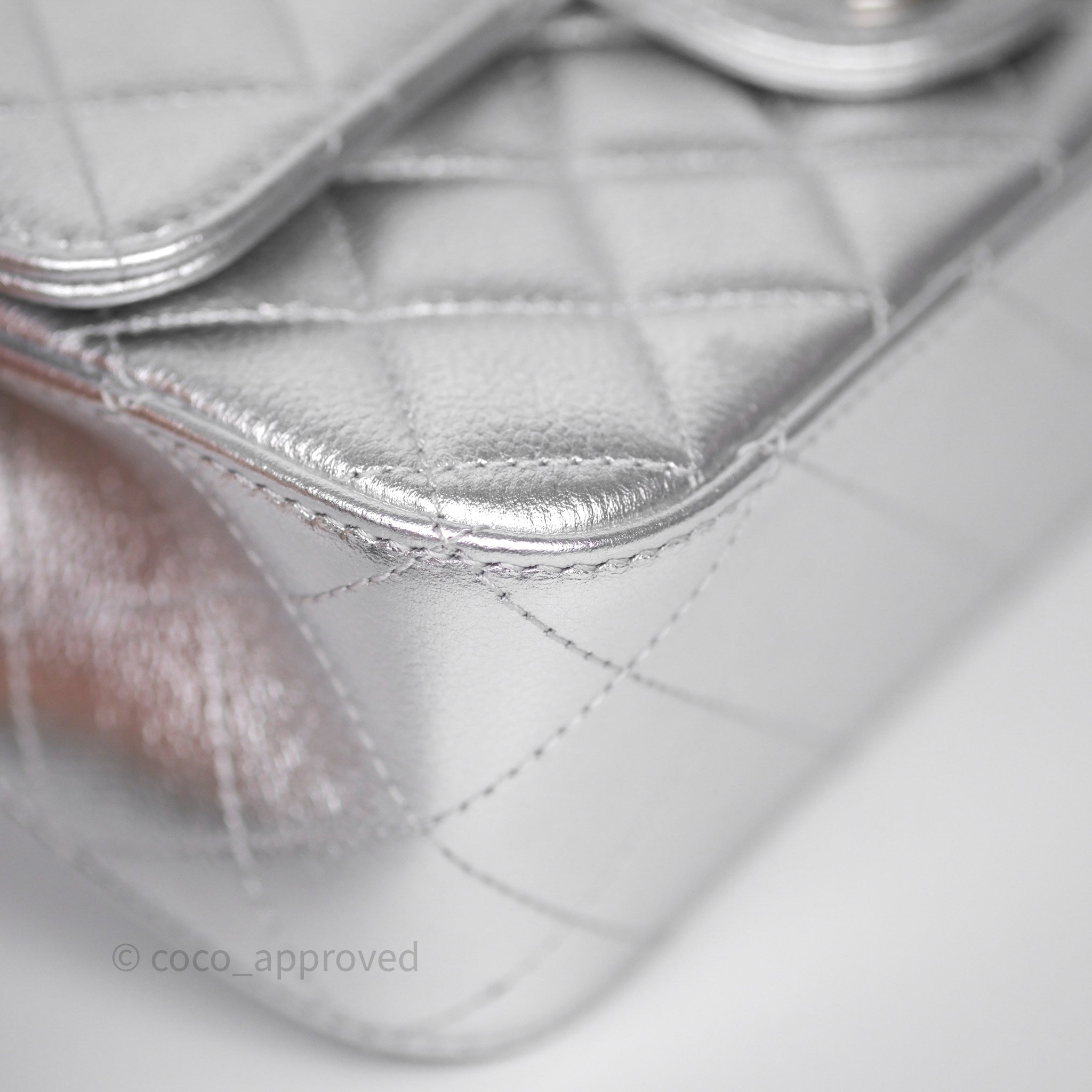 Chanel Quilted Mini Rectangular With Enamel CC Adjustable Chain Metallic Silver Caviar