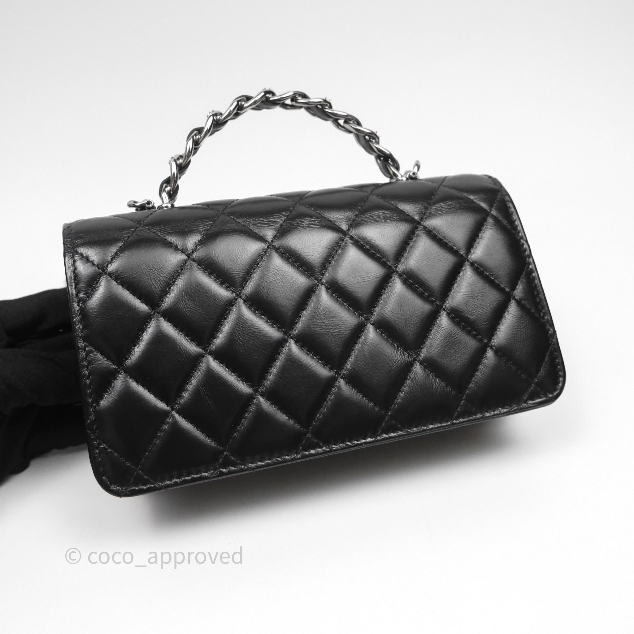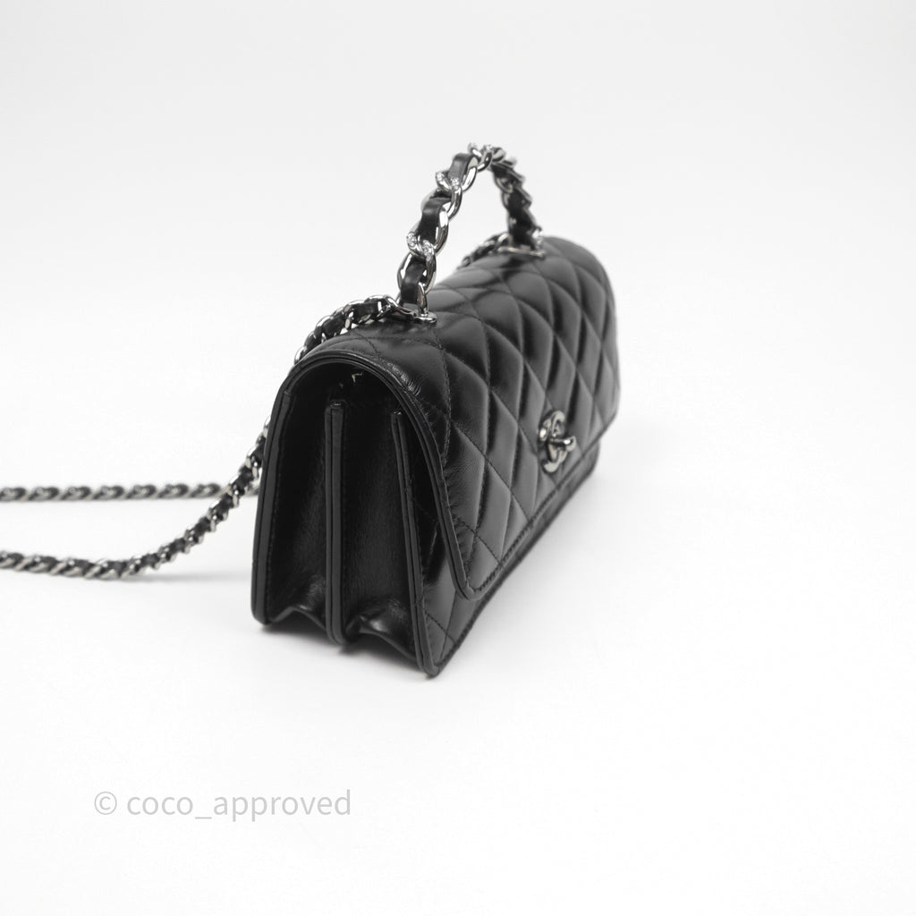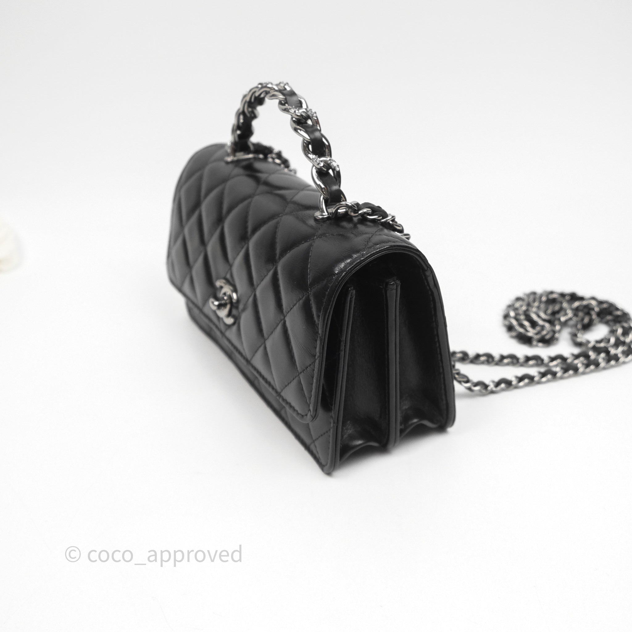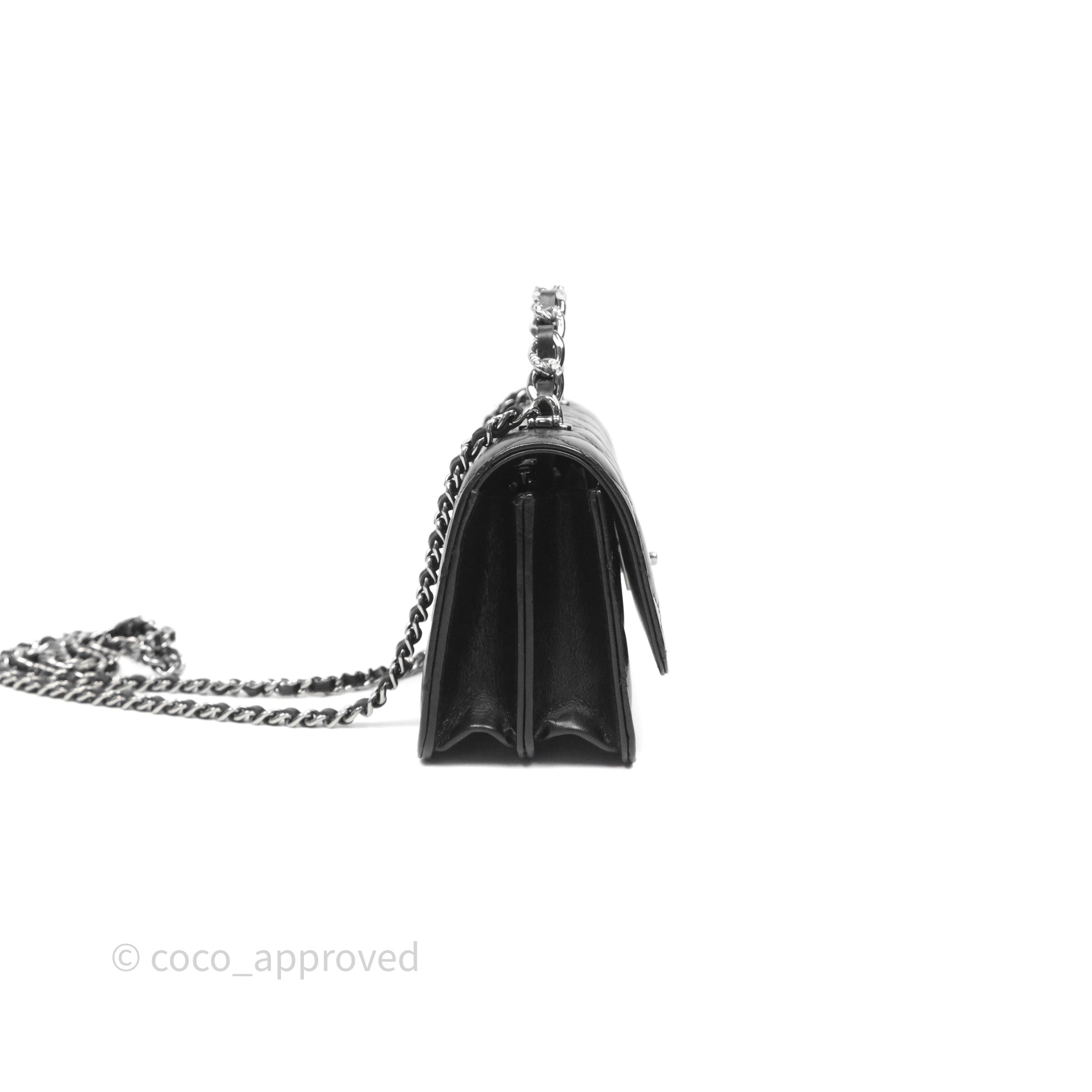 Chanel Mini Crystal Top Handle Wallet On Chain WOC Black Calfskin Gun Metal Hardware 23K