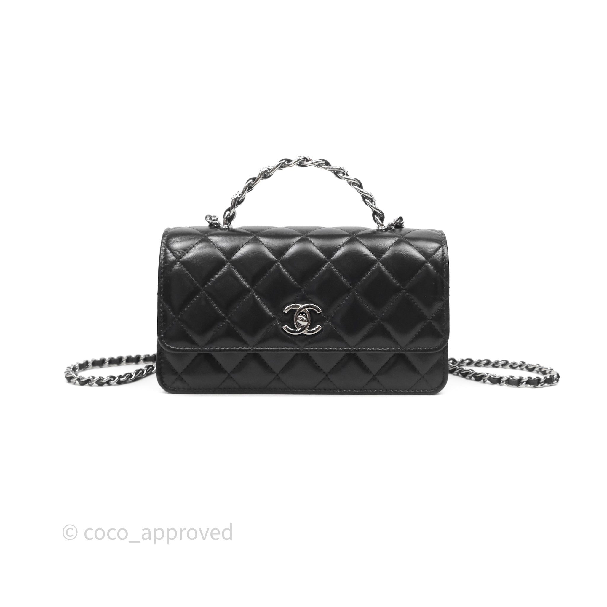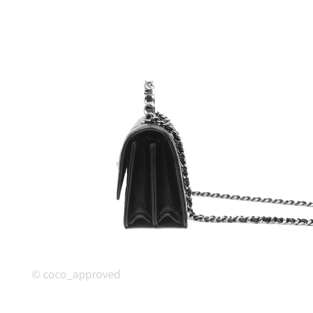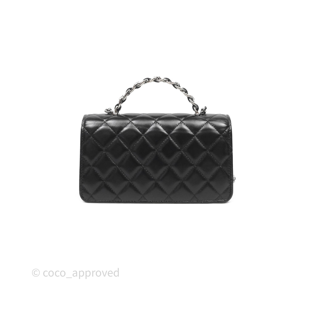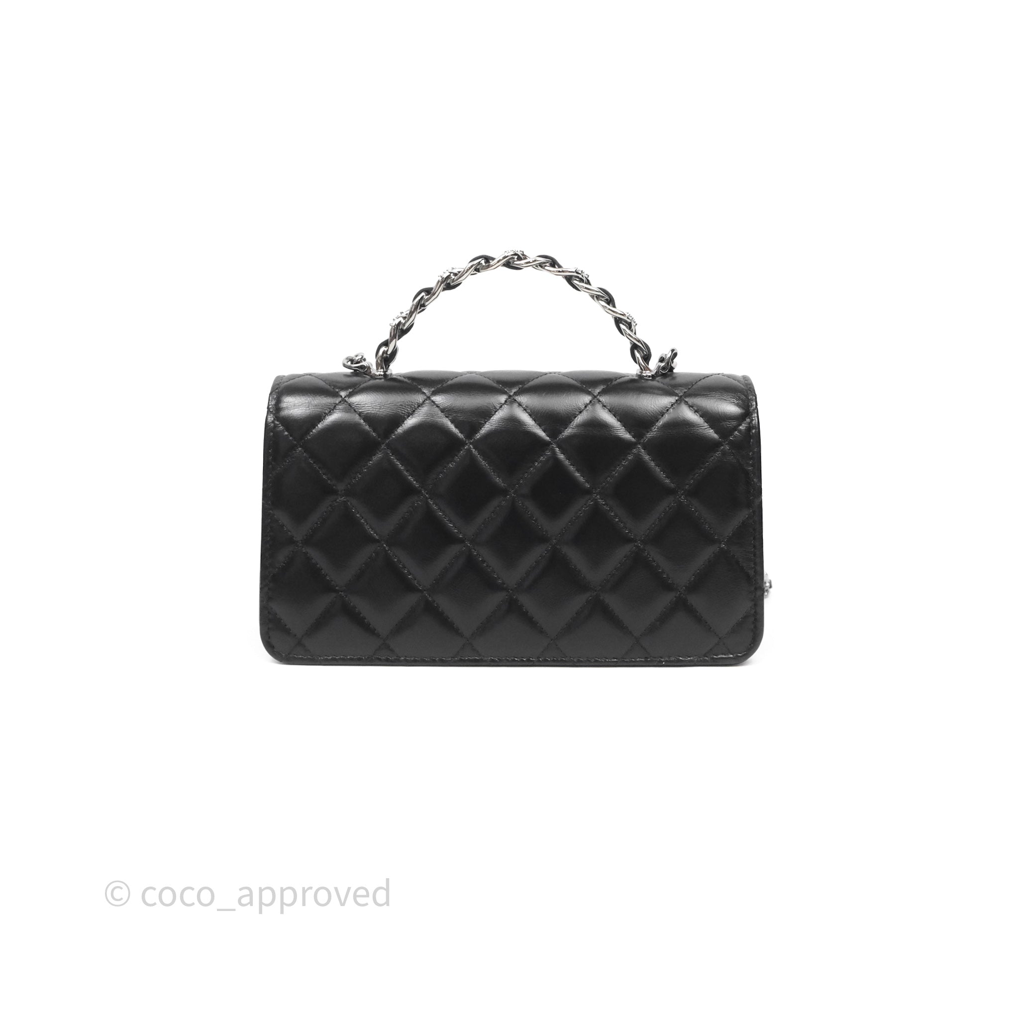 Chanel Mini Crystal Top Handle Wallet On Chain WOC Black Calfskin Gun Metal Hardware 23K
